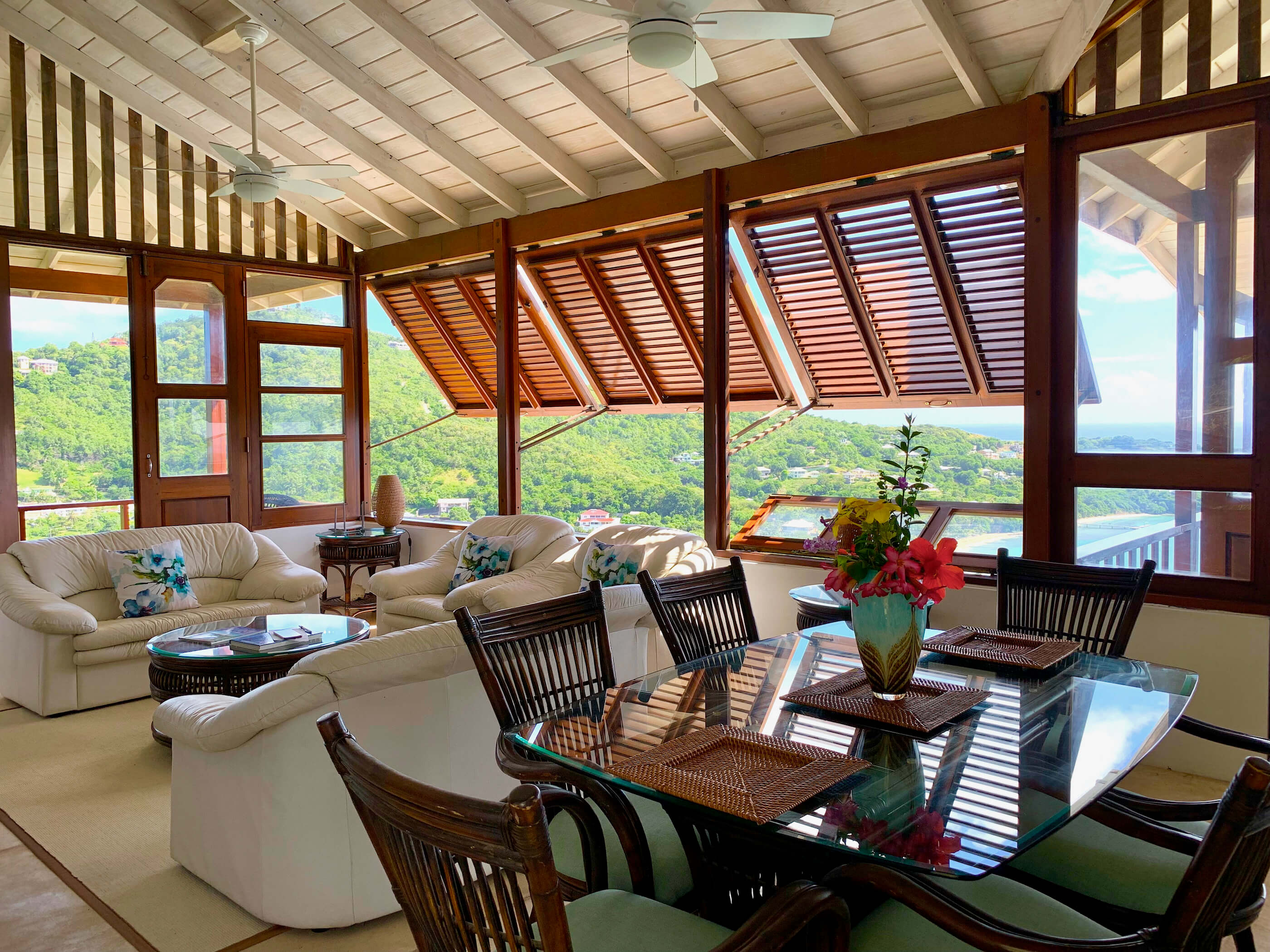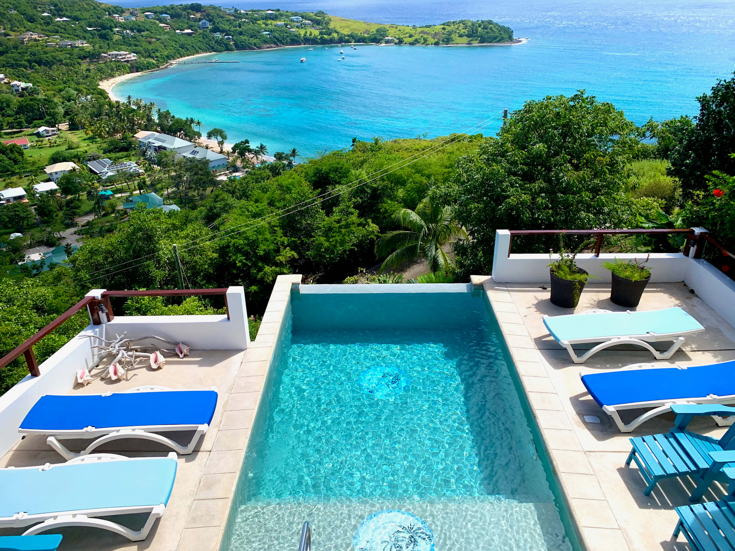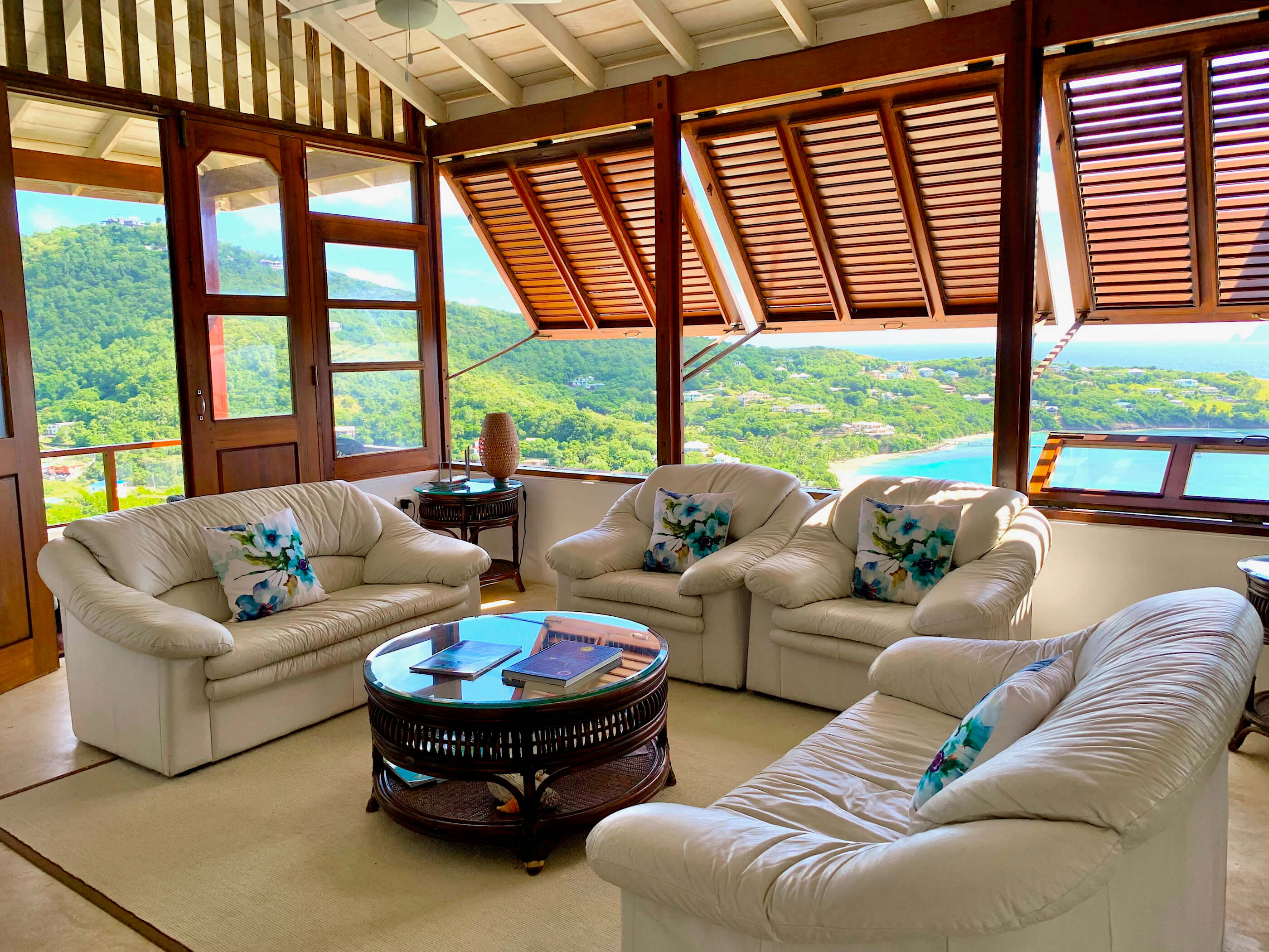 Fantastic panoramic views include the uninhabited islands of Balliceaux, Battowia and the Whaling Station, the whole of Friendship Valley & Friendship Beach / Bay, over to the island of Mustique, and Bequia's Admiralty Bay on the West.