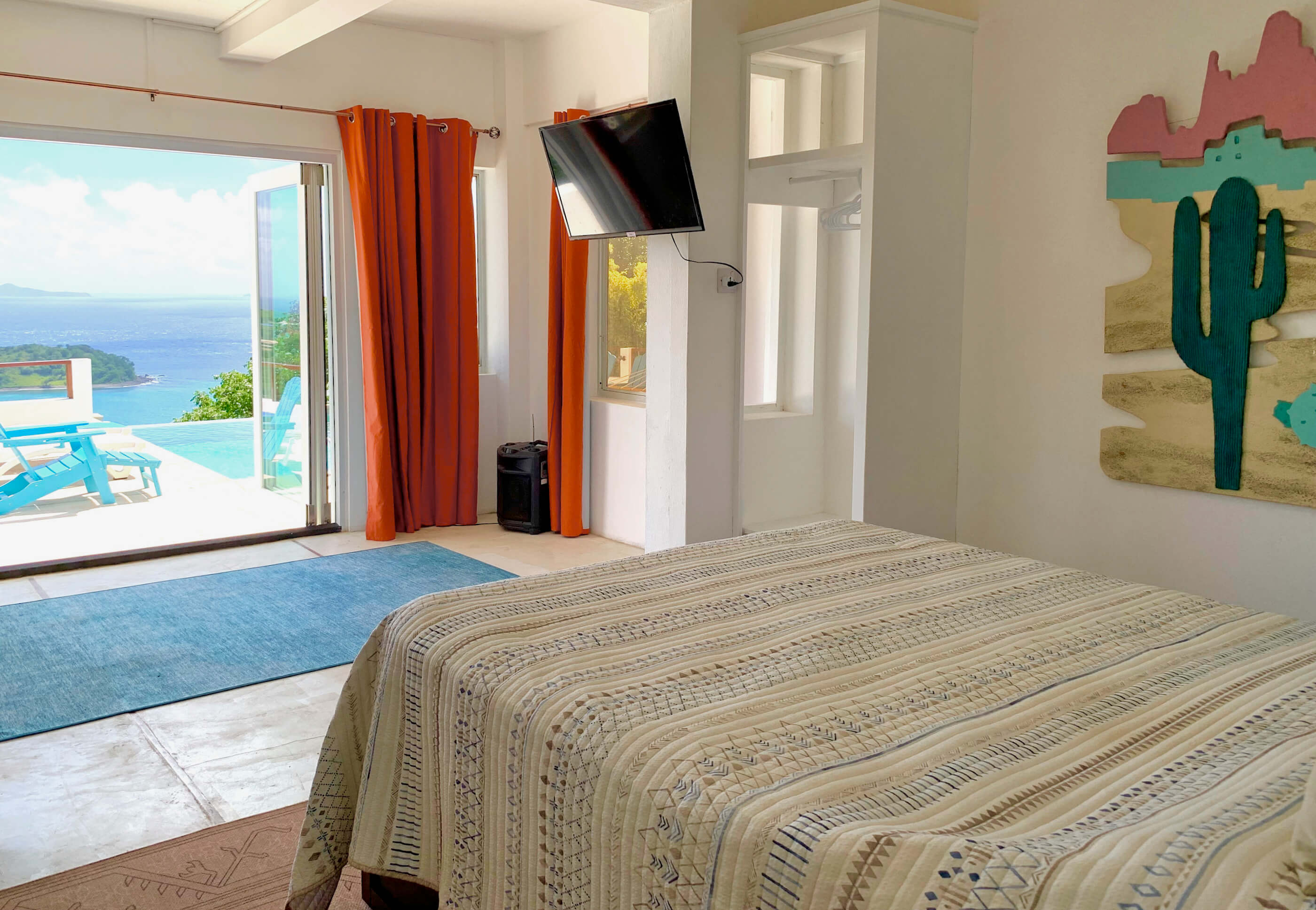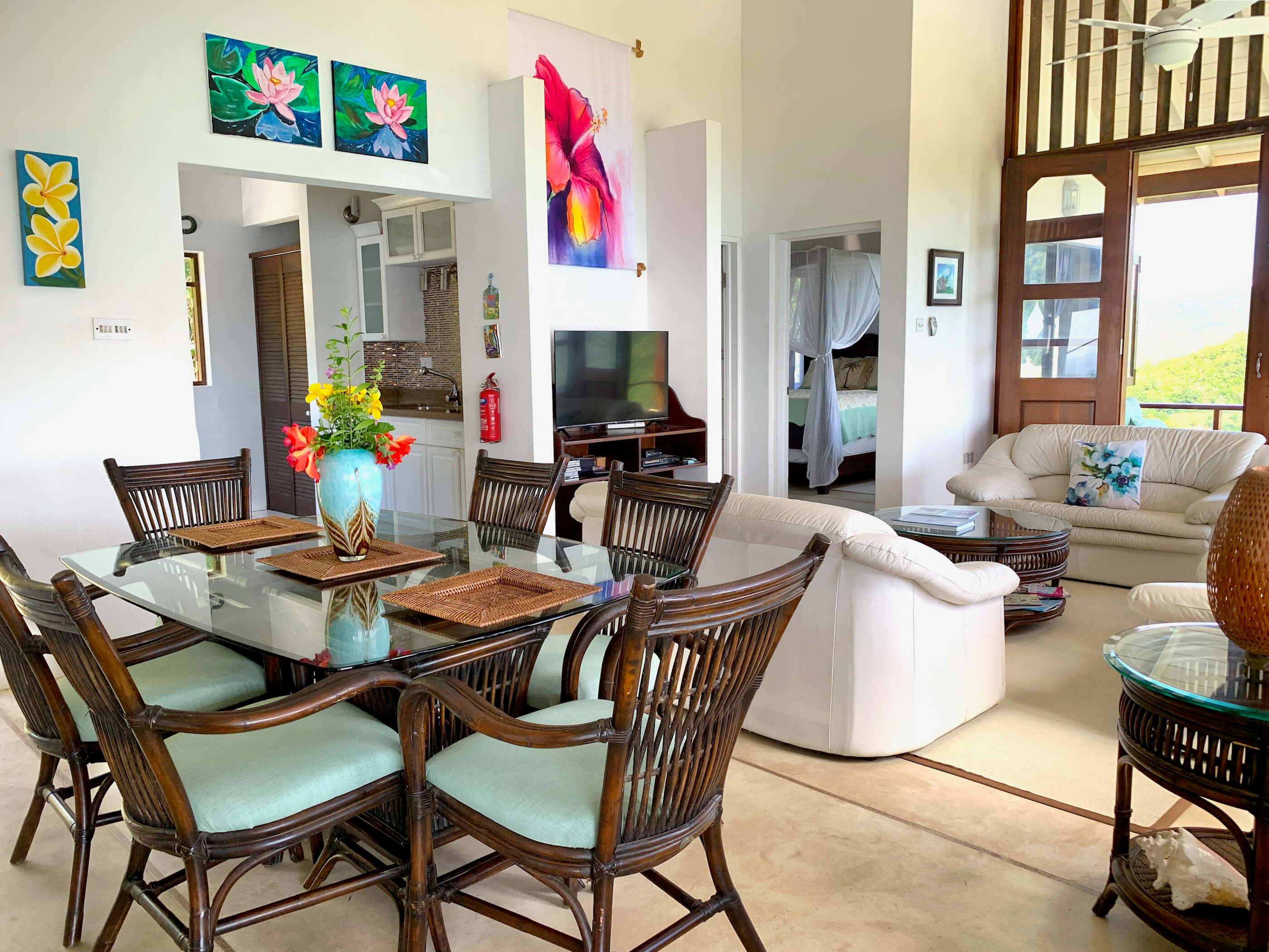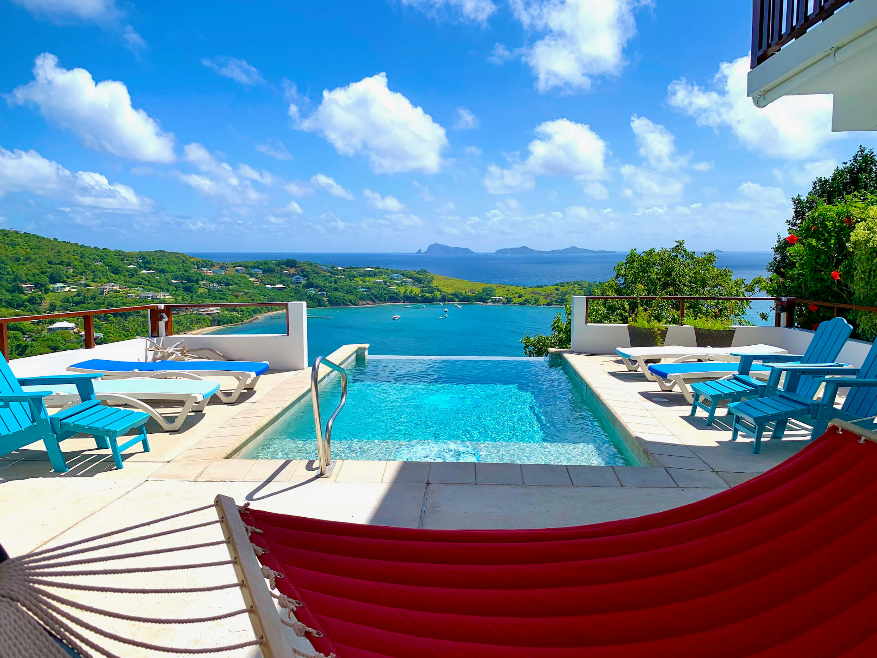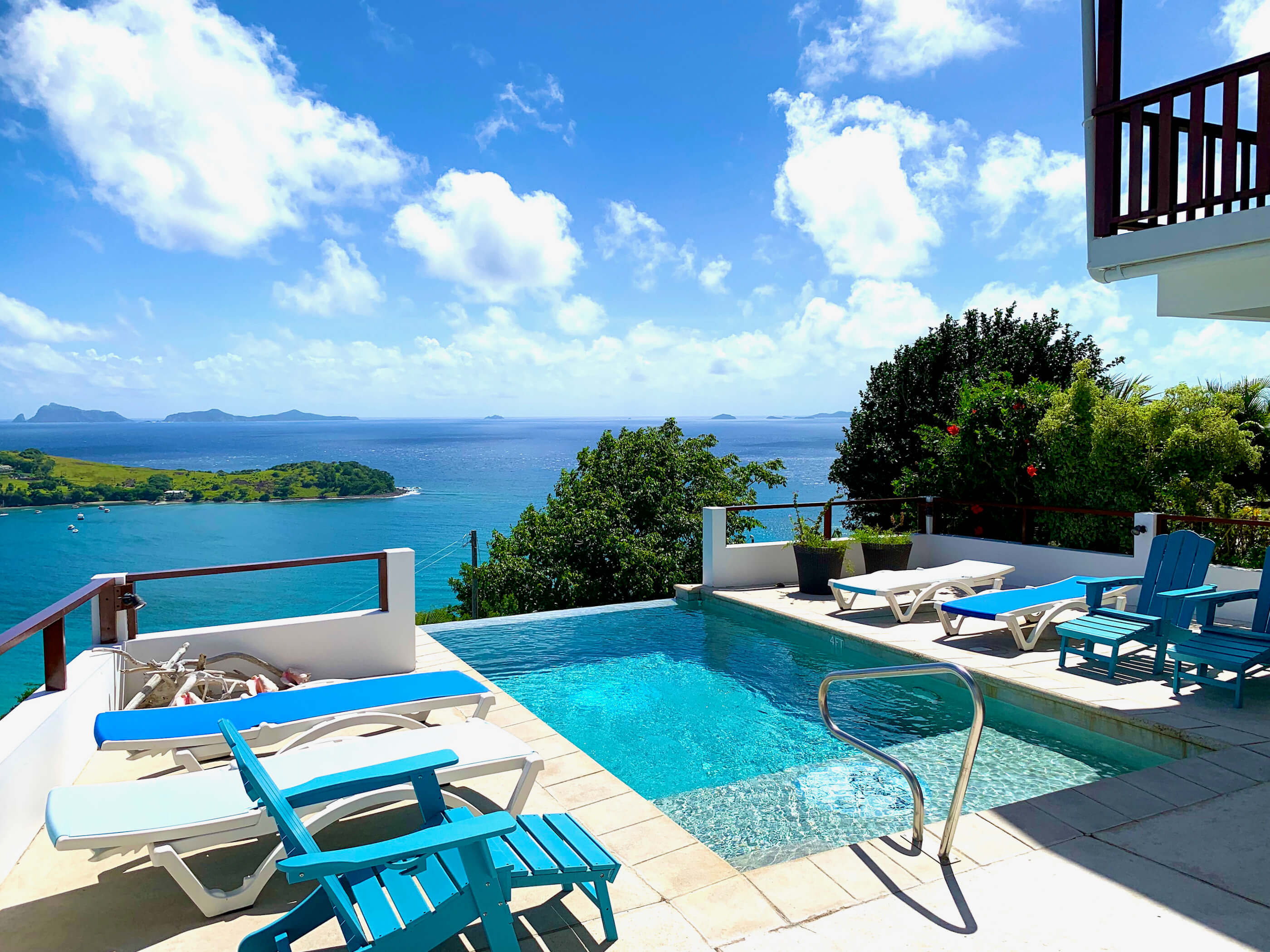 Fantastic panoramic views include the uninhabited islands of Balliceaux, Battowia and the Whaling Station, the whole of Friendship Valley & Friendship Beach / Bay, over to the island of Mustique, and Bequia's Admiralty Bay on the West.