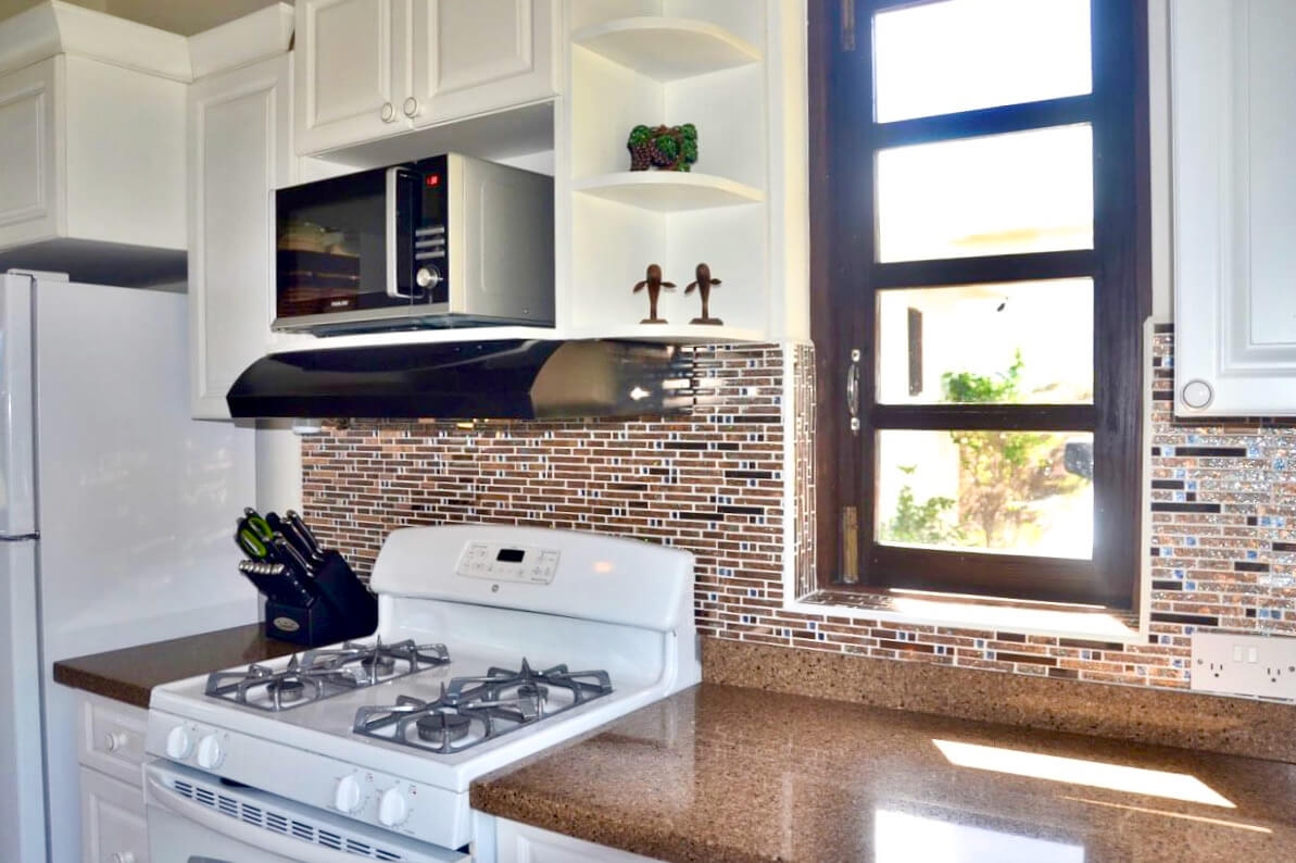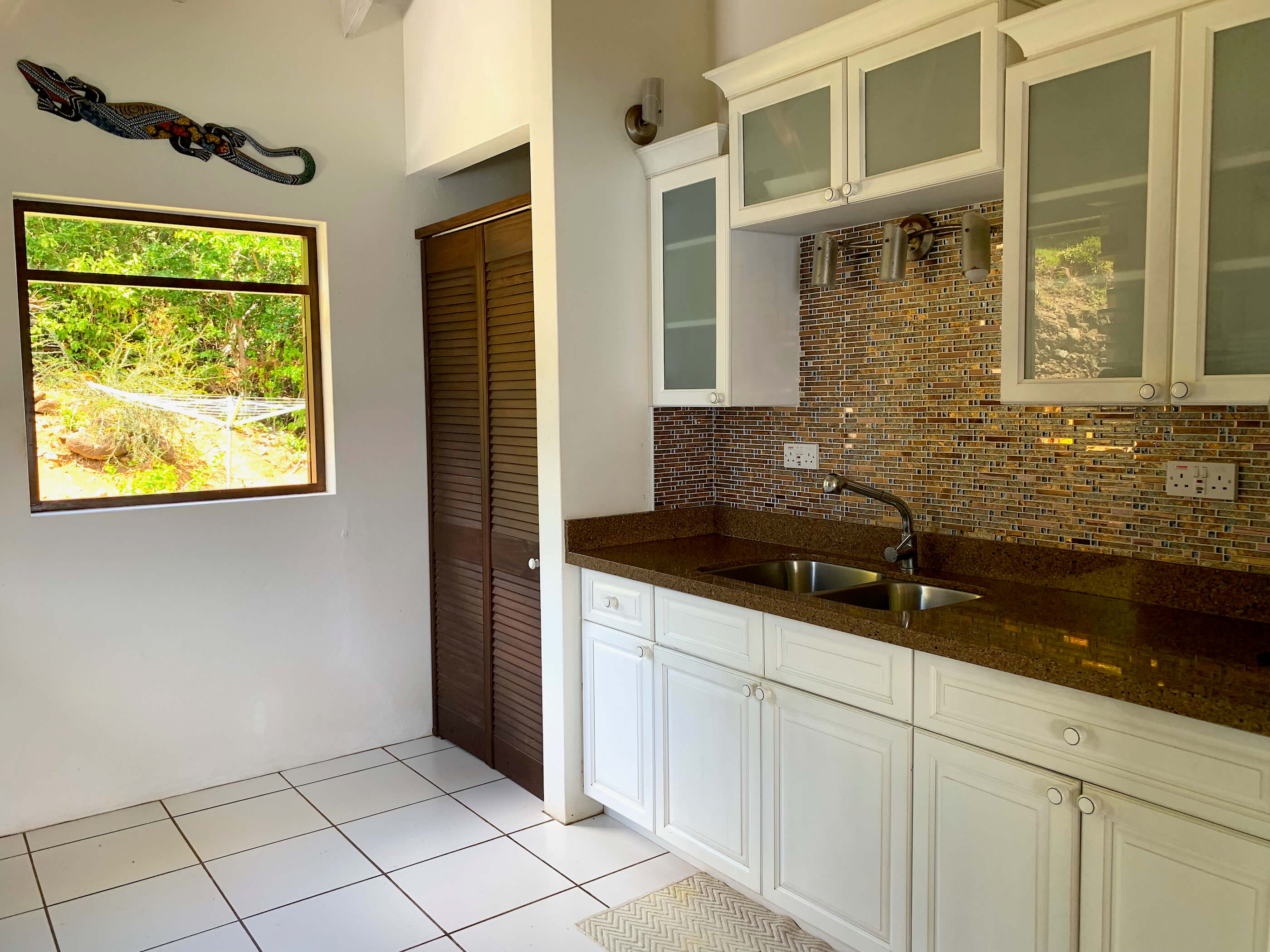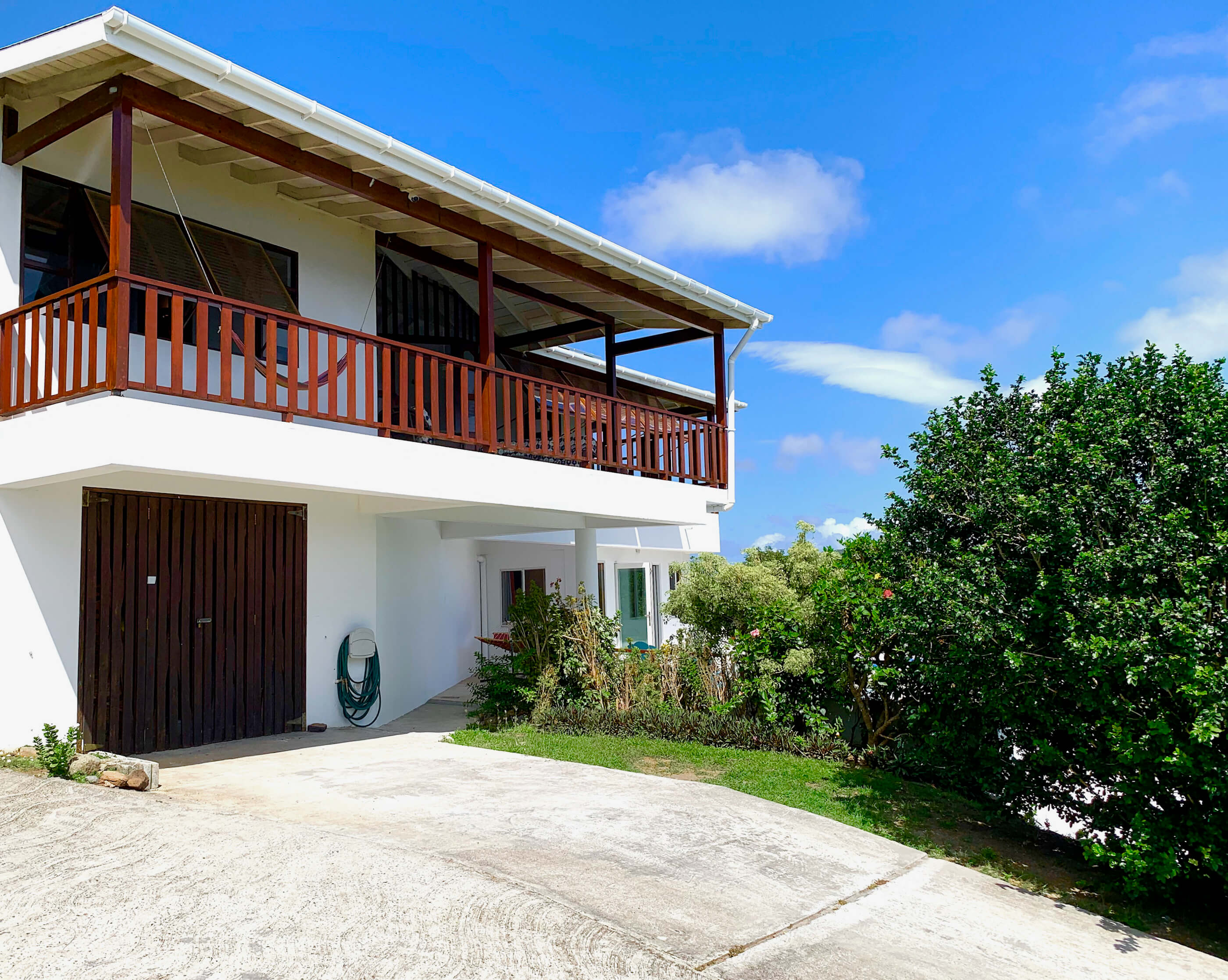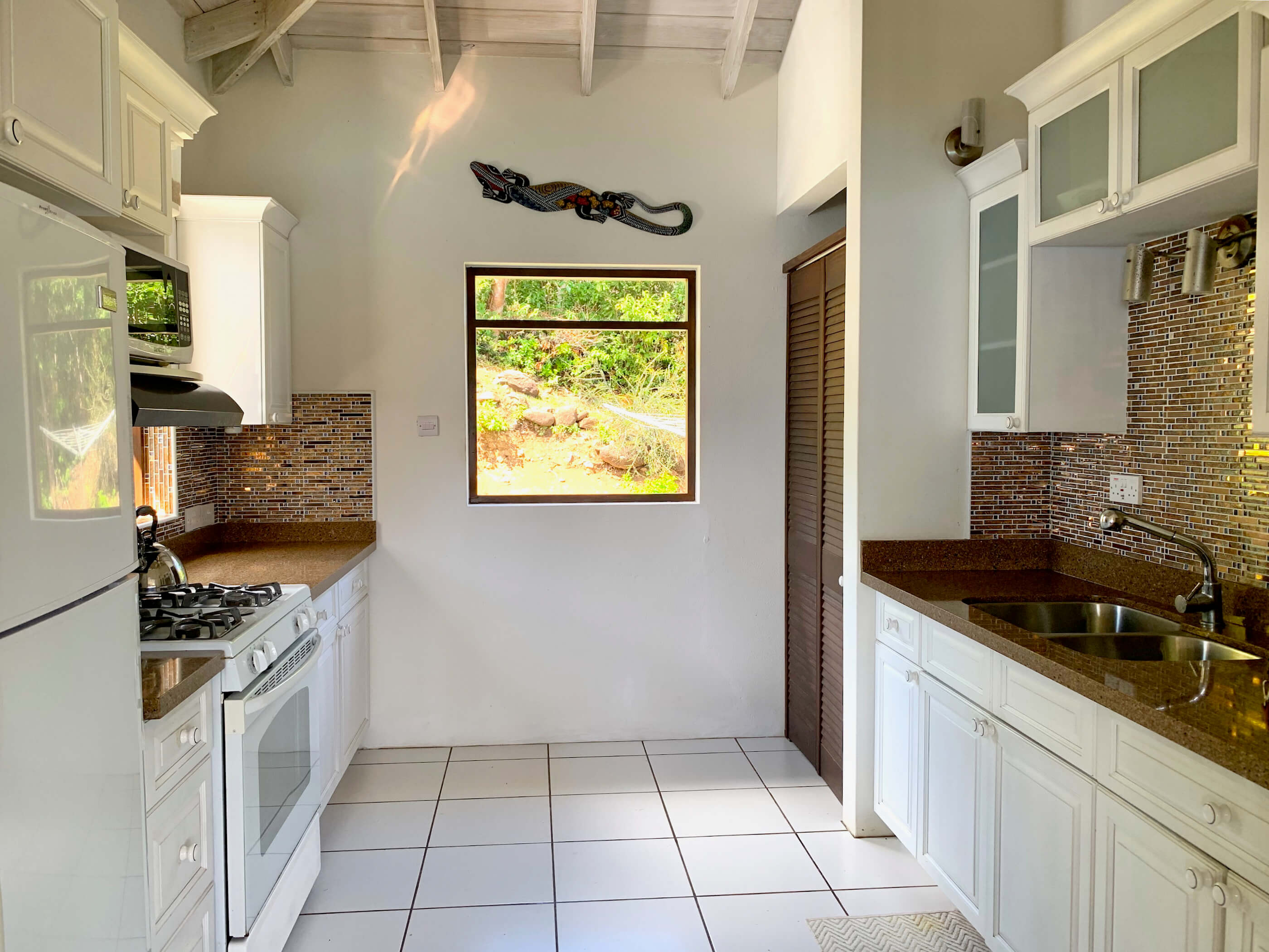 The garden is planted with a lovely selection of tropical fruits including bananas, limes, pomegranate, mangoes, passion fruit, sea grapes & plantain. There is also a back lawned area with BBQ.