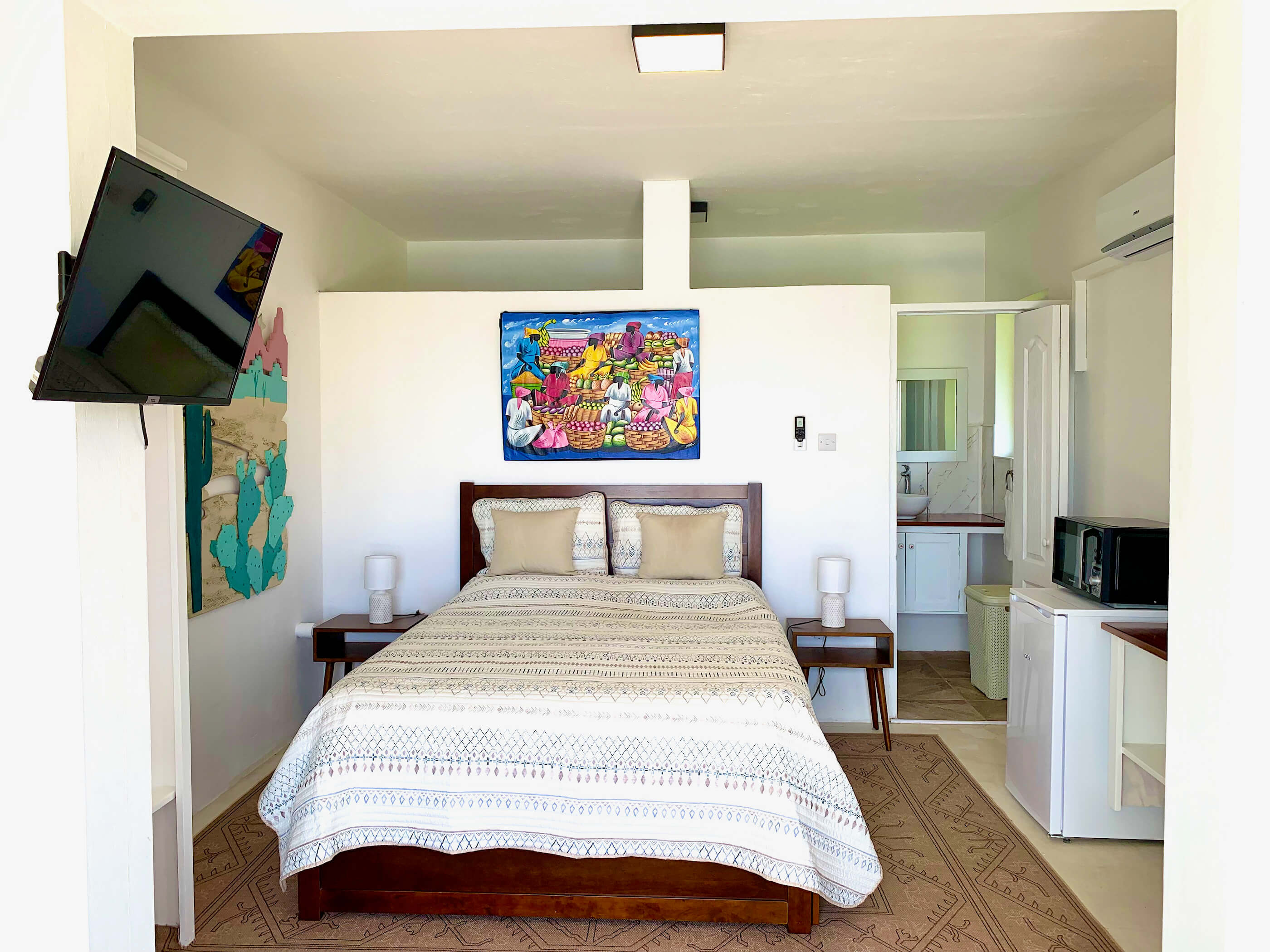 (Contains Mini fridge, Microwave, Toaster Oven, Kettle, Coffee maker, Hot plate & Streaming T.V)