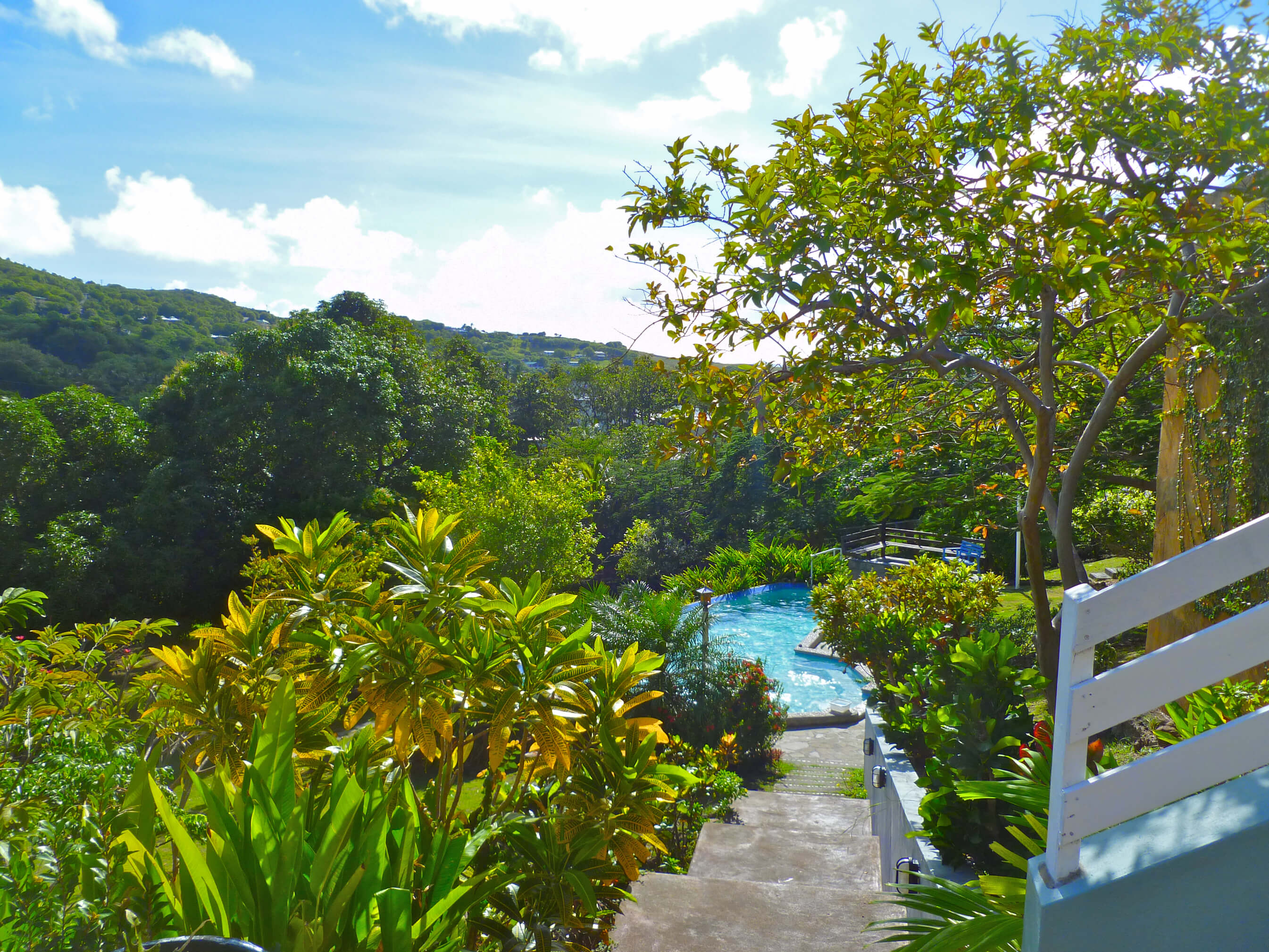 The swimming pool is the perfect place to enjoy a cooling dip and relax on the sun loungers in peace and quiet. The grounds are beautifully kept with flowers blooming, mangoes, guavas and of course the famous Sugar Apples!