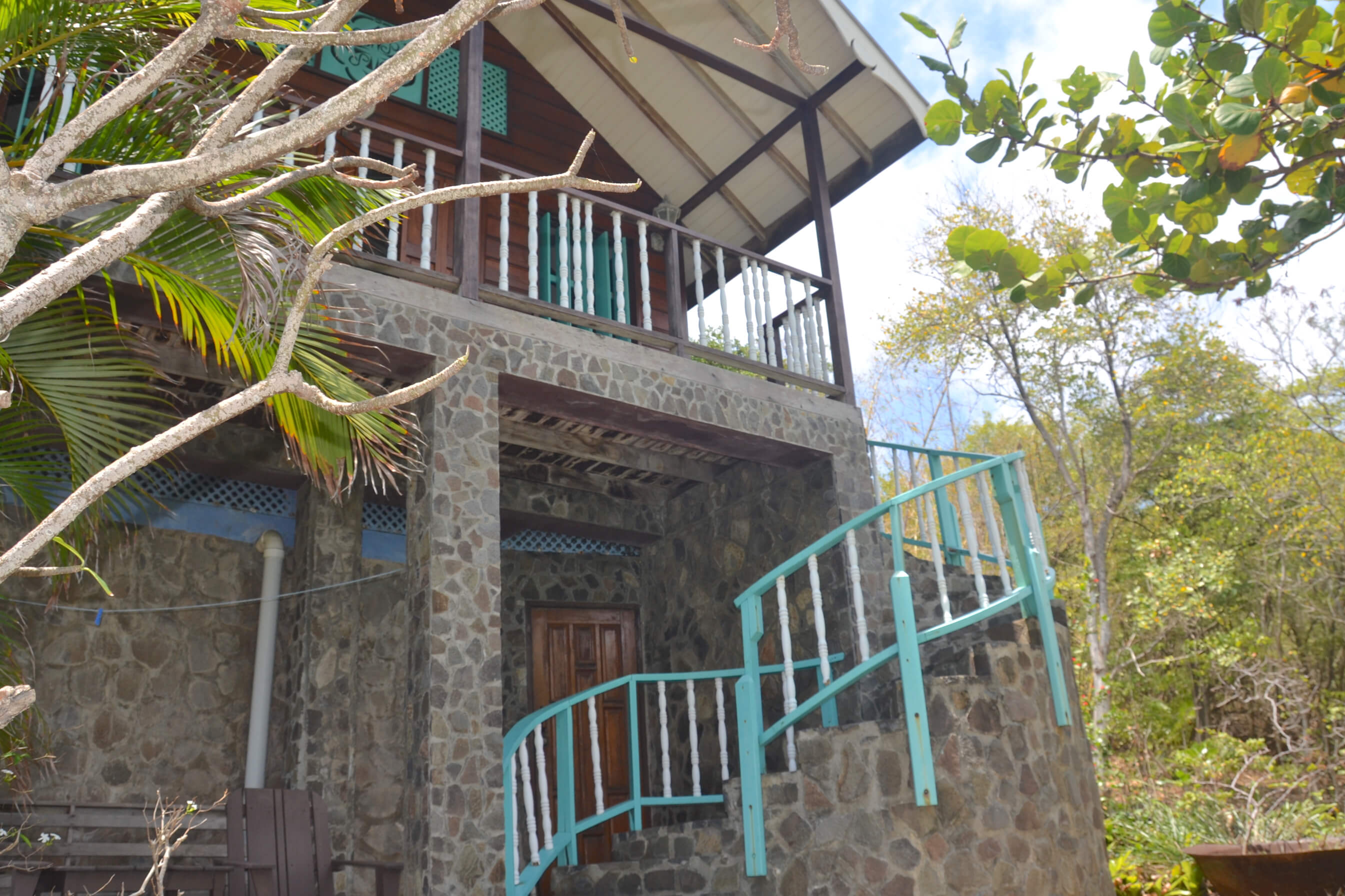 Ardesoif is open, naturally ventilated and constructed from Bequia stone and hardwoods. Guests staying here can appreciate the cool shady retreat from the Caribbean sun - just what is needed after a morning spent laying on the beach... The colours are bright and cheerful, with themes of turquoise and creams, and the natural feel continues to the inside of the property, with more hardwoods, and lovely beams on the ceiling. Another fantastic feature of this Bequia holiday retreat is the solid stone spiral staircase.