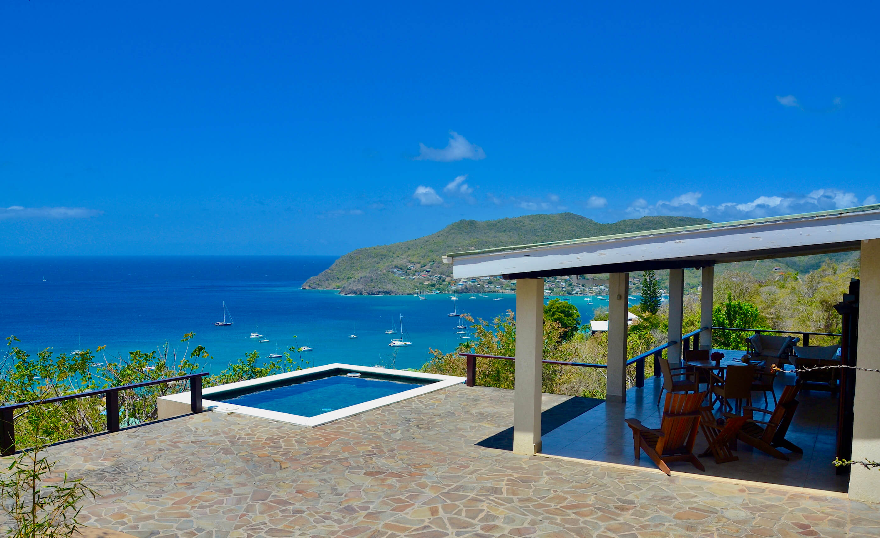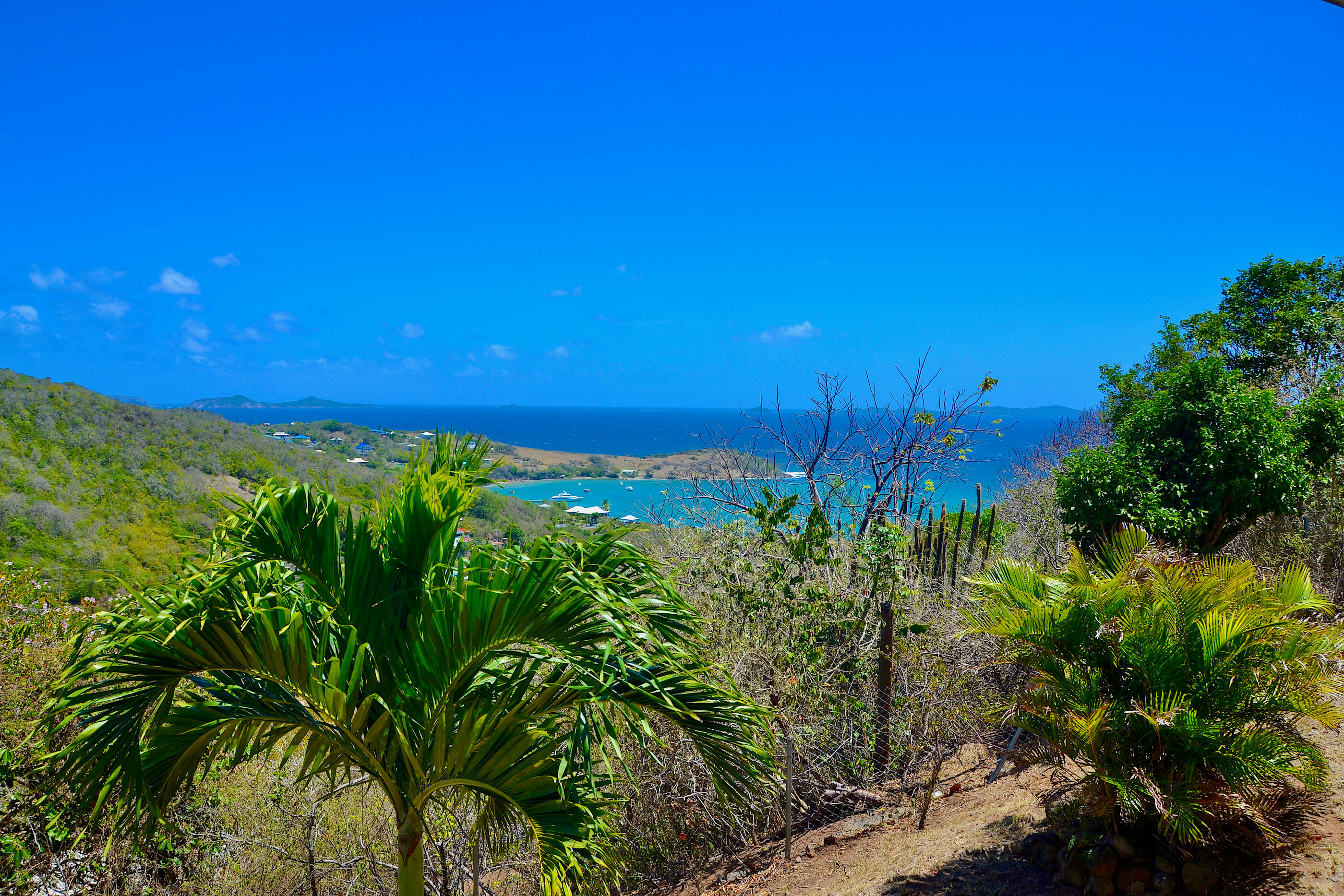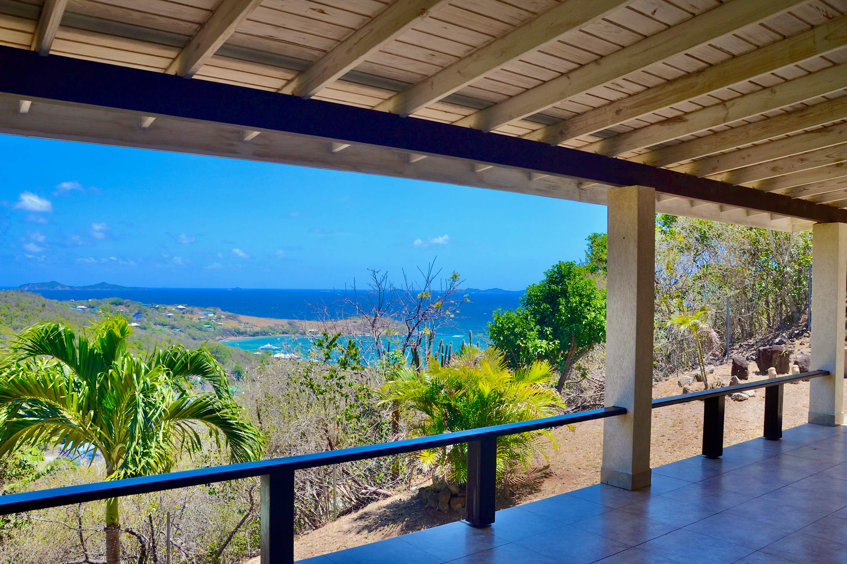 The property has an elevated ridge top location, with good breezes and double views over both sides of the island - over Lower Bay, Princess Margaret & Admiralty Bay to the West, with views of Friendship Bay,Battawia and Mustique to the East.