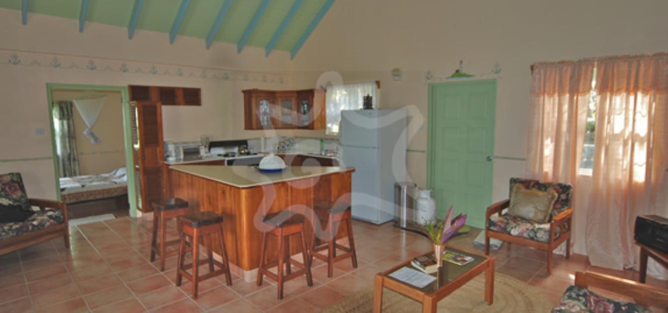The living area is light, bright and comfortable and opens out through double doors onto the veranda for views out over the bay and gardens. All windows and doors are full screened. The layout of Lighthouse villa is perfect for 2 couples or a small family, with a central kitchen, dining and balcony, meaning it is easy to be social and to interact with the rest of your group when meals (or cocktails :) are being prepared. The living room also has a stereo, Cable TV and Wifi internet.