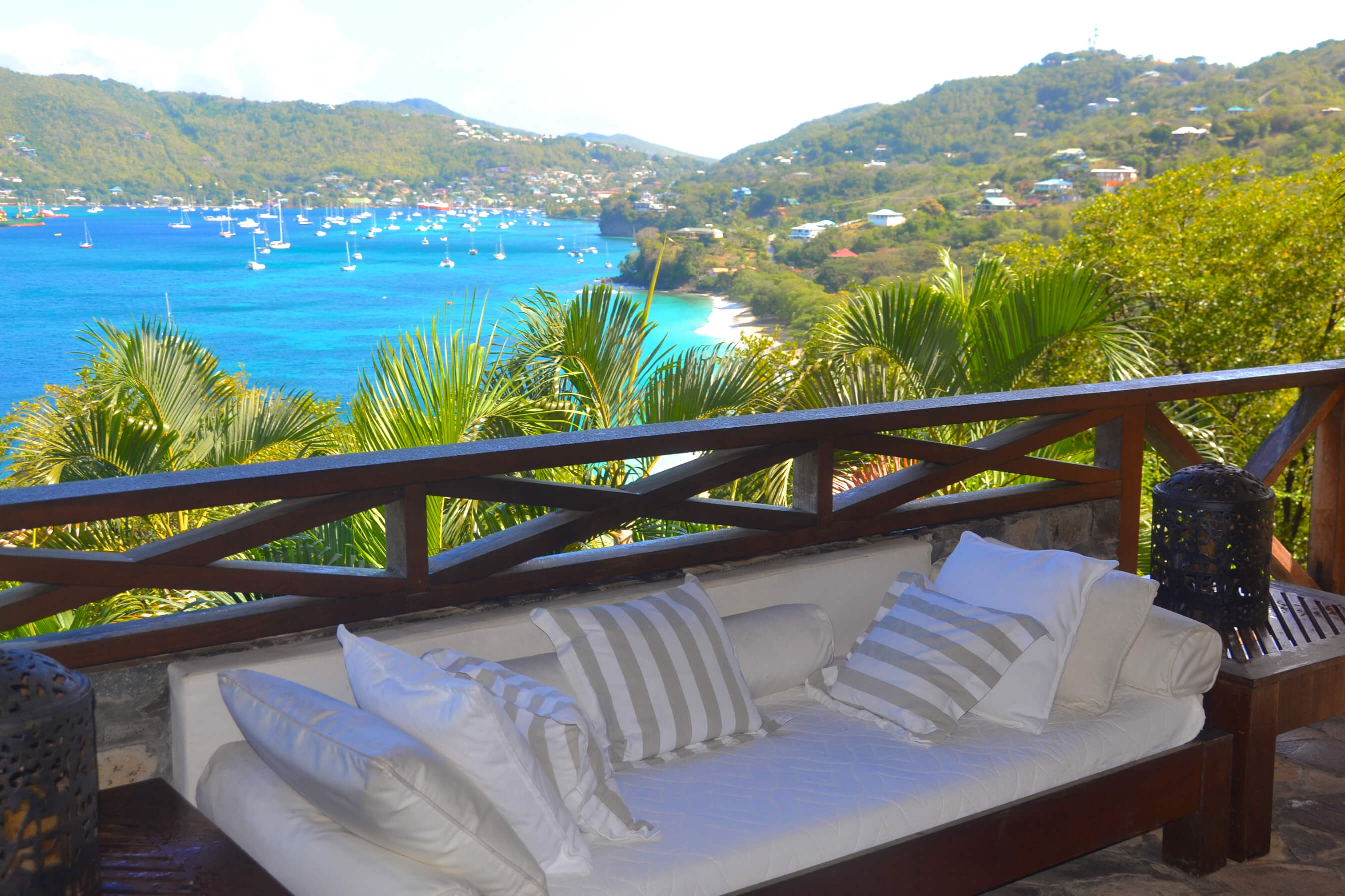 Lime Tree Villa is just a short walk from the beautiful Lower Bay Beach, and has simply spectacular views over the entire Admiralty Bay, right down across Lower Bay to Princess Margaret Beach and the yachts in the harbour.