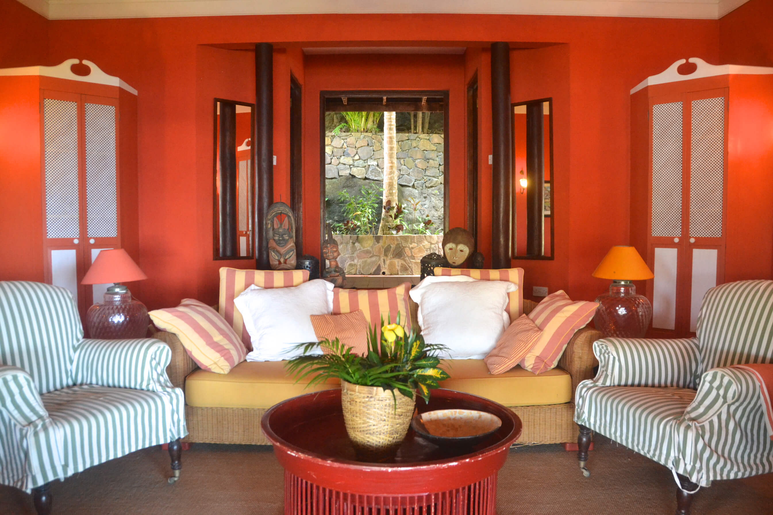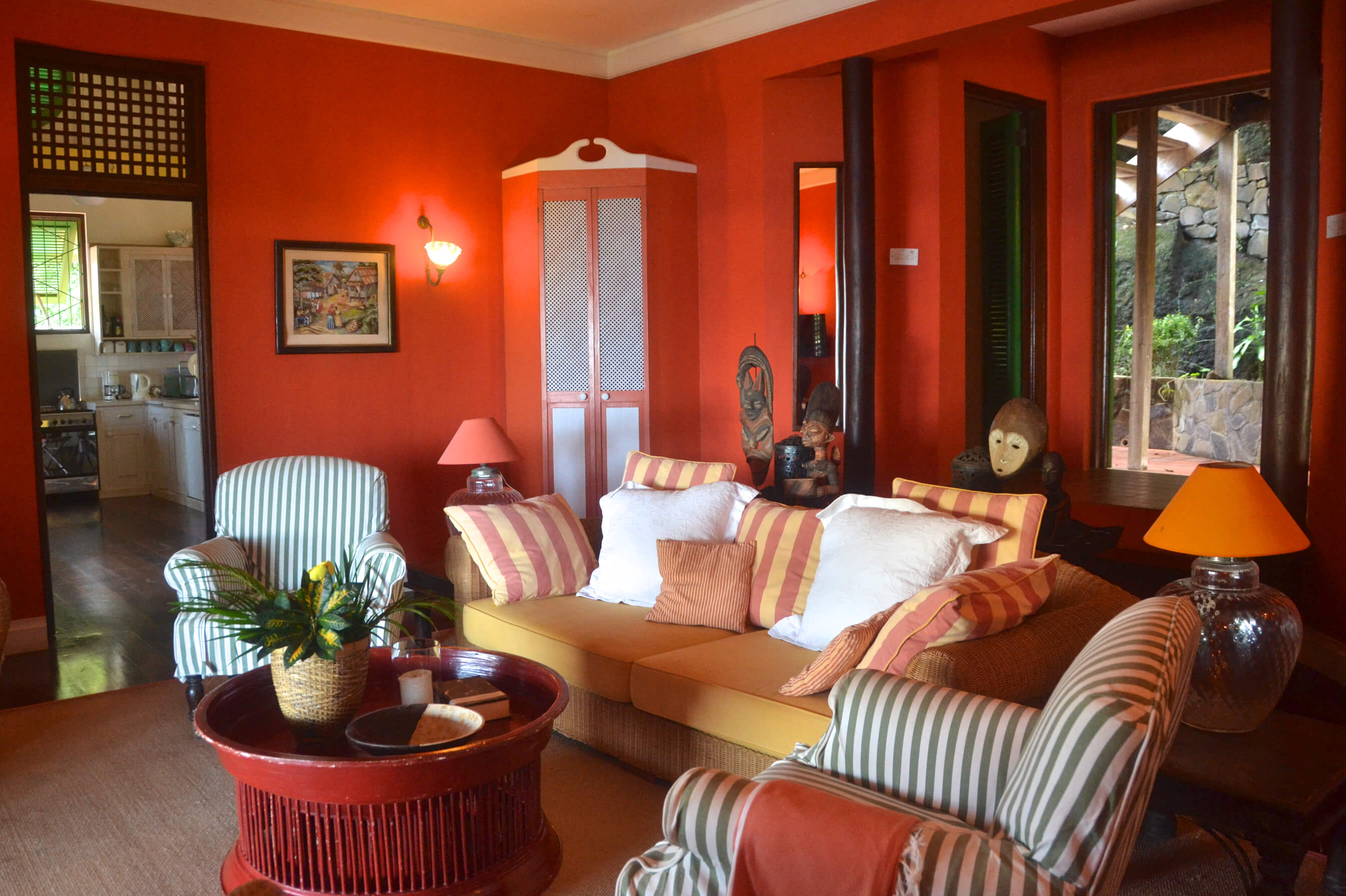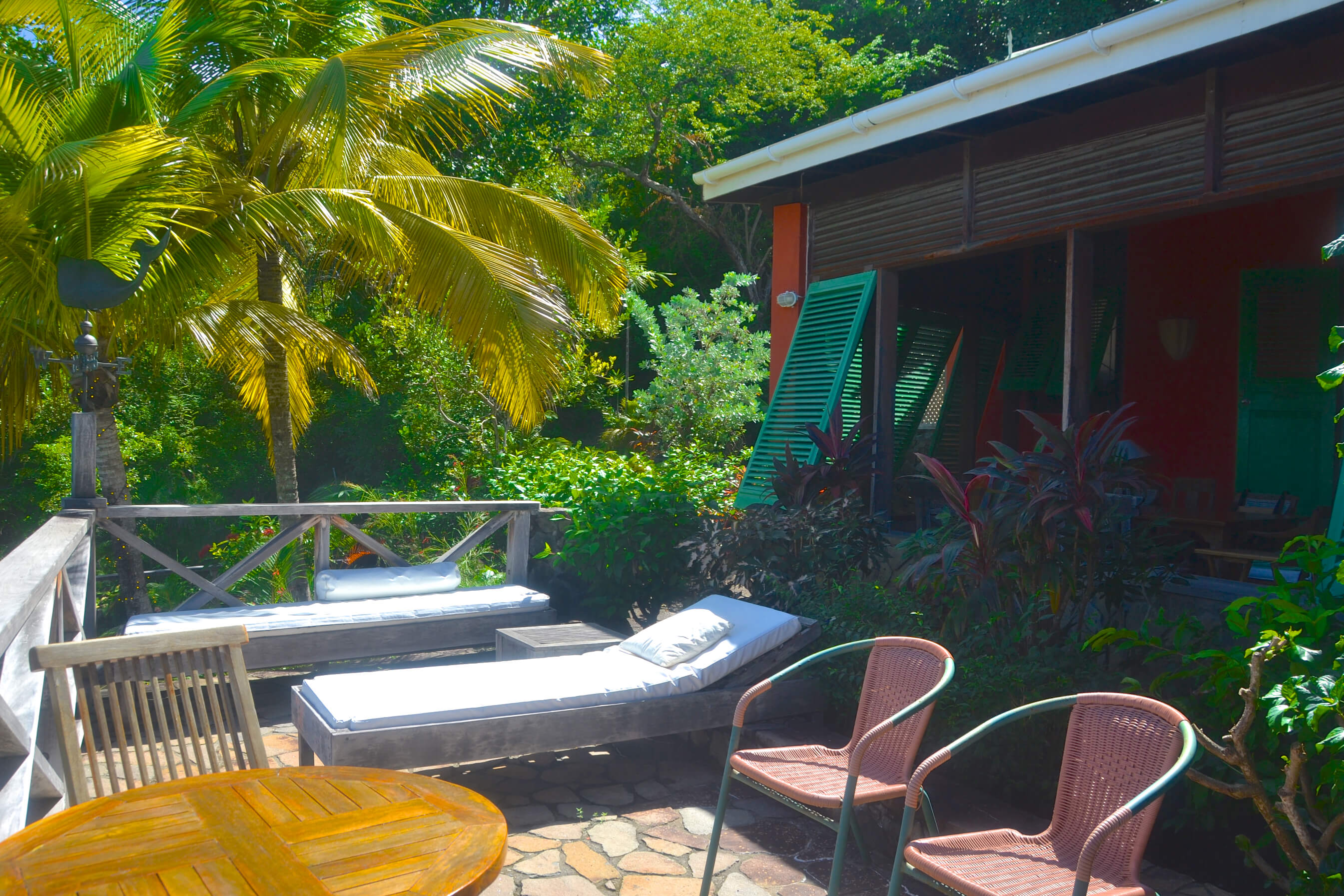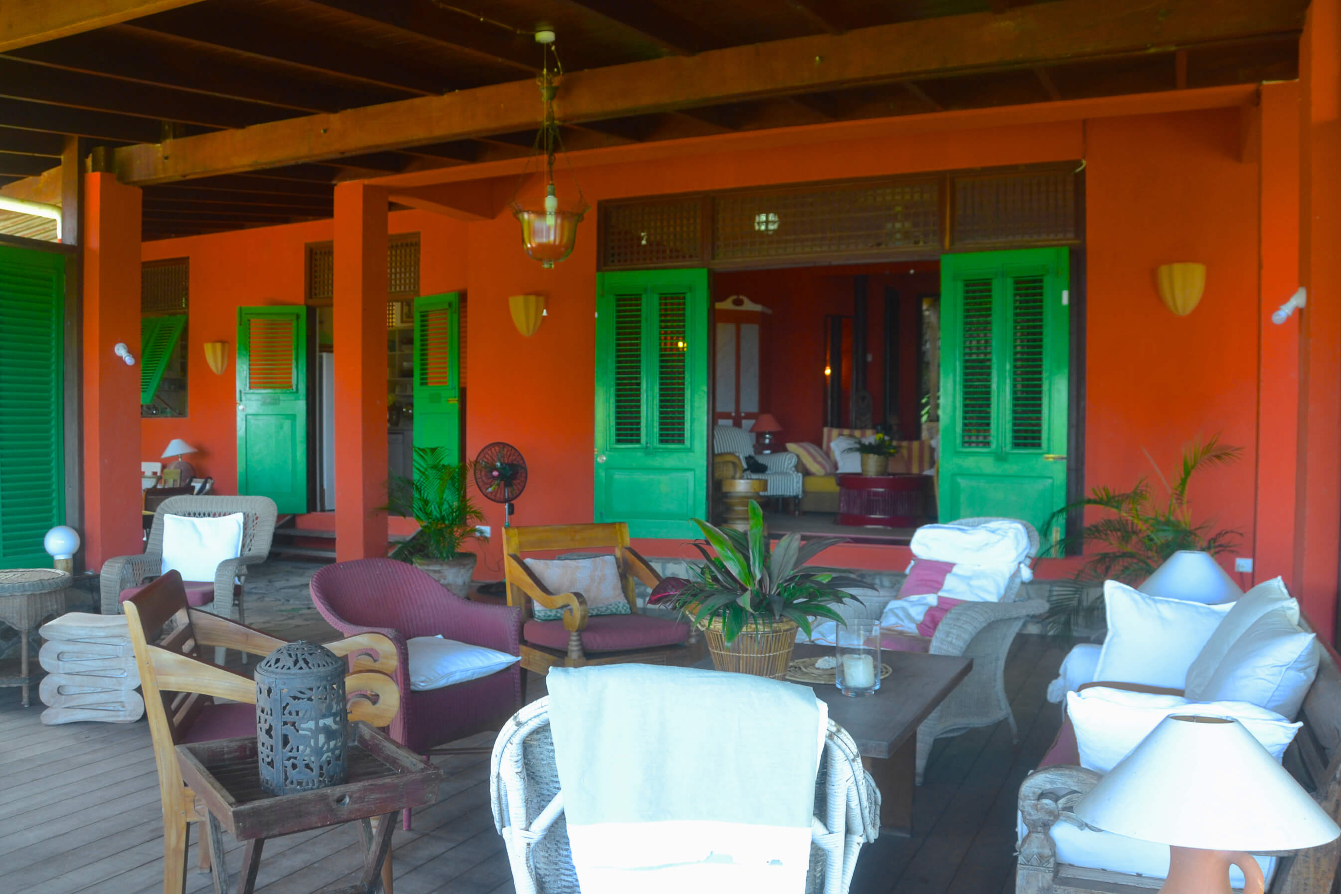 The very heart of Lime Tree Villa is a vast stone and wooden veranda. This is a spacious cool and comfortable area for relaxation, with plenty of chairs, sofas and cushions to your heart's content! Various seating areas around the veranda and surrounding lush gardens mean you can always find the perfect spot to relax and read a book whilst taking in these special ocean views.