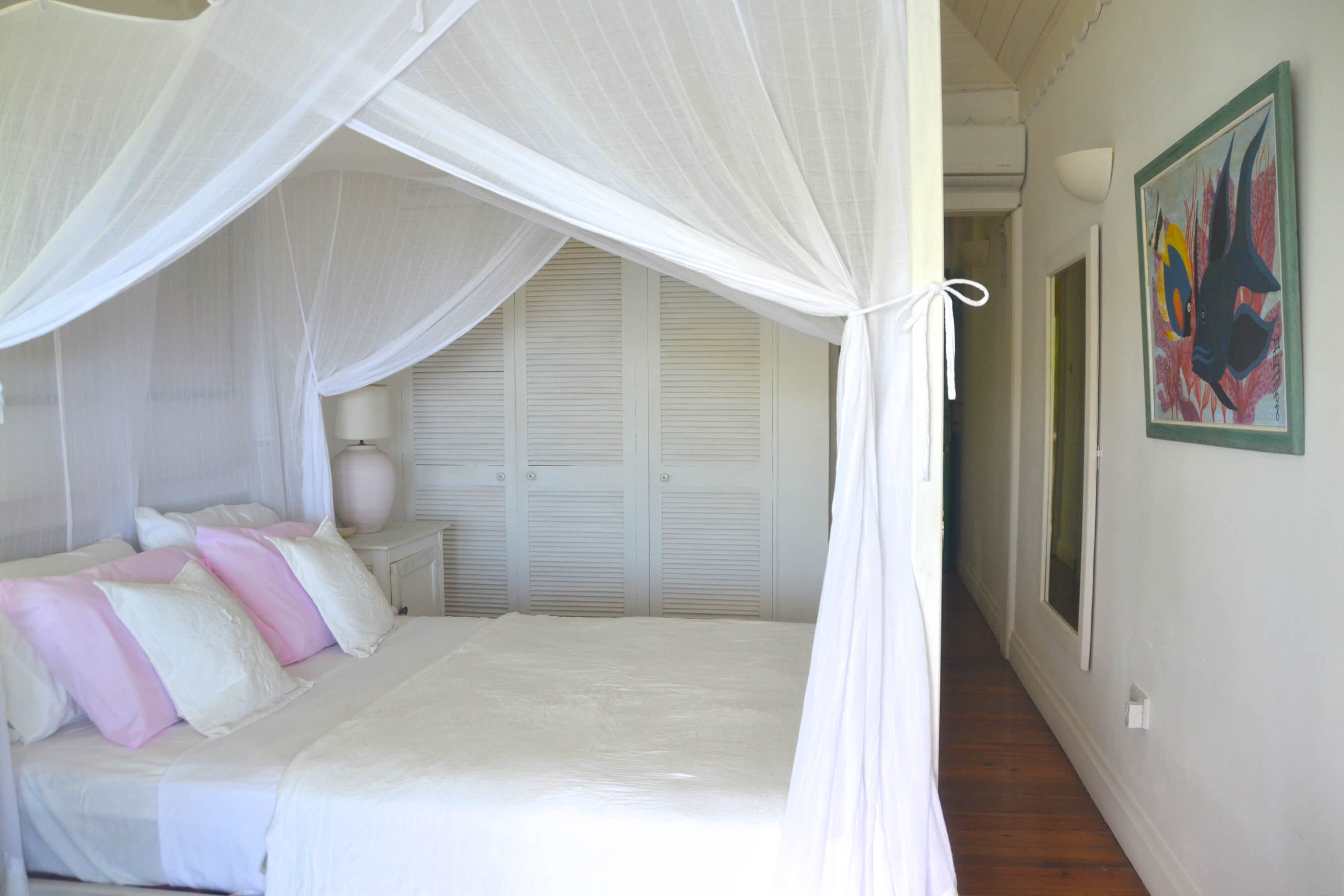 The 3 air conditioned bedrooms in this Bequia villa are all light, bright and airy en suite rooms, with 4 poster beds and mosquito nets to keep you comfortable at night. There is also a guest bathroom located off the main living area.