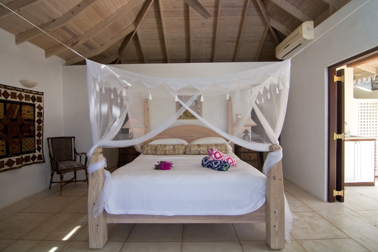 The villas 3 double bedrooms have direct access to refreshing balconies via elegant french windows. 2 bedrooms are in the main house and 1 in a Cottage overlooking the pool. Almost all the windows and doors have been screened at Ravenala.