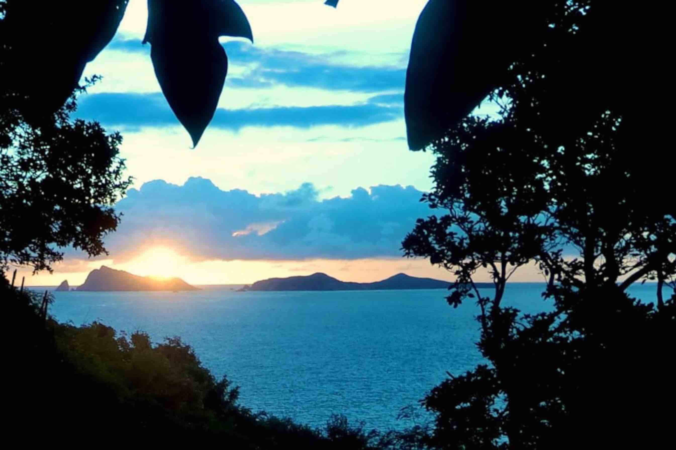 The cottage is set on sloping hillside 200 feet above the ocean with a view of the Grenadine islands of Balliceaux and Mustique.