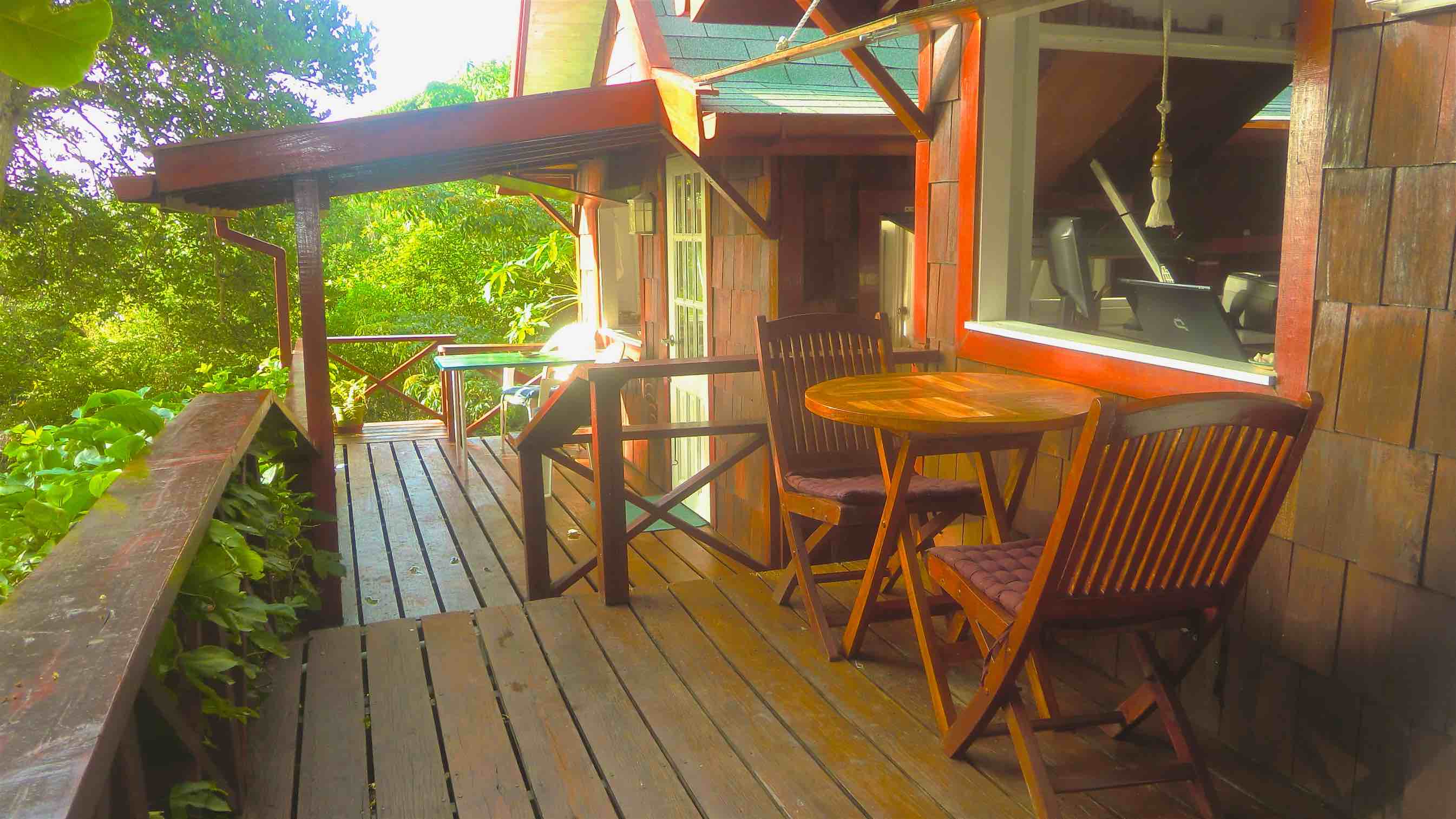 The cottage buildings have a large joining veranda, 2 bedrooms with queen sized beds, a shared bathroom and kitchenette with fridge and cooker and small study with WIFI. From the large deck which connects the 2 cottage buildings there is a stunning view over the islands of Baliceaux and Battowia.