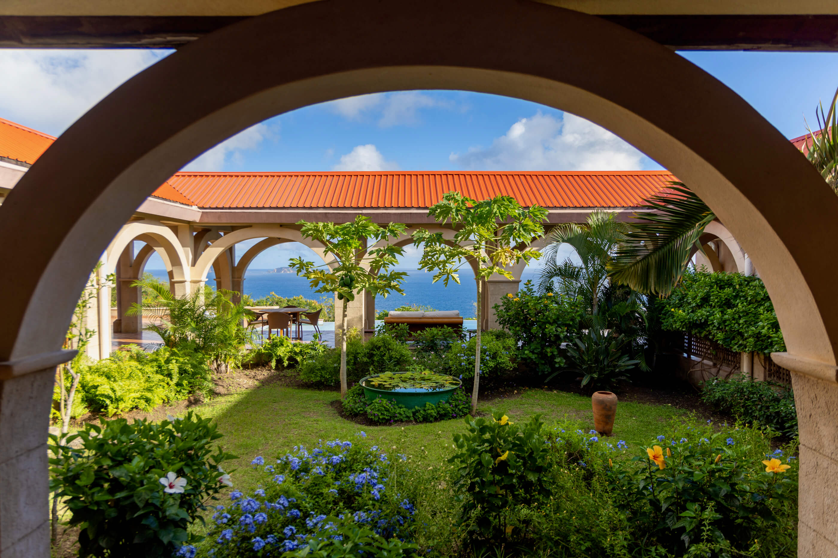 Designed by the renowned Italian architect Luigi Vietti of Costa Smeralda fame, it's interior was decorated by French and Italian designers in a Caribbean ambiance. Helianthus is actually the Latin term for sunflower and a charming gazebo nestled amidst the tropical fruit trees and flowers in the garden offers an ideal place to get away and read or just appreciate the peace and quiet.