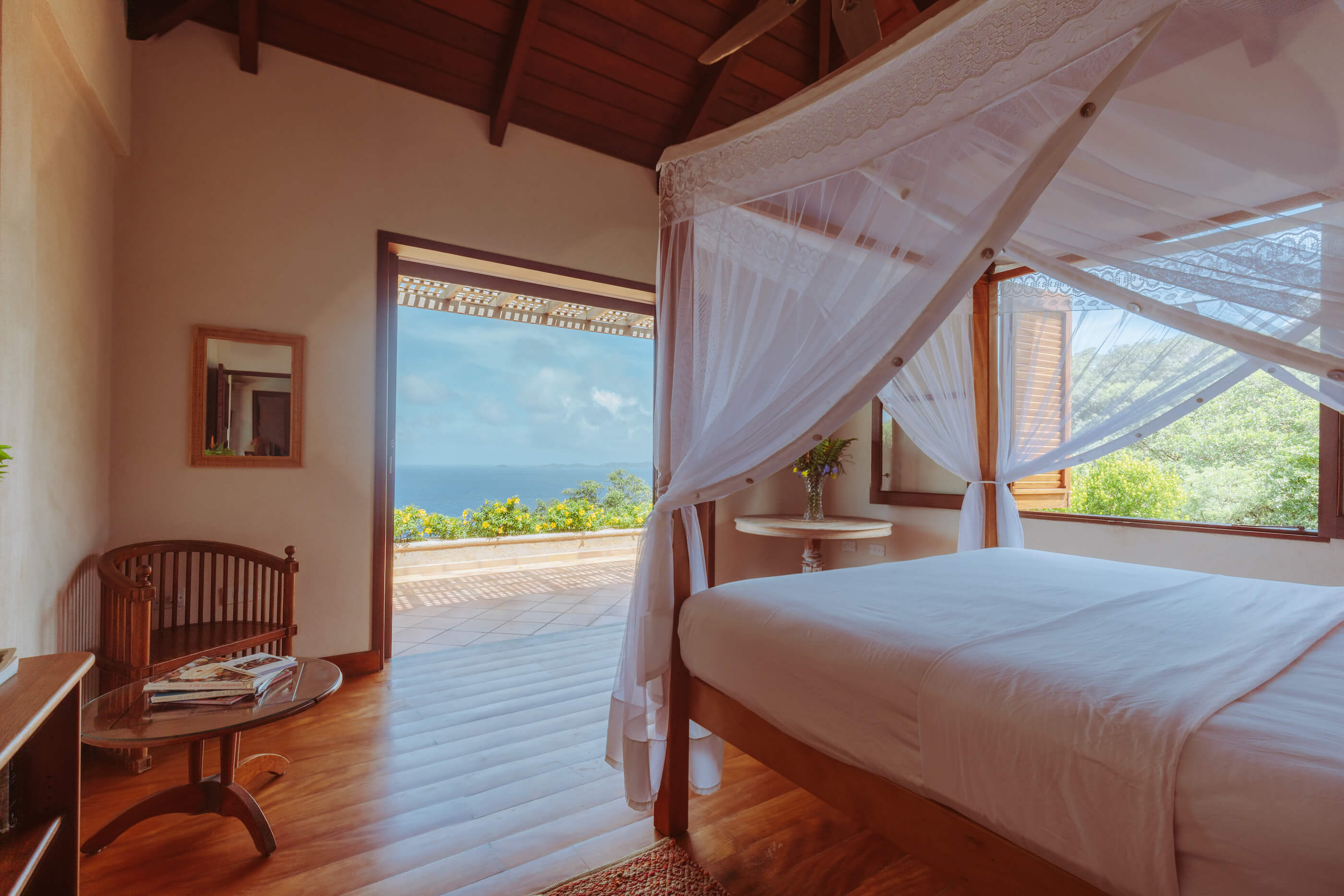 This villa has an enviable infinity pool, with spectacular views of the Southern Grenadine islands. From Helianthus you can look out toward Mustique, Balliceaux, and Battowia. Beside the pool, there is a central flower garden, courtyard and wide terraces cooled by the sea breezes and offering a unique vantage point for you and your guests to enjoy breathtaking ocean views over the gardens. There are sumptuous sun loungers available for you to stretch out and enjoy the tropical warmth whilst the large veranda is spacious and cool to relax and take in those spectacular views.
