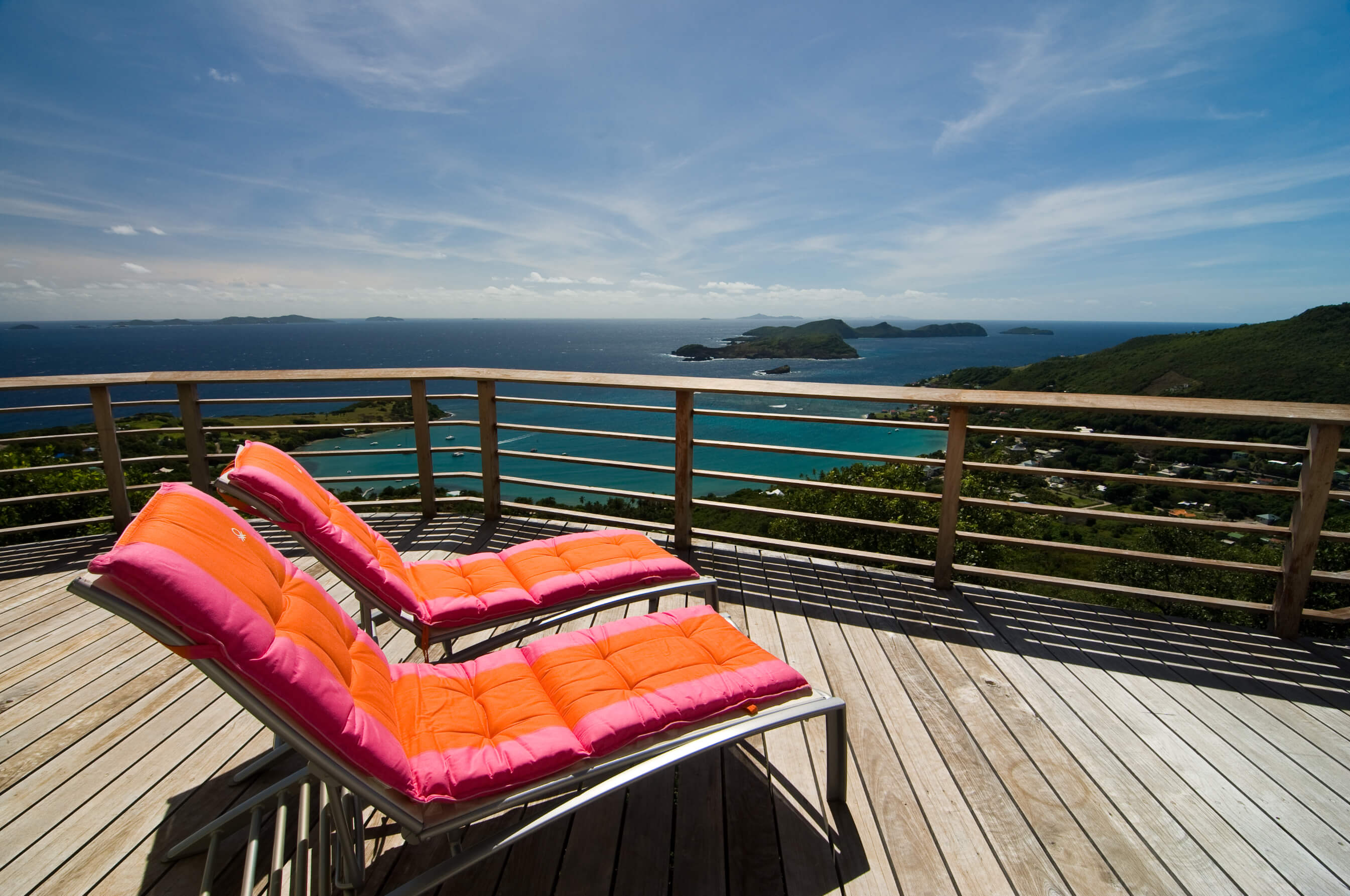 From the wooden sun deck at treetop level, guests have a captivating 300 degree view encompassing Battowia and Balliceaux to the east, Mustique (only six miles away) to the southeast, the entire south Grenadines and Bequia's own leeward side with It's beautiful beaches. You could spend your entire vacation watching the ever-changing effects of light on the reefs below, the ebb and flow of the ocean, and the passage of the sun, moon and clouds over the bays and lush hills of Bequia to the distant islands beyond. Watch the sunrise directly from your bed or the sunset from the west facing balconies with a cool sundowner in hand.
