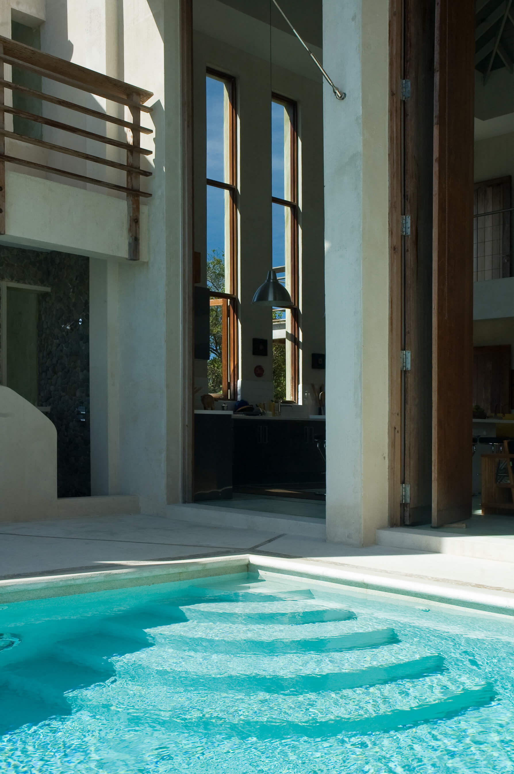 You enter Mangwana at mezzanine level directly into a vast living area with vaulted ceiling, open- plan kitchen and magnificent 16 ft high Brazilian hardwood doors which in turn open onto the pool and frame one of the villa's many stunning views. The villa also enjoys a spacious south-west facing shaded terrace with BBQ and a peaceful walled garden.