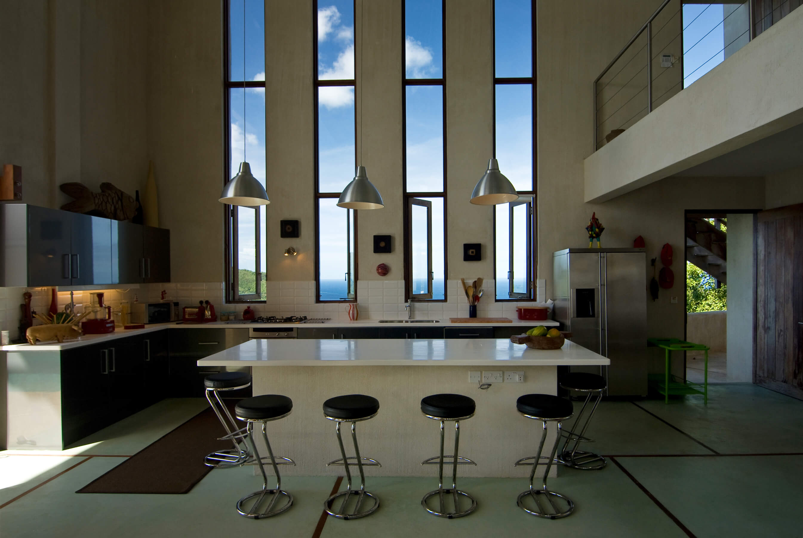 Air Conditioning units in the leeward 3 guest bedrooms keep these rooms at a lovely cool temperature but overall we highlight that the property is designed with the intention of a achieving a low energy footprint with natural ventilation from the steady tradewind breeze at this location.