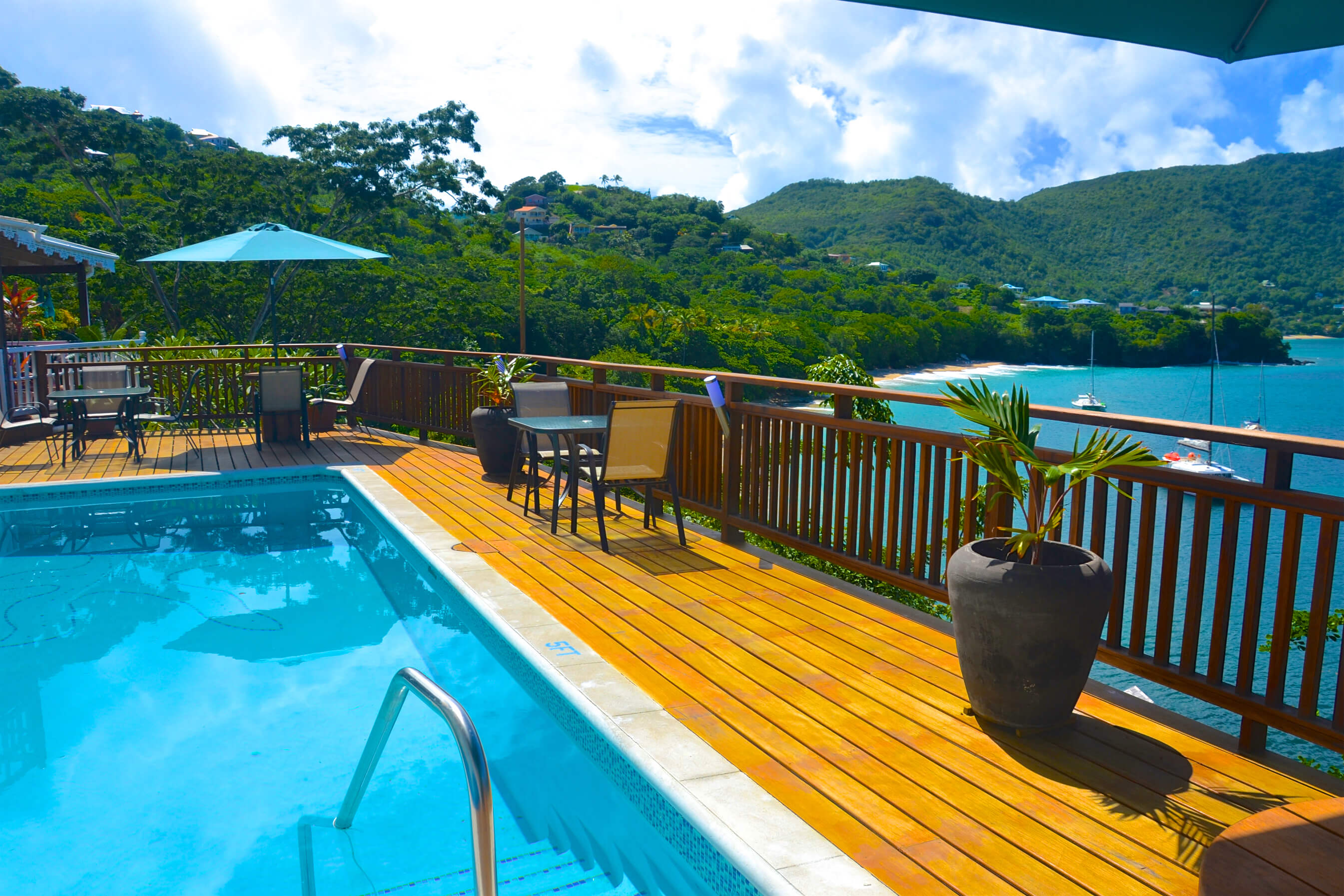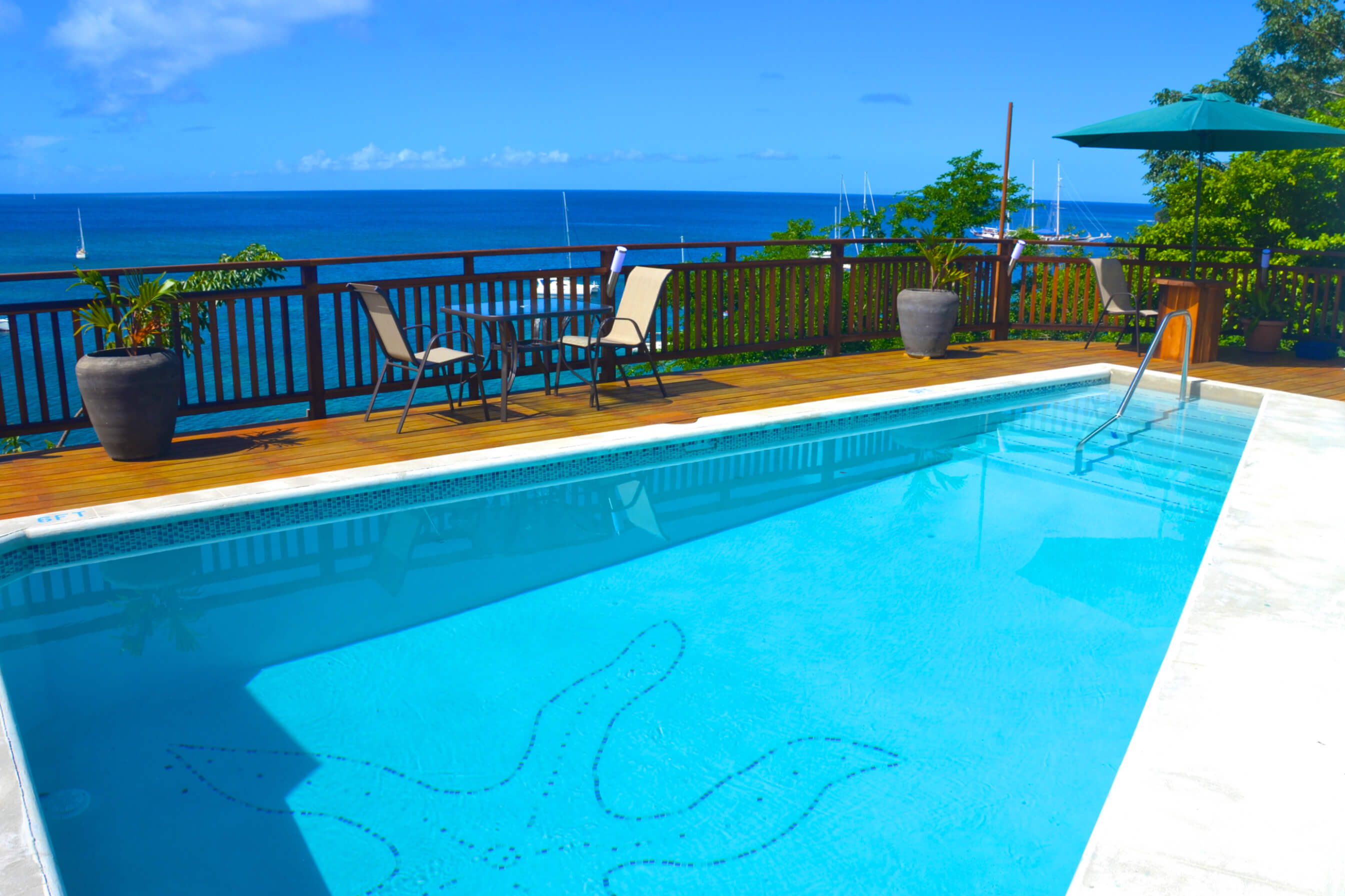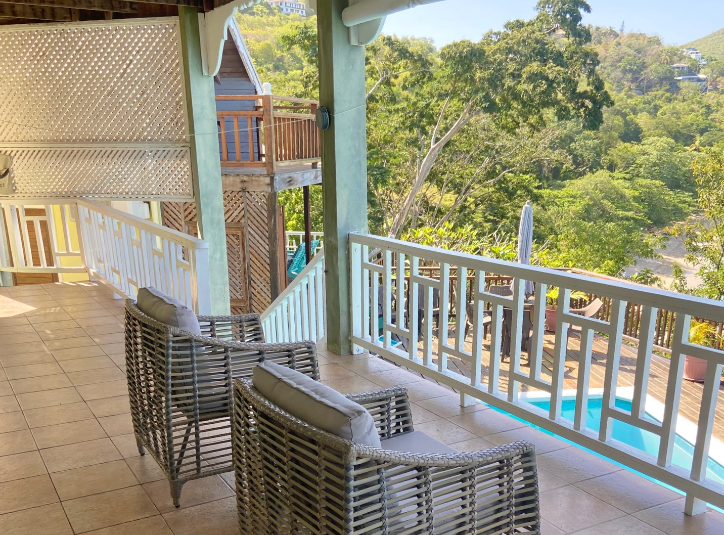 The balcony is lovely and shaded, with nice comfortable seating and plenty of space to chill out in the cool breeze. This is a lovely area to relax after a long day's snorkeling, diving, or Bequia exploring. The pool deck area (shared with guests staying in the Upper Level) is the perfect place to relax and enjoy those simply spectacular views. The Gumbo Limbo Studio is a great Bequia holiday rental for 2 guests. The villa can also be rented together with the upstairs villa, for a maximum of 6 guests. Laundry facilities are available by arrangement through the housekeeper.