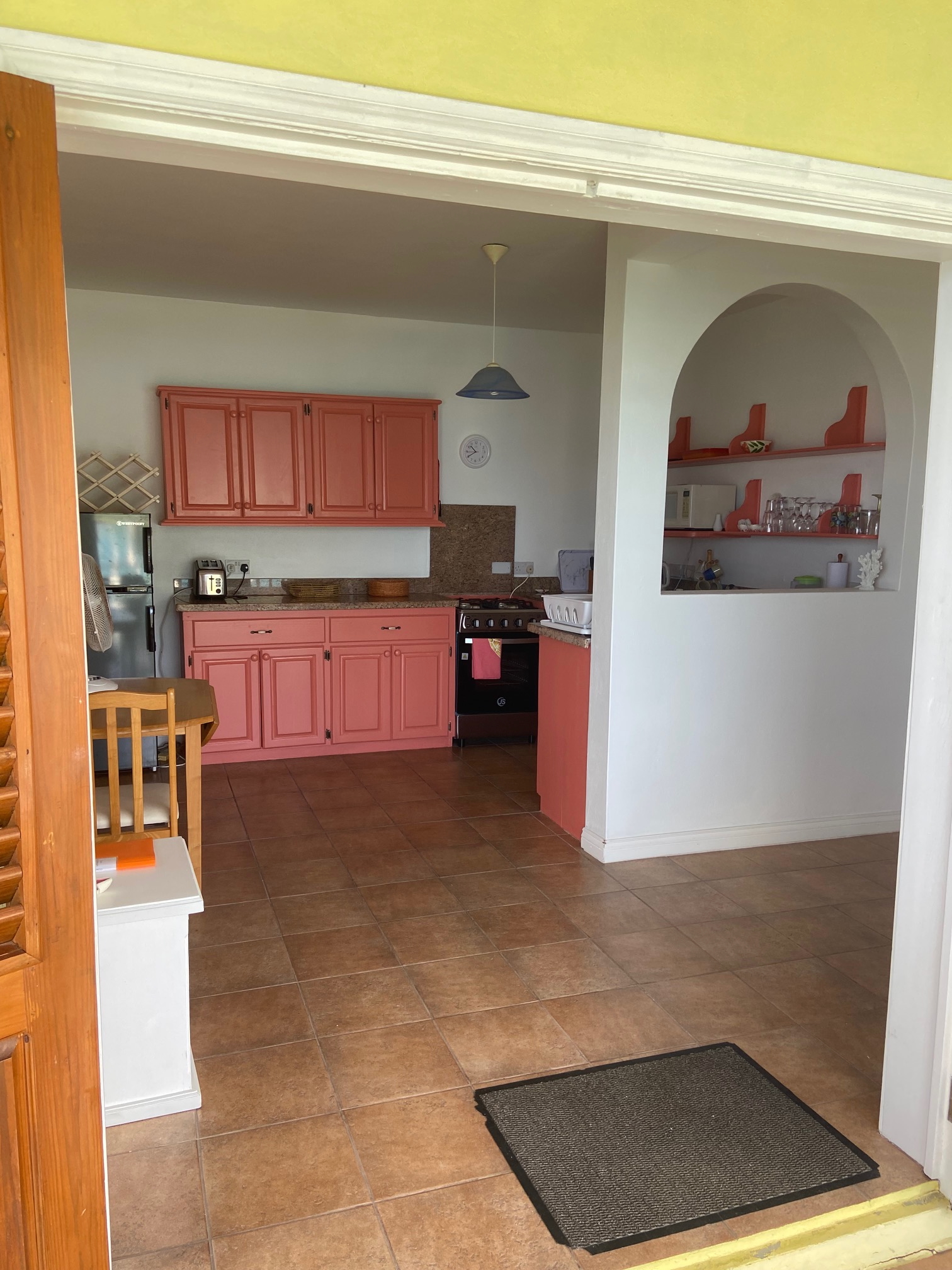 This holiday villa has typical Caribbean charm, decorated in bright, fresh colours. The studio comprises the whole downstairs floor of the villa.