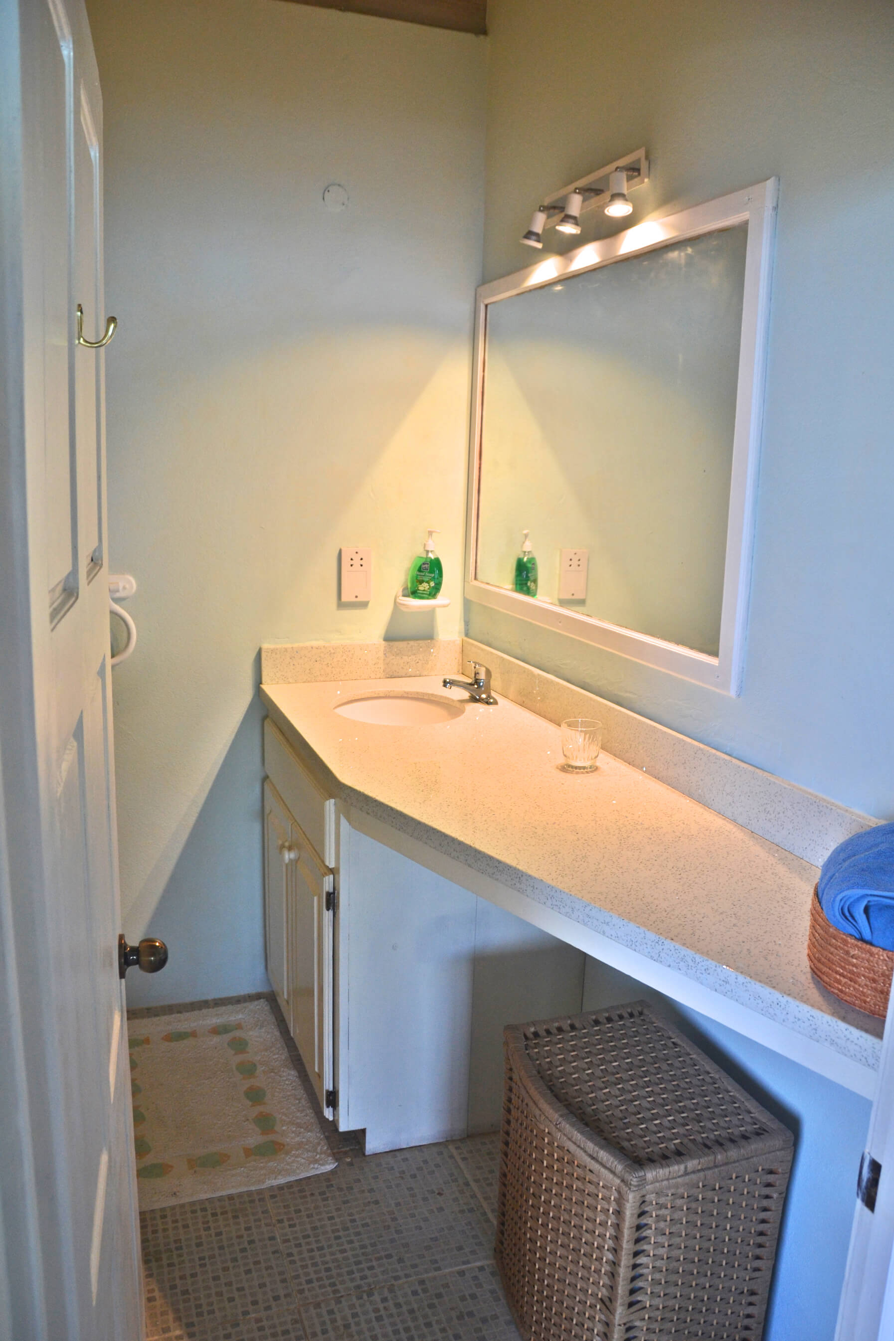 The living area is open plan and comfortable, with TV and board games to keep you entertained, after a hard day of Bequia exploring! This villa is a short taxi ride (water or land taxi) or 10 minute walk from the bustling Port Elizabeth Harbour, and from here you can arrange many activities, as well as day cruises to places like the fabulous Tobago Cays, or Mustique. The living area has large double doors that open out onto the balcony with large daybed to relax on, giving a nice breeze and feeling of space. There is WiFi available on the balcony.