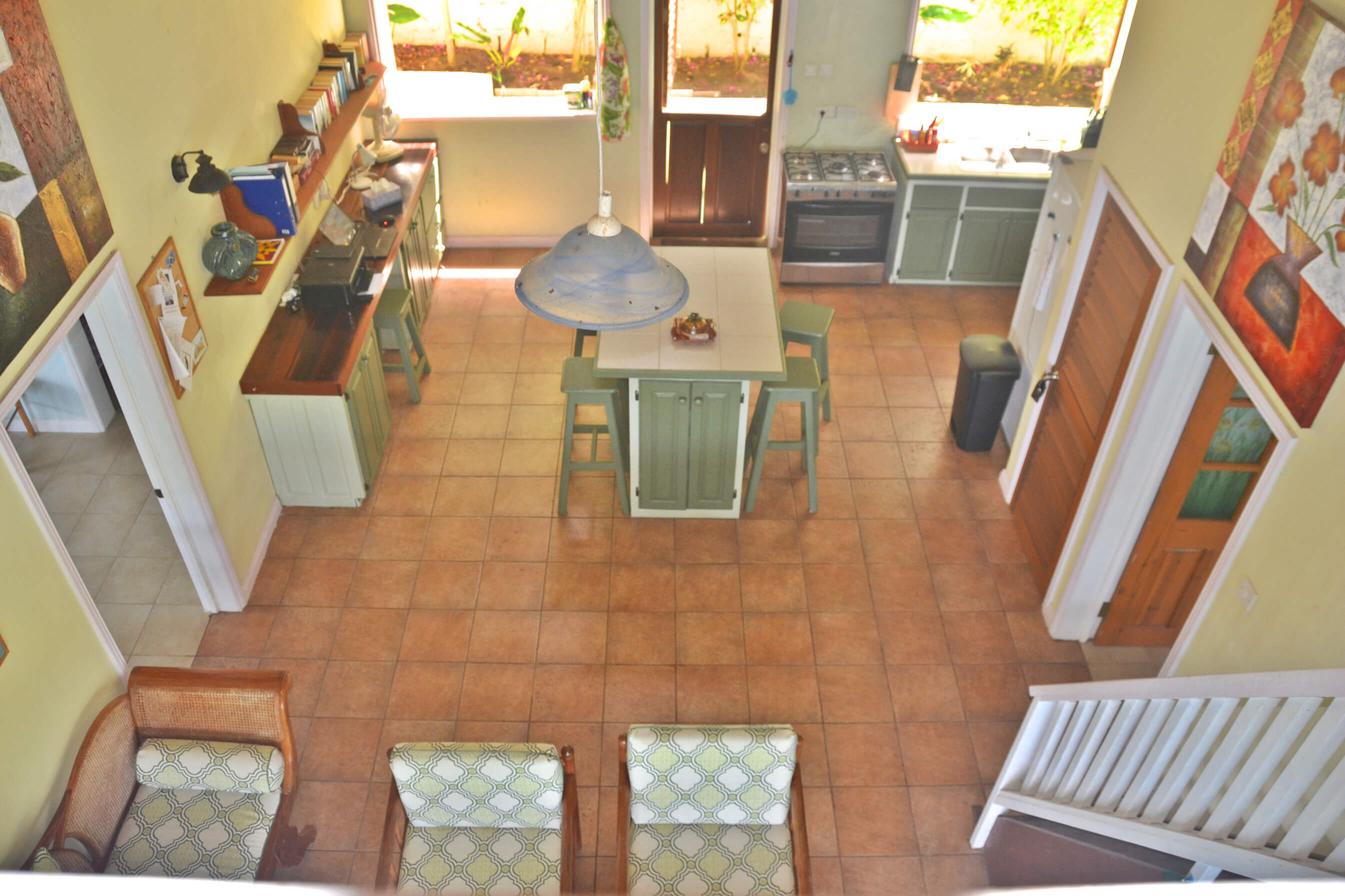 Up a flight of stairs, there is a small mezzanine floor that acts as a great 'look out' with a comfortable sofa, from here you can see the beautiful sights that Bequia has to offer. This is a great little space to relax, and take in your surroundings.