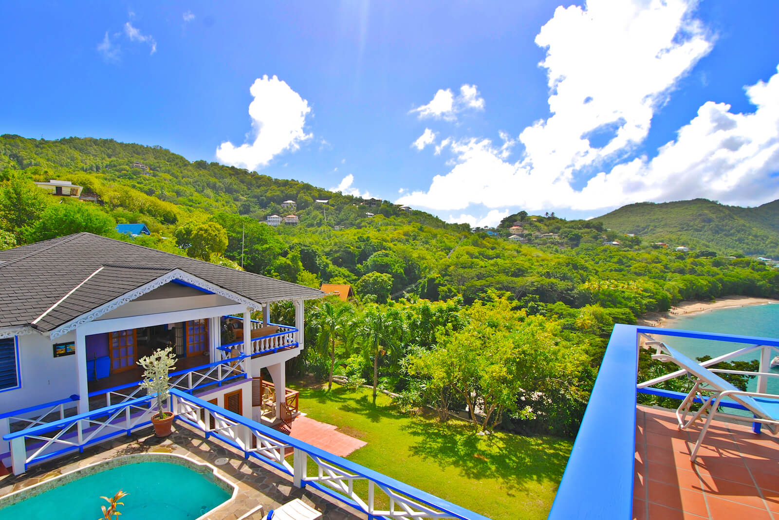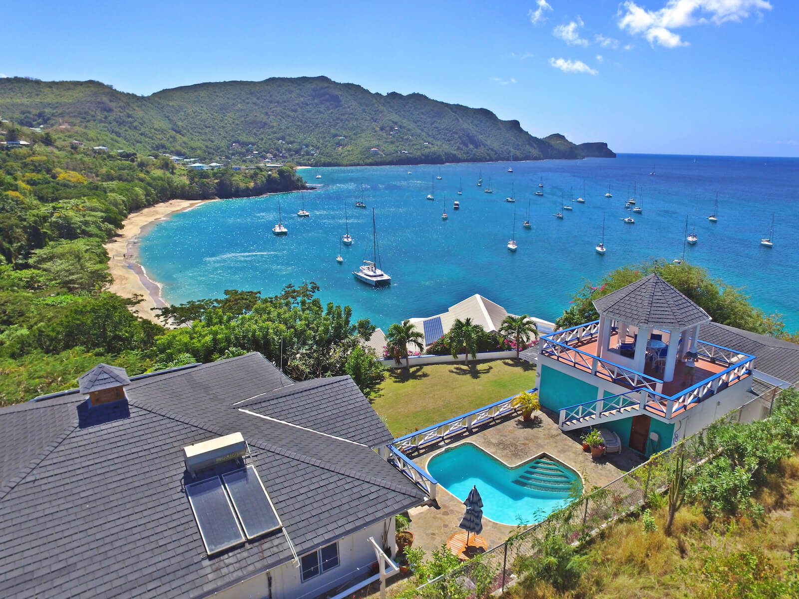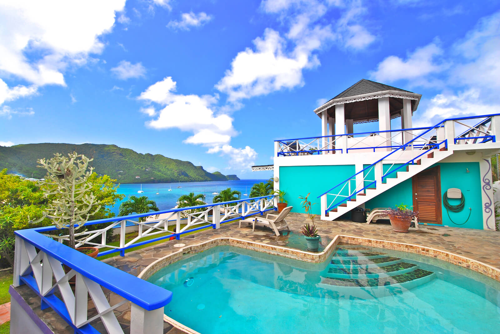 Princess Hill Villa has an attractive central patio pool area with barbecue, hardwood pool furniture and a unique, elevated gazebo with spectacular 360 degree views. There are few better places on earth to enjoy a Caribbean sunset.