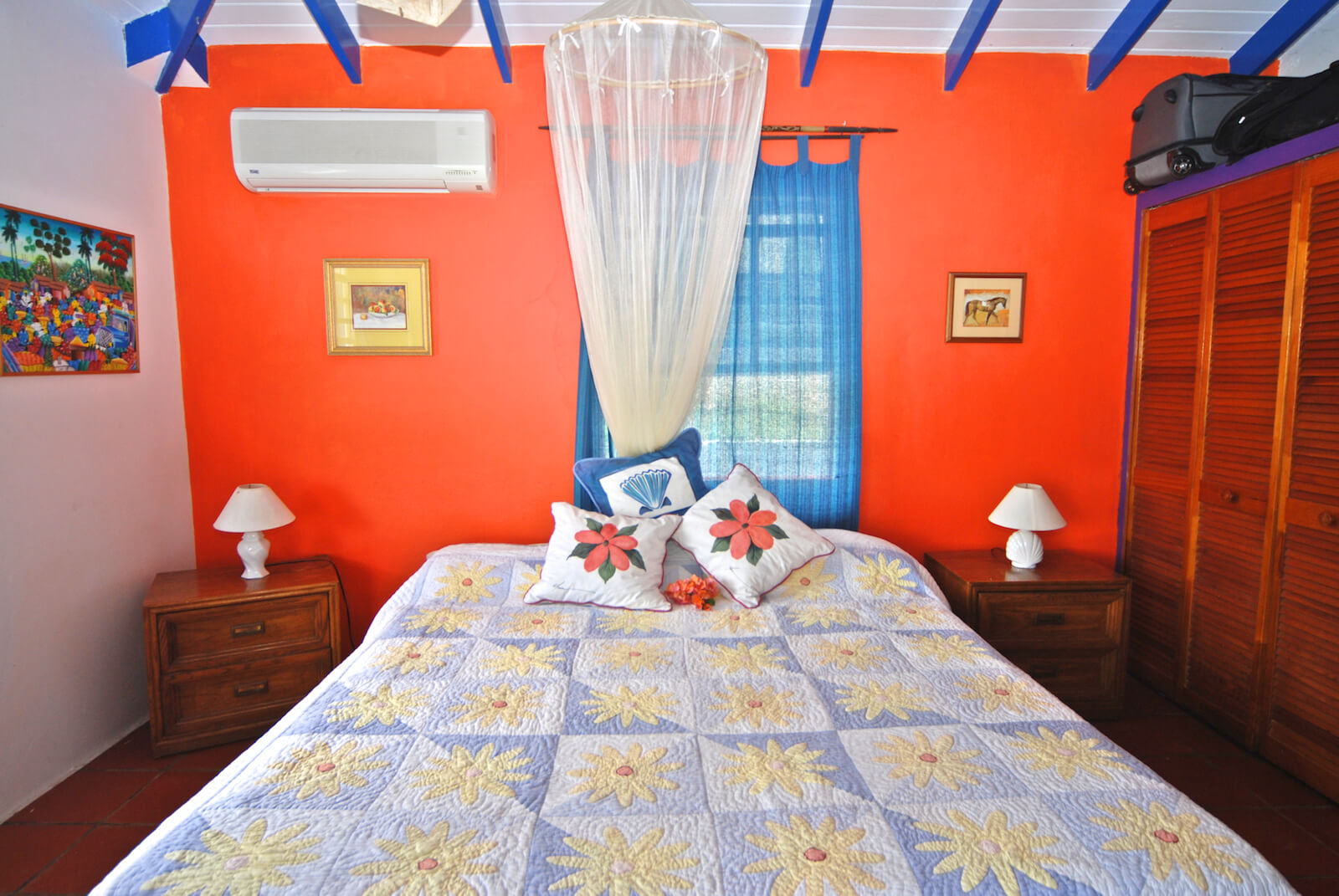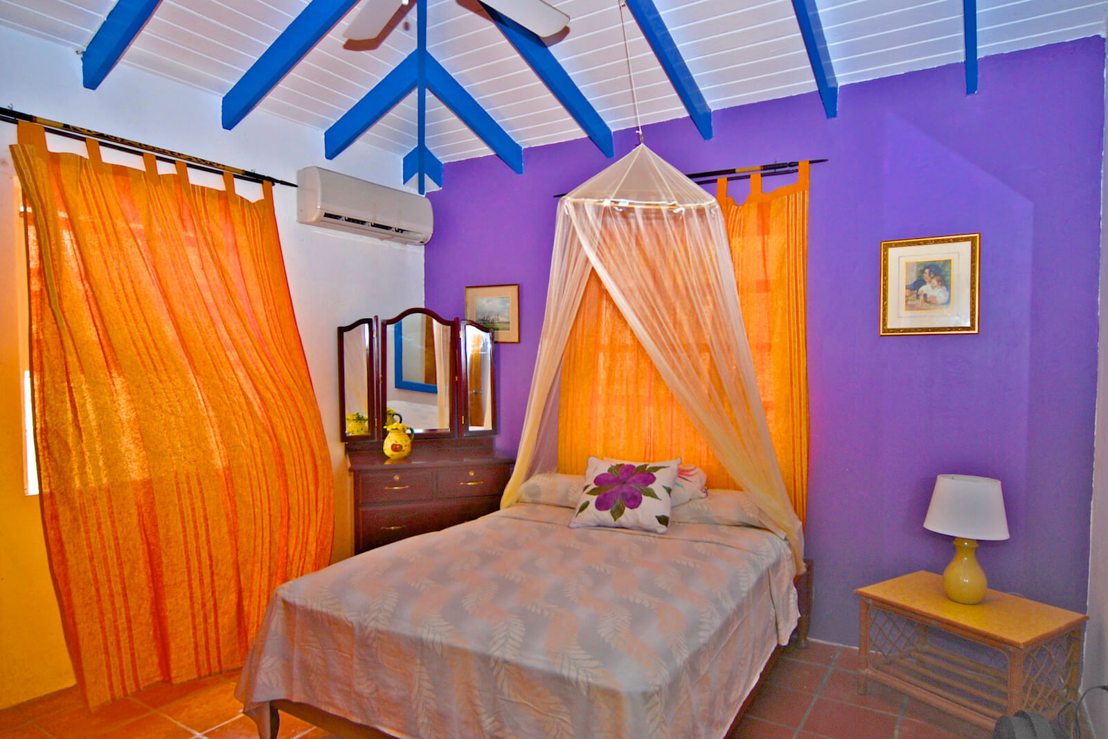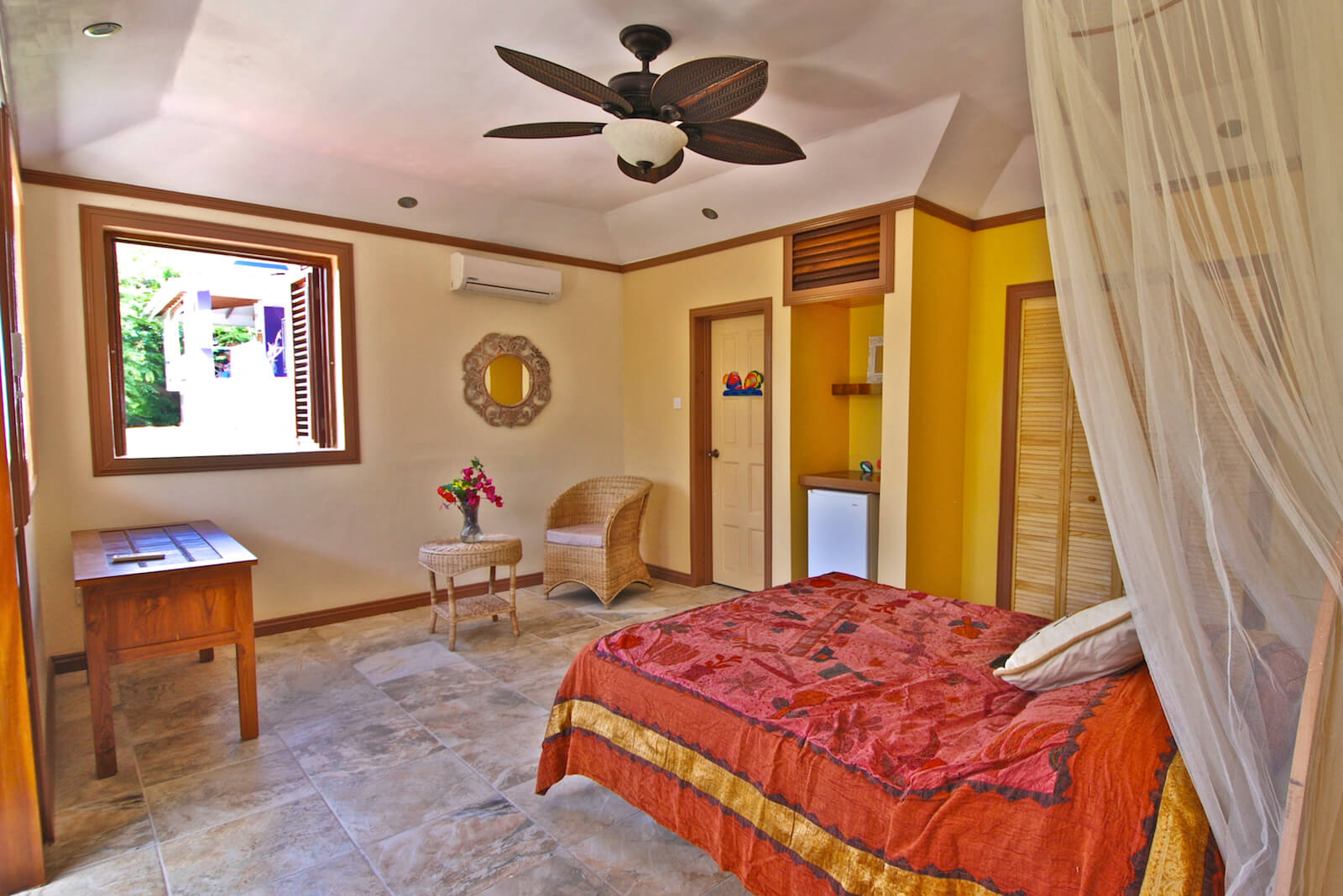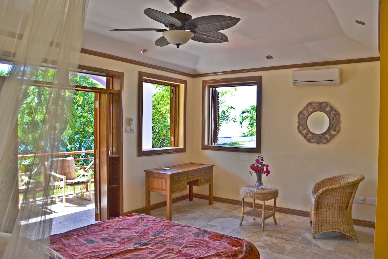 The guests at Princess Hill Villa benefit from the newly renovated Garden Suite that has AC, modern bathroom, vented shutters and walk in closet. It also has a private porch and garden views: intimate and a little removed.