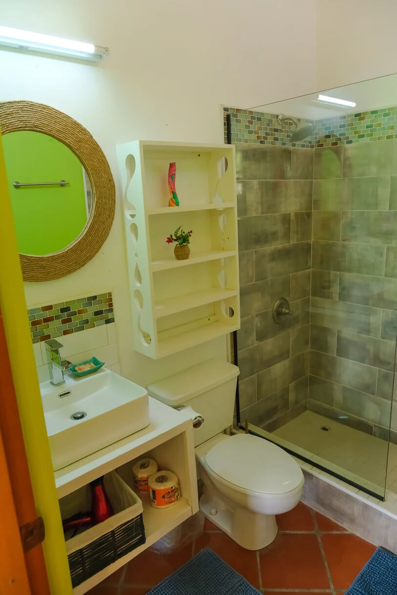 The 4 bedrooms are all air conditioned, and all with a calm atmosphere and lovely interior design. With the added features of high beamed ceilings, ceiling fans and double doors opening out onto the balconies, these rooms are ideal havens in which to relax after a busy day of exploring all that Bequia has to offer. The master bedroom, located in the loft, has the largest balcony, cable TV and a private bath. The main floor has 2 ensuite bedrooms with private patios separated by the kitchen and dining areas. A cosy double bedroom suite with kitchenette and private balcony is located on the ground floor.