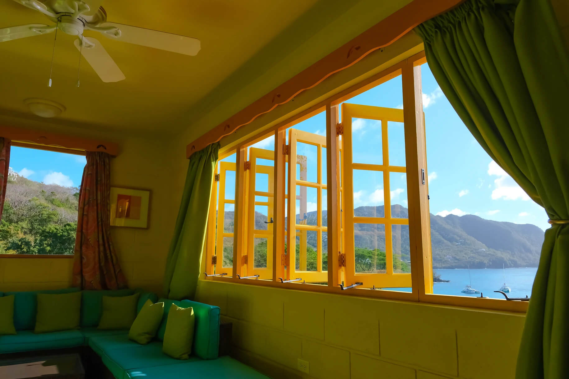 The upper of two colourful beach villas just off one of Bequia's most beautiful beaches - Princess Margaret Beach. From the balcony, guests can enjoy wonderful ocean views and truly appreciate the beauty of Bequia. Just a short water taxi, drive or stroll away from Lower Bay Beach, and the bustling harbour town of Port Elizabeth.