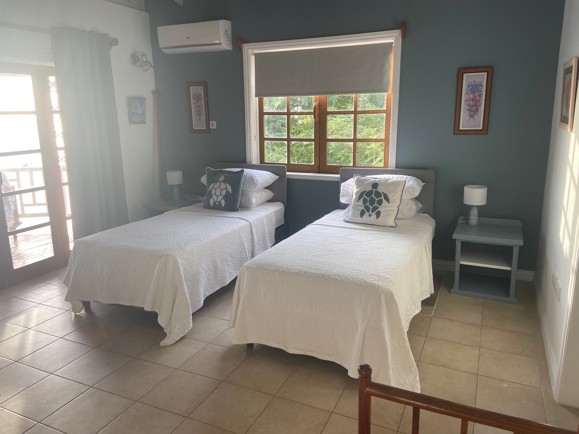 The upper level of Gumbo Limbo as two airy bedrooms (one double & one twin), both of which open out onto the balcony, so you can wake up and look out onto the wonderful views of the Princess Margaret Beach. The bedrooms also have lovely high wooden ceilings, and the breeze coming in from the open double doors keeps you nice and cool. There is also a comfortable double bed in the studio apartment, which also has large doors that open out onto the balcony.
