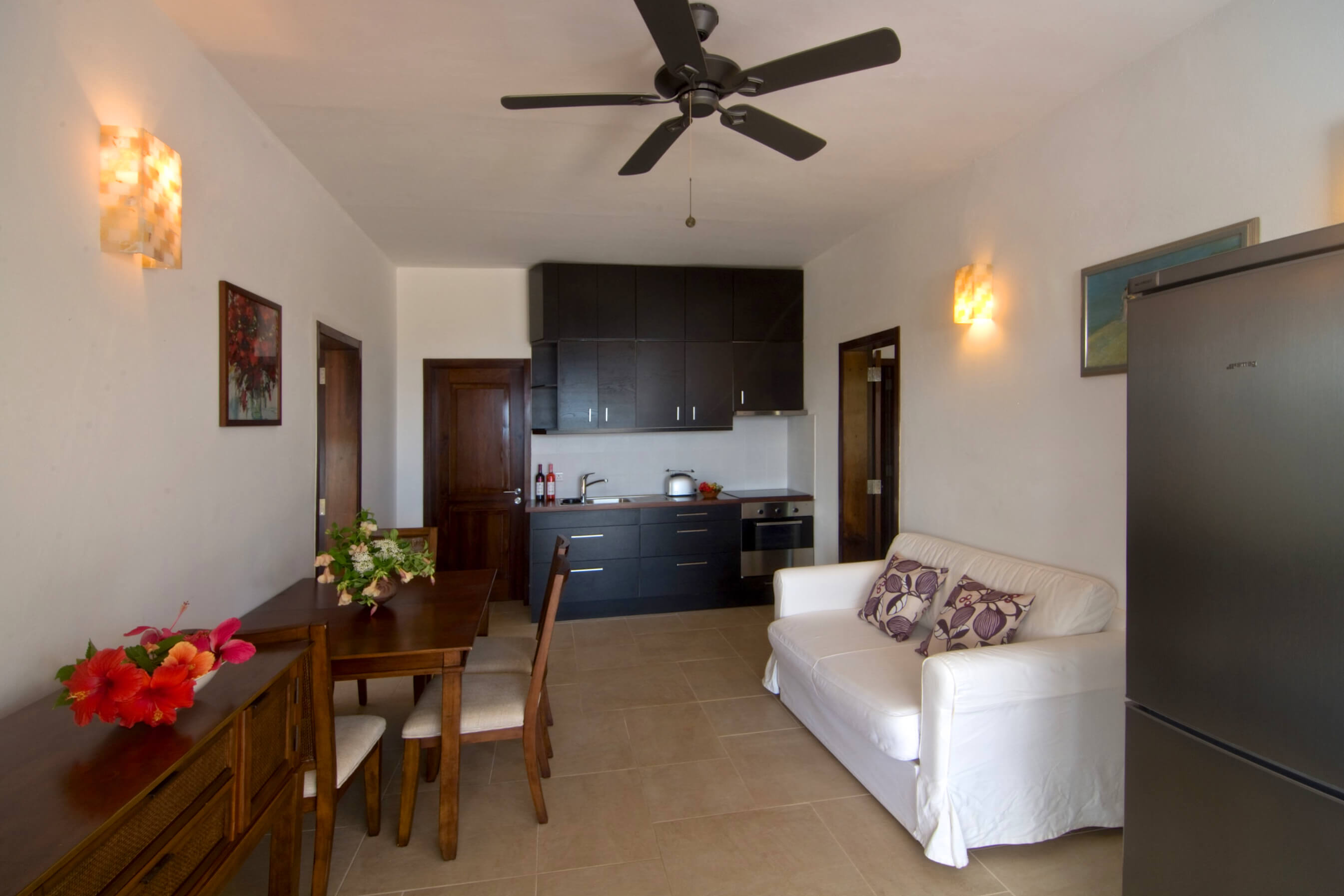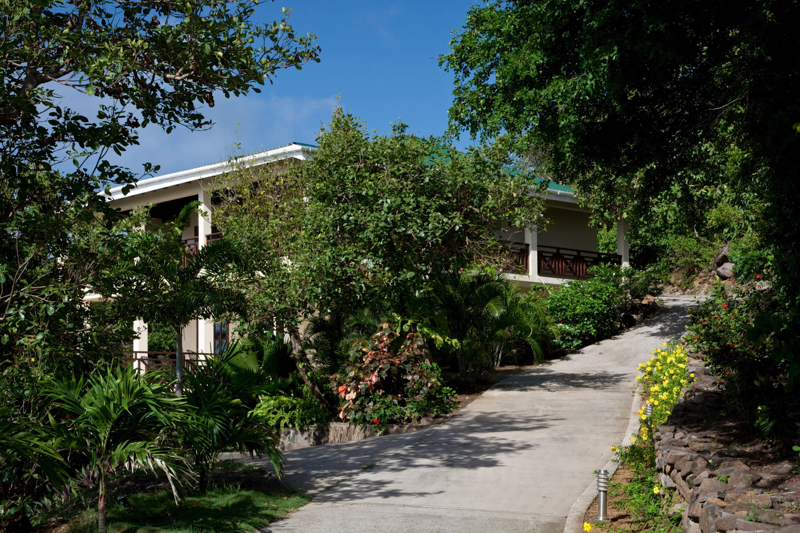 In the gardens around the residence you will find a beautiful selection of newly planted hibiscus in all imaginable colours, ixoras, alamandas, bougainvilleas, crotons, buttercups, palm trees, bananas, heliconias, strelitzias, as well as the typical frangipani tree.