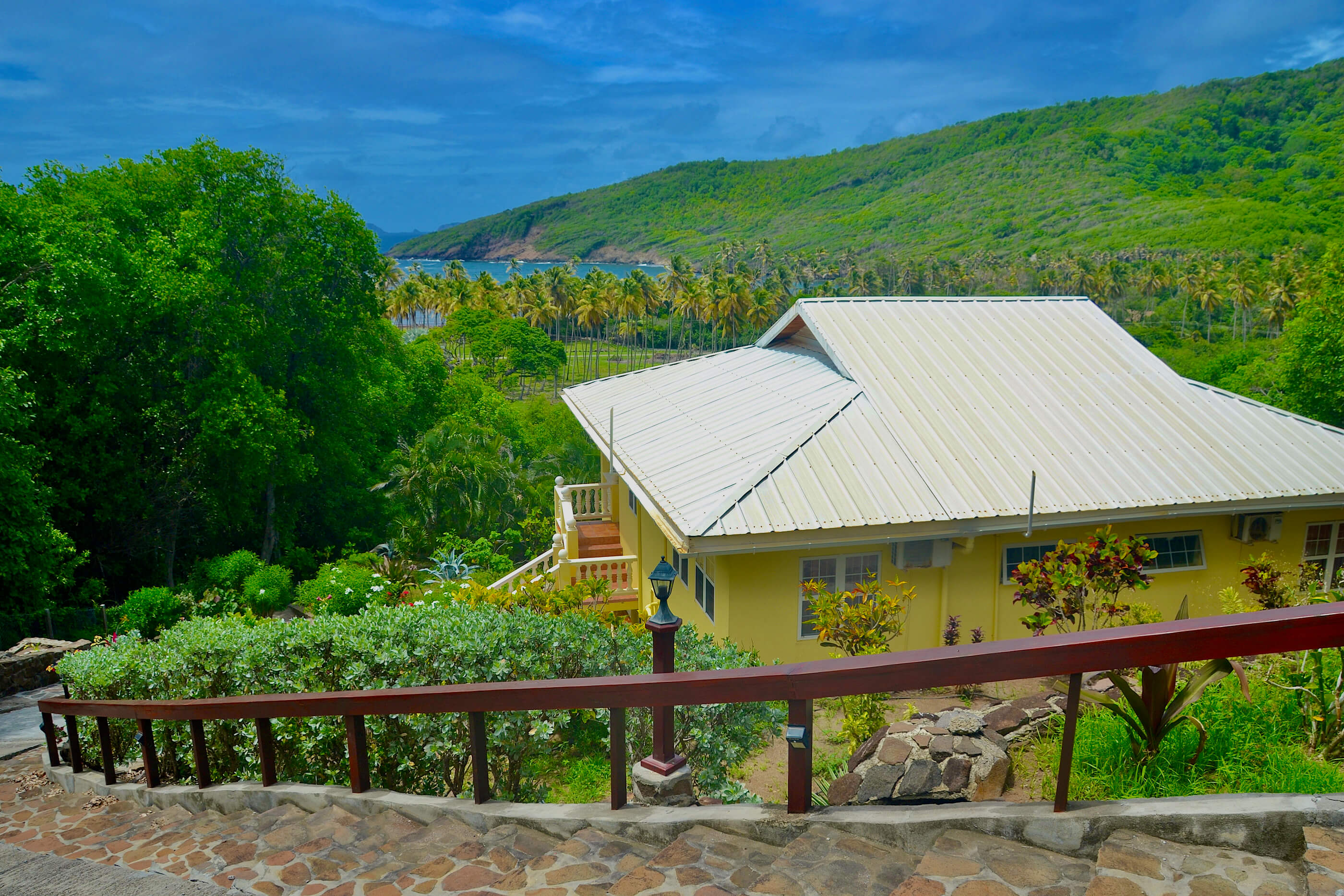 Santa Maria is charming villa, beautifully situated in the quiet private valley of Spring. The views are fantastic over the valley and coconut plantation, and you can see out to the enchanting island of Balliceaux. Due to it's location lower down in the Estate, one can easily stroll down to Spring Bay for a walk along the shore or a dip in the turquoise ocean.