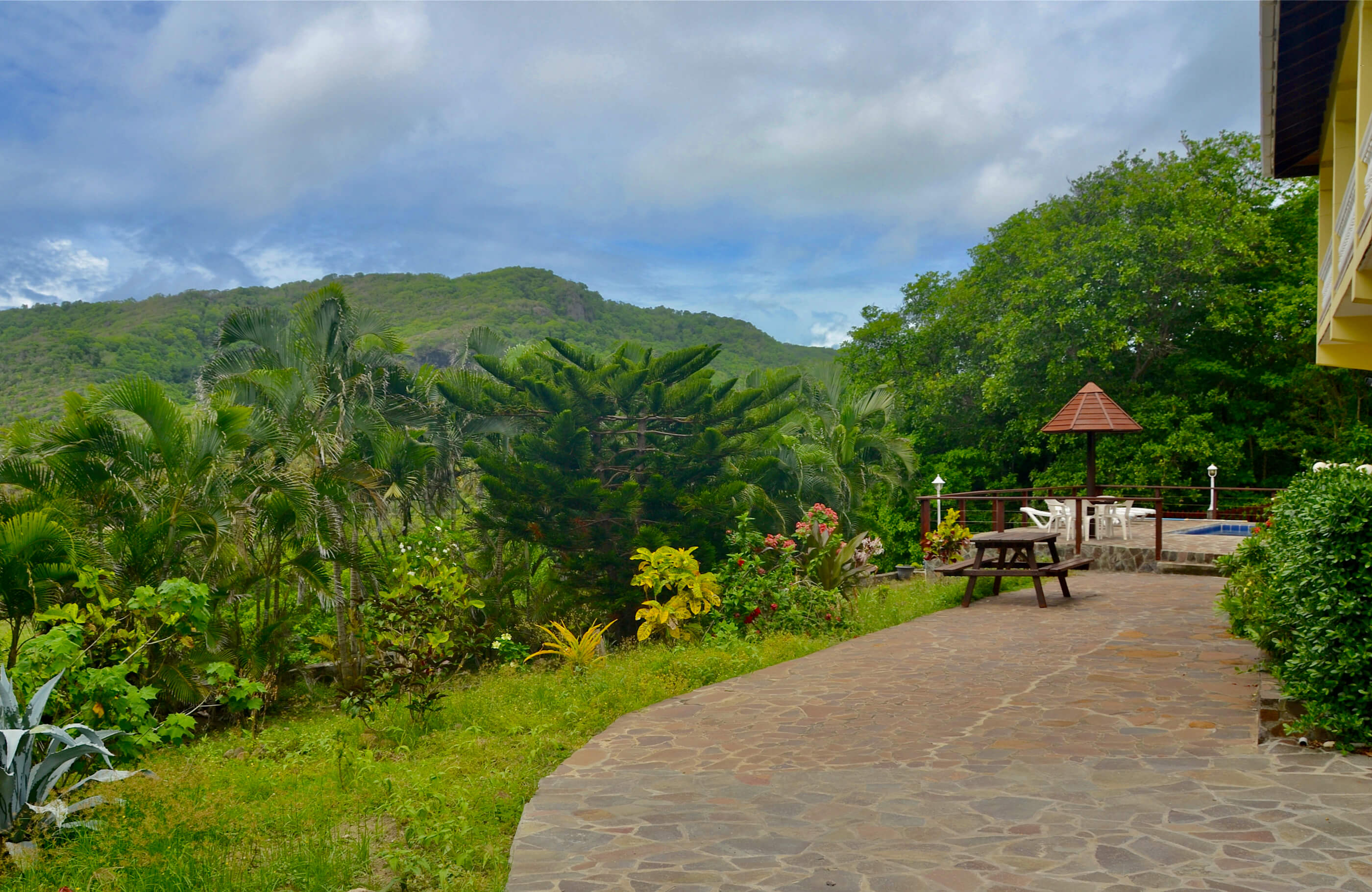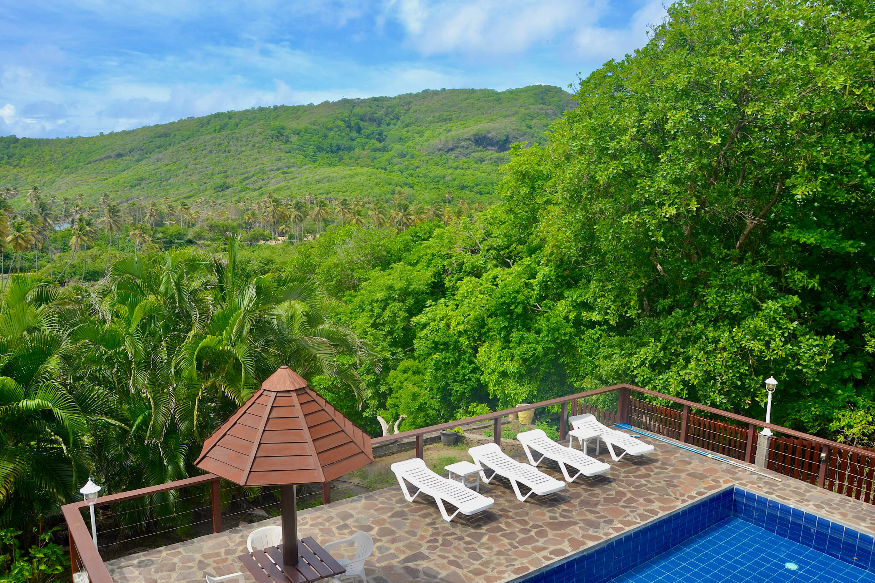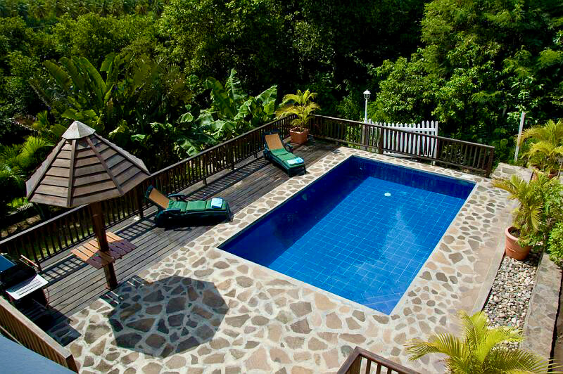 Perhaps the best attraction of Santa Maria is the wonderful natural stone pool deck area. There are sun loungers, so you can relax with a cool drink, and soak up the sunshine. There is also seating, and table space where you can enjoy a quick snack or BBQ by the pool. The views from the pool are also lovely, and from here you can really appreciate the surrounding tropical gardens.