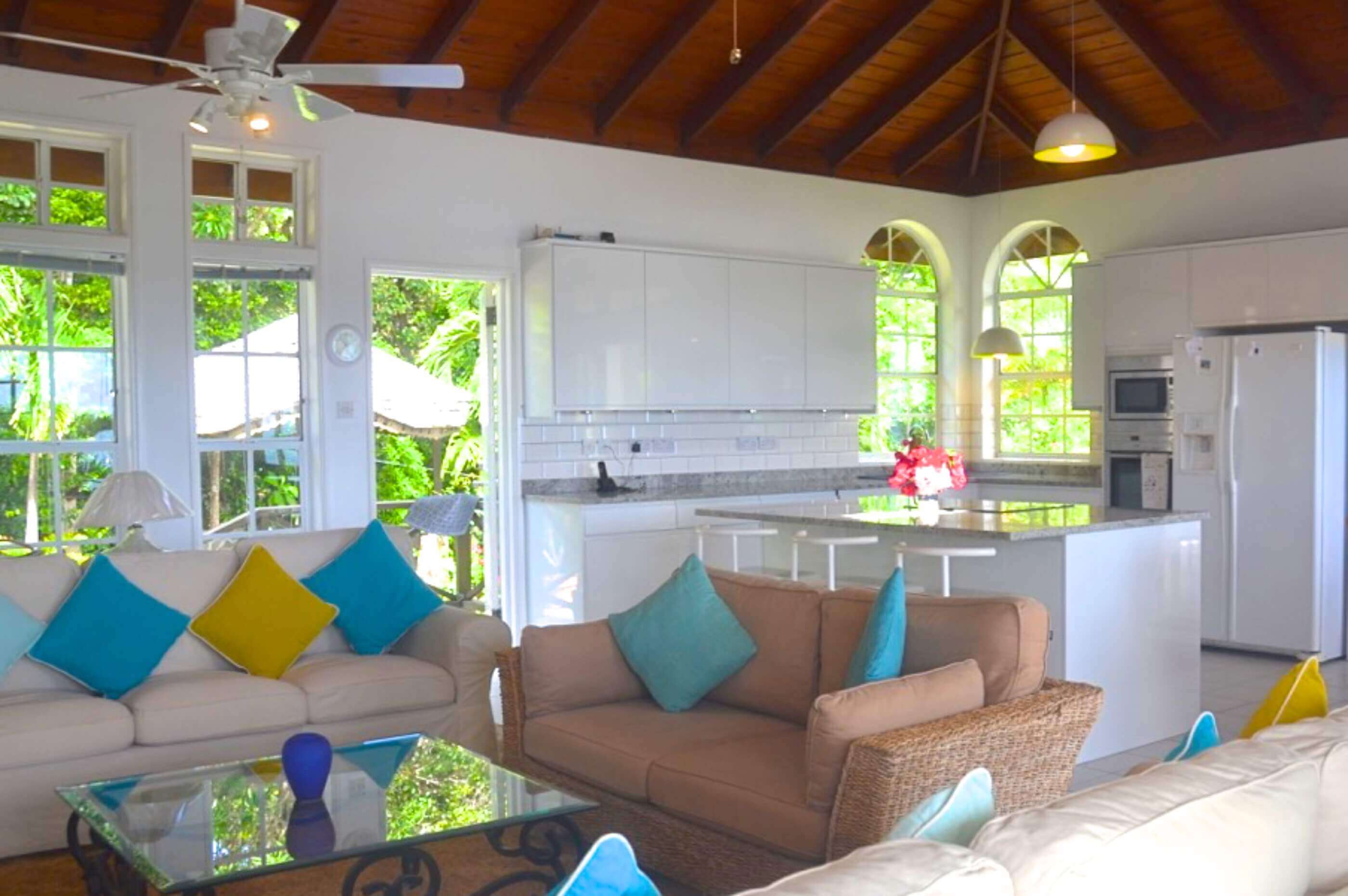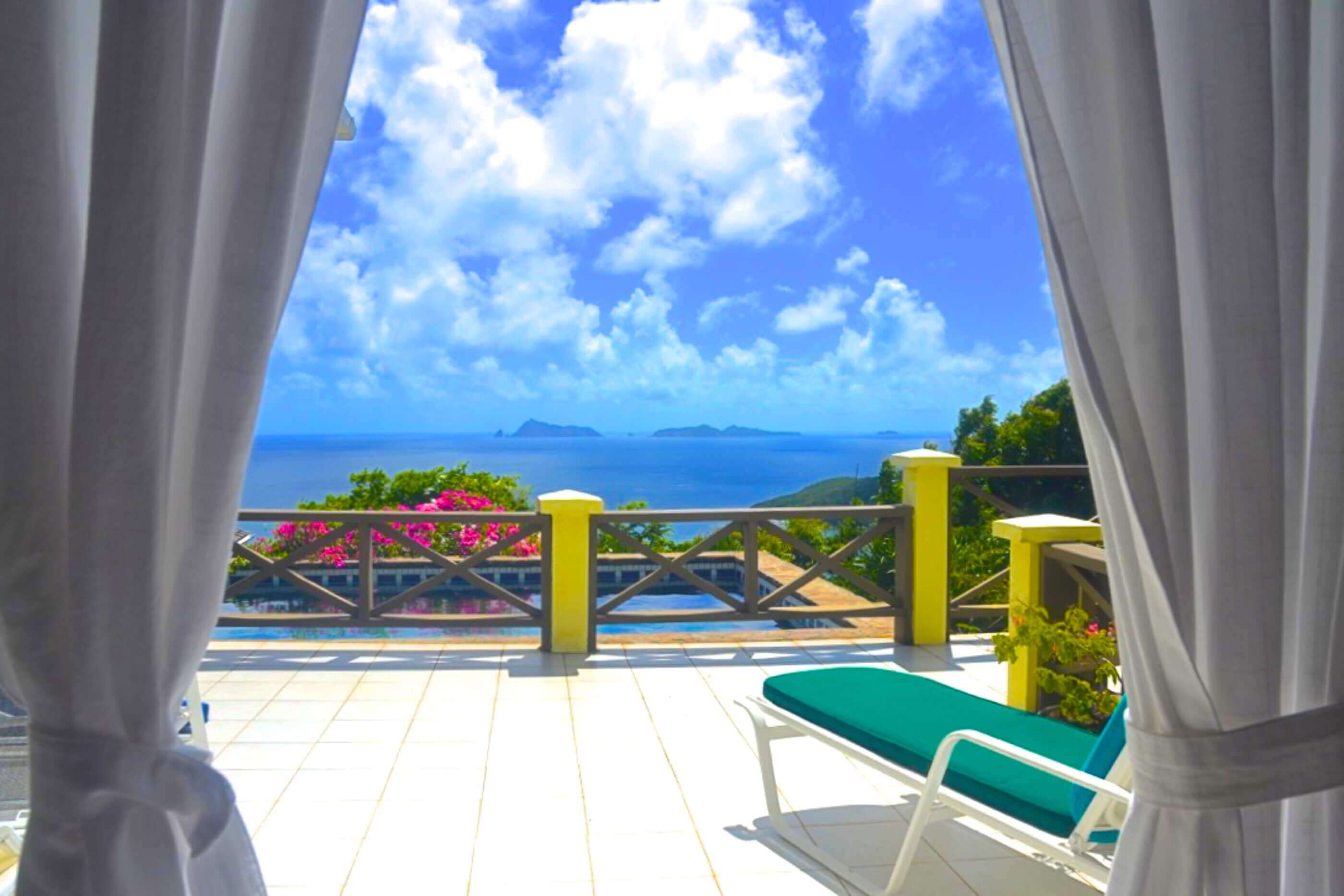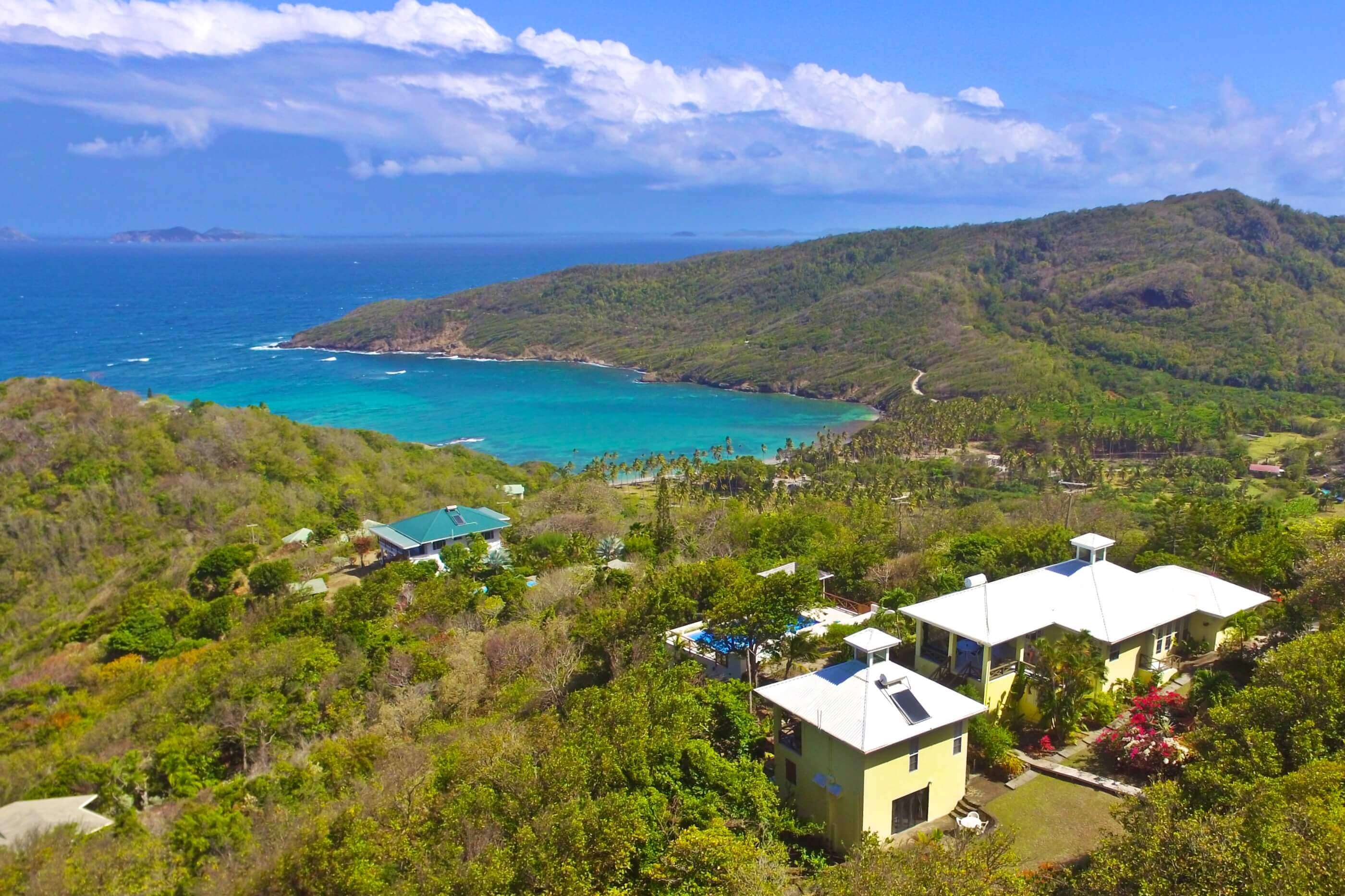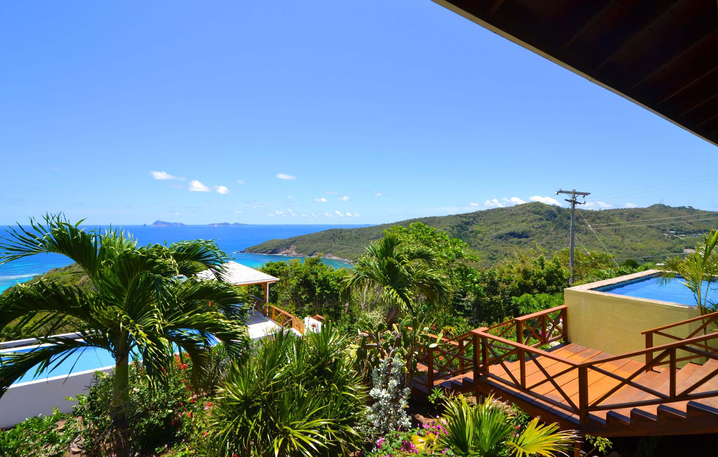 From Windsong's veranda and pool decks you have views over 2 palm fringed beaches, classic coconut plantations, Crescent Bay and excellent views of the enchanting islands of Balliceaux and Battowia.