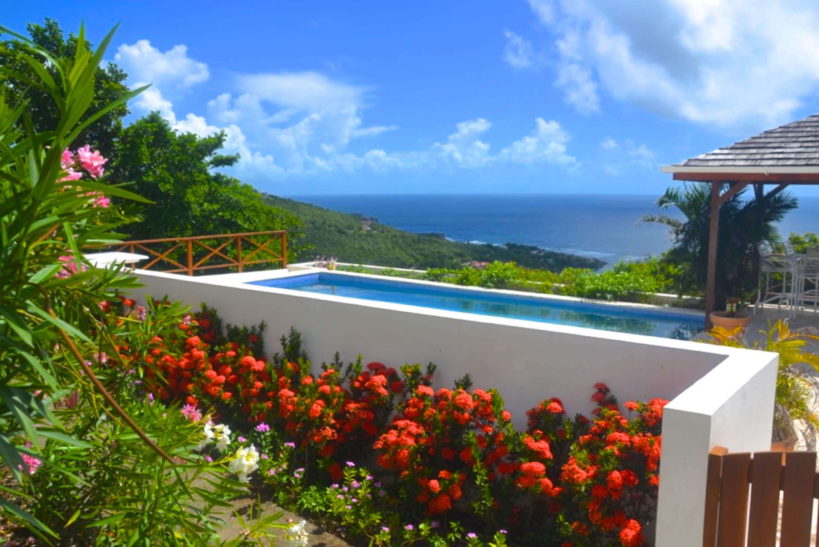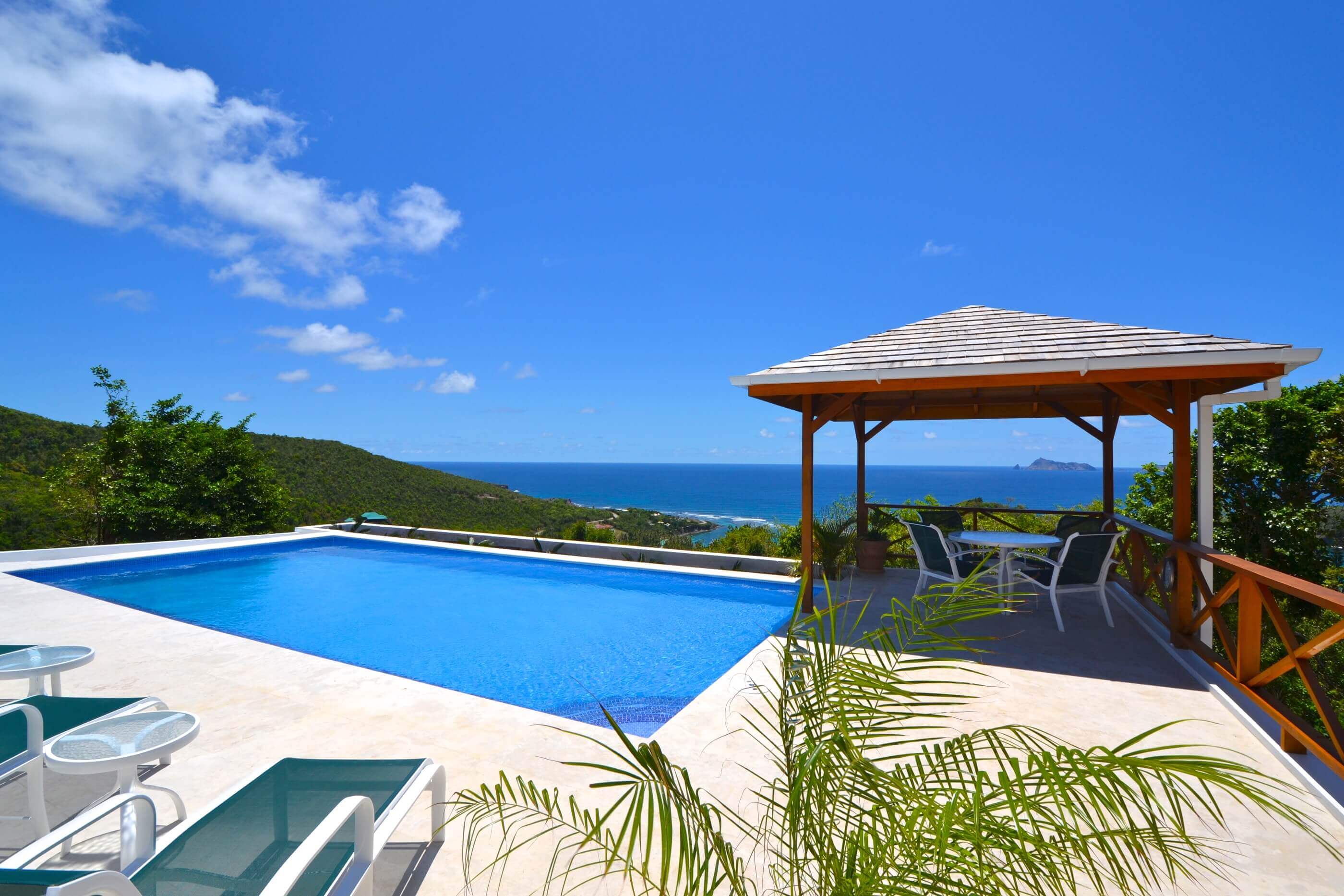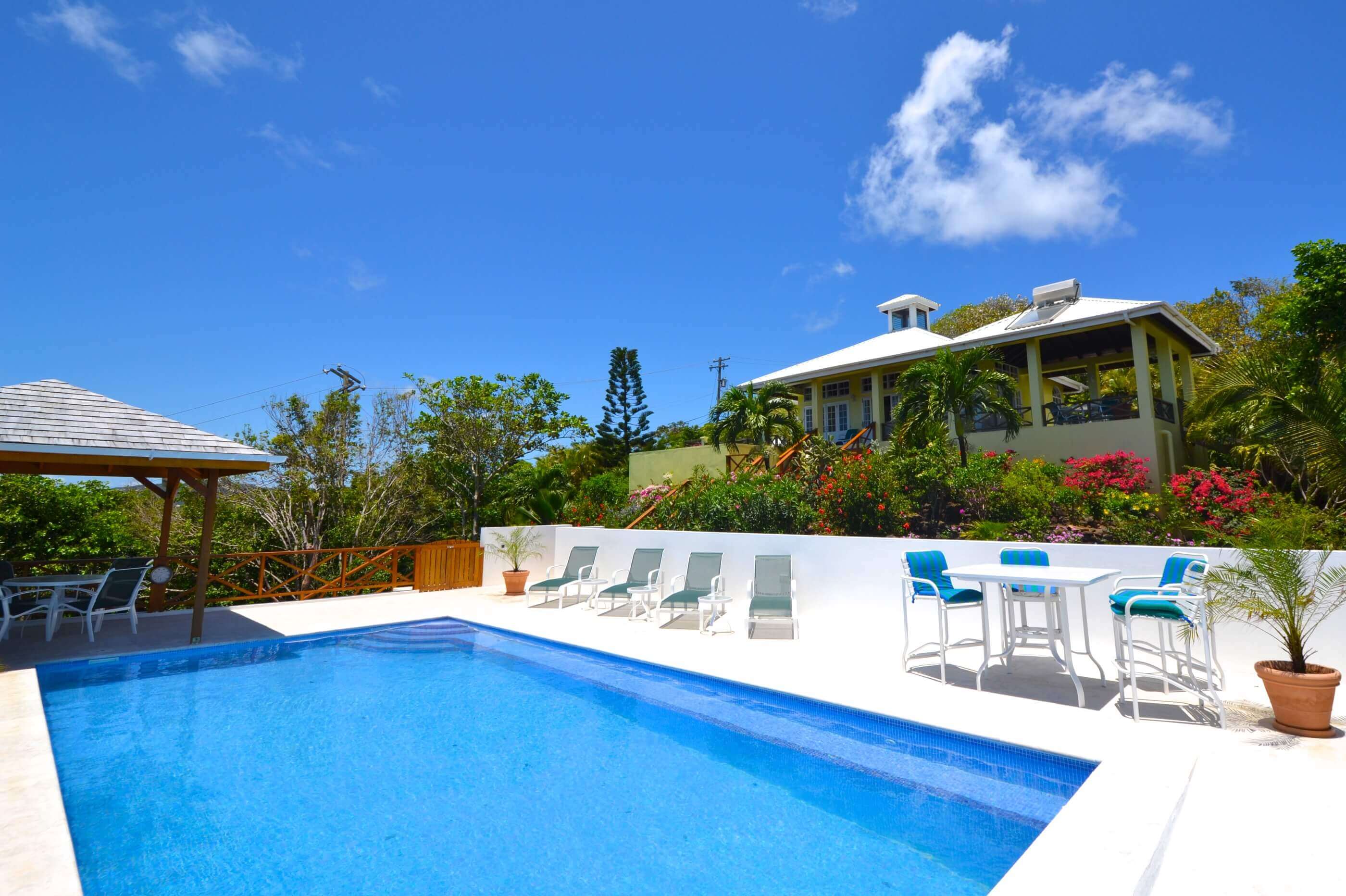 Windsong is one of the few villas on Bequia that benefits from 2 Pools. The new recently completed larger pool (approx 30x15ft) has plenty of deck area with sun loungers, lots of seating and another gazebo area with superb views. What better than to relax on one of the sun loungers with a cocktail, soaking up the glorious Bequia sunshine! Also a great place for children to enjoy whilst adults can watch from the villa at a distance...