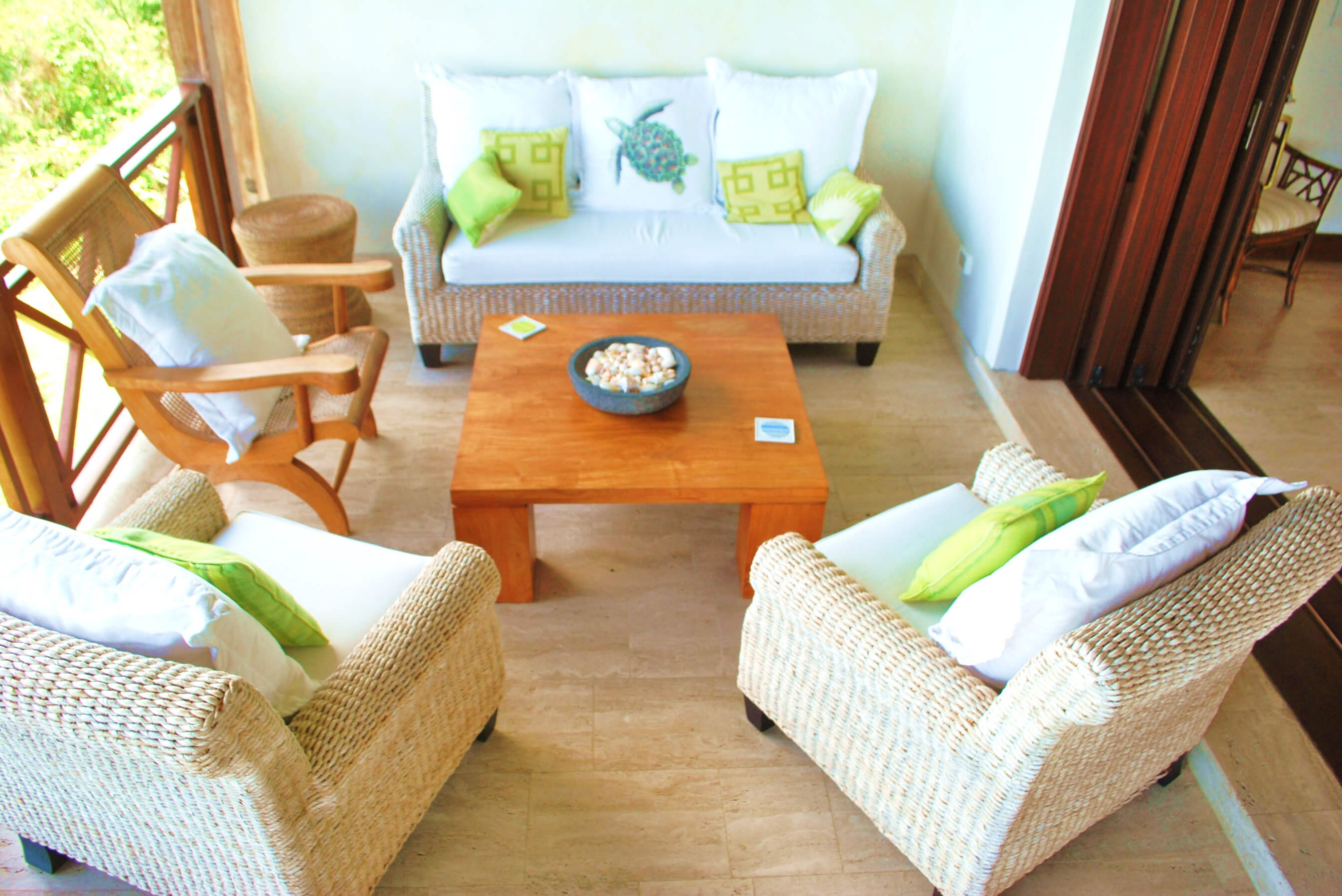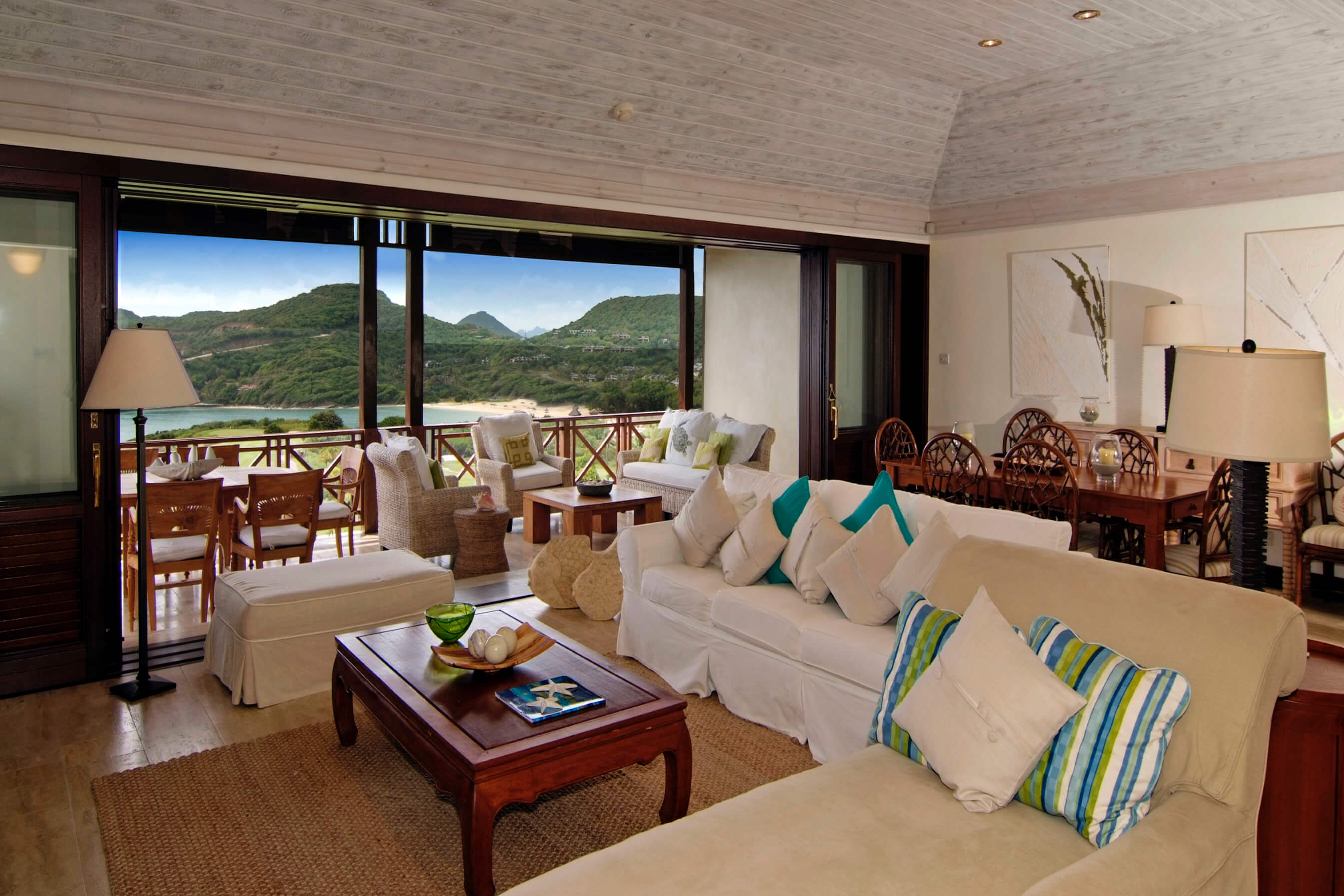 Else Where is a two-bedroom residence on two levels, decorated with traditional Caribbean-style furnishings and features a spacious living area with large folding glass sliding doors leading to the veranda.