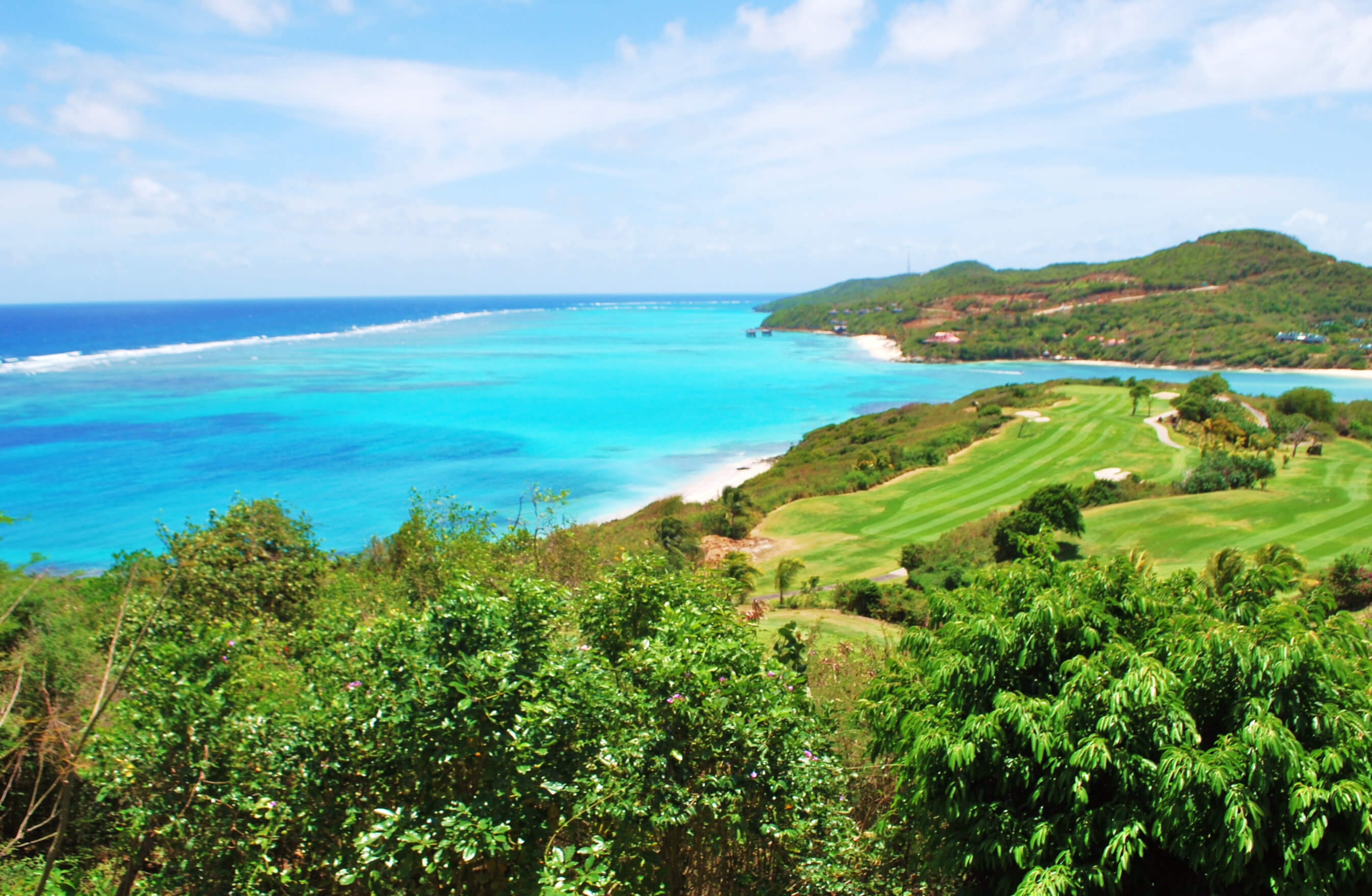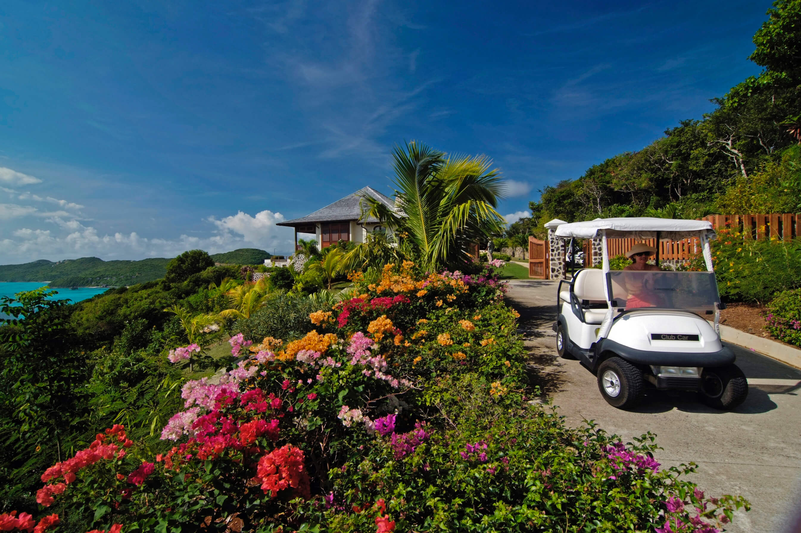 This is a beautiful coral sand bay offering an idyllic caribbean ocean view. Each villa has a golf cart type vehicle for exploring the island. Location wise guests are never far from facilities such as: