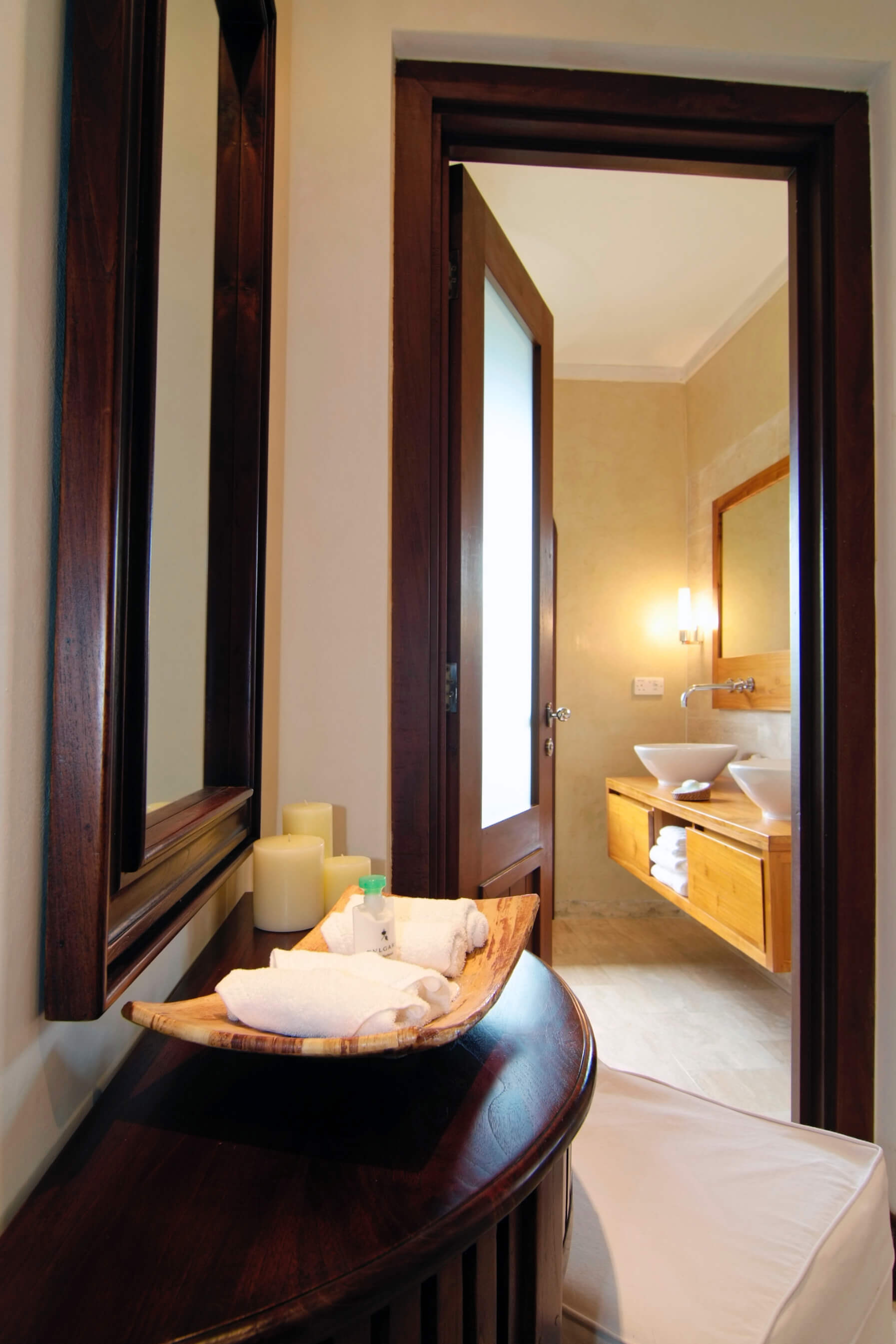 Guest Cottage (Bedroom 4 & Bedroom 5) – Is 624 Sq. ft (58 Sq. m) with a king-size bed, en-suite bathroom with shower, double vanity, air conditioning, fan, safe, telephone, private terrace, TV, wireless access, mosquito net, mini bar.