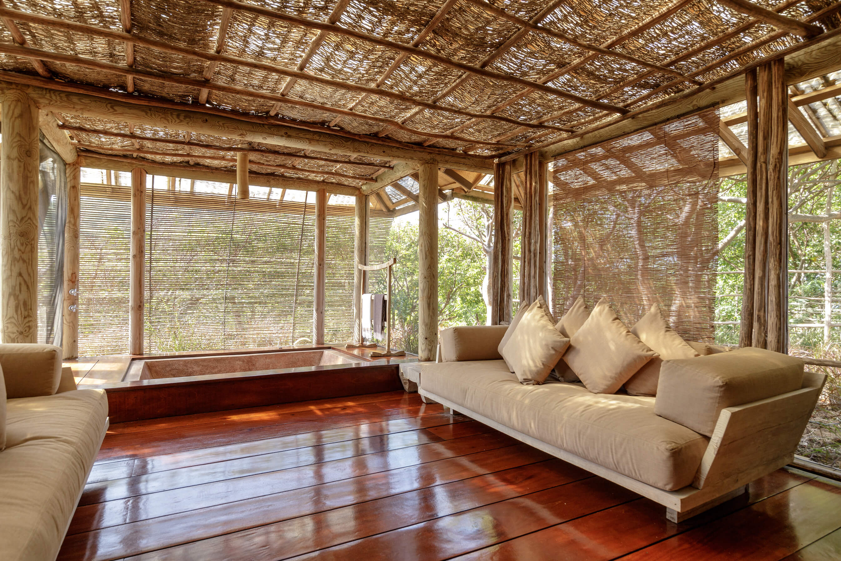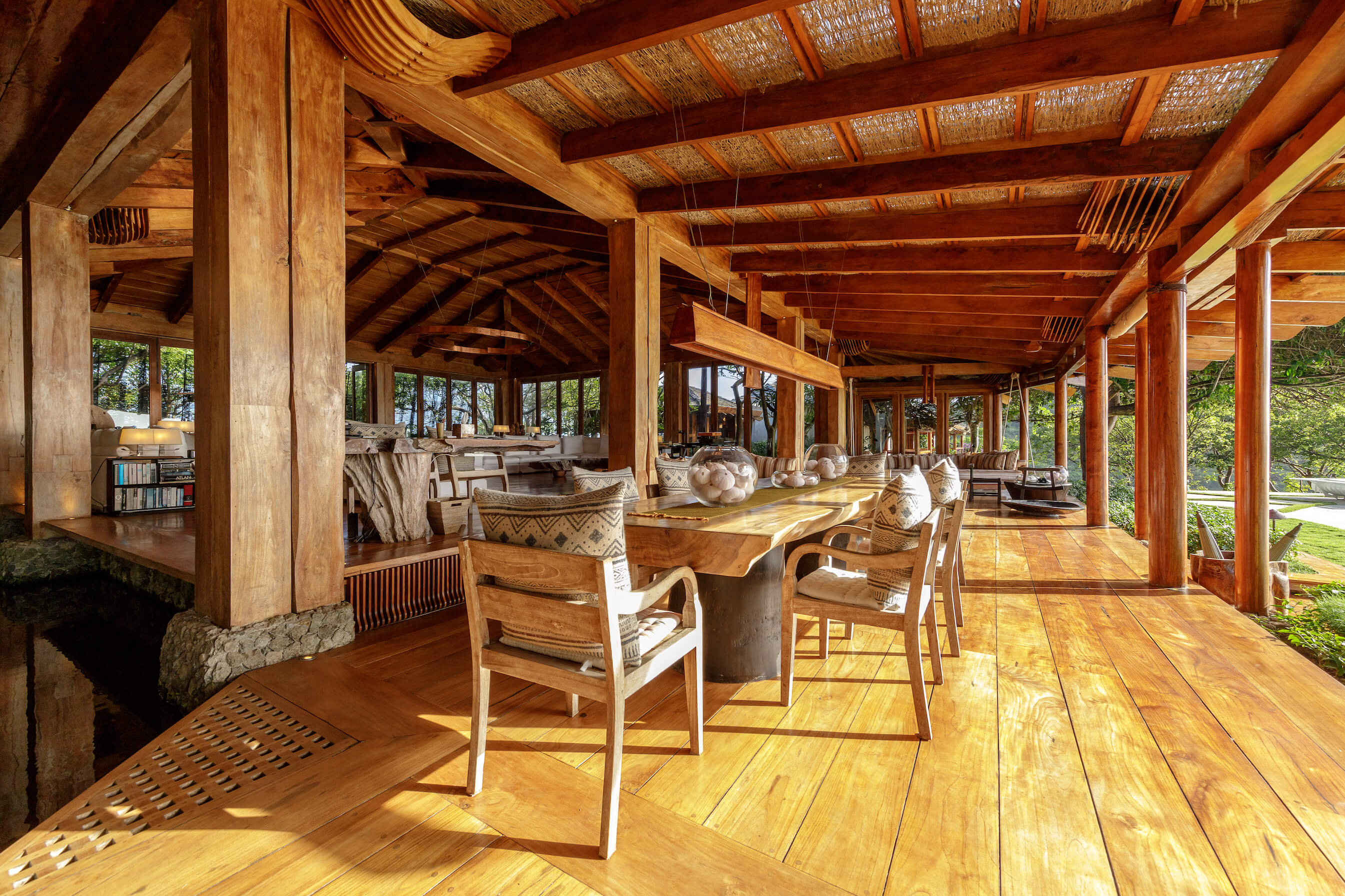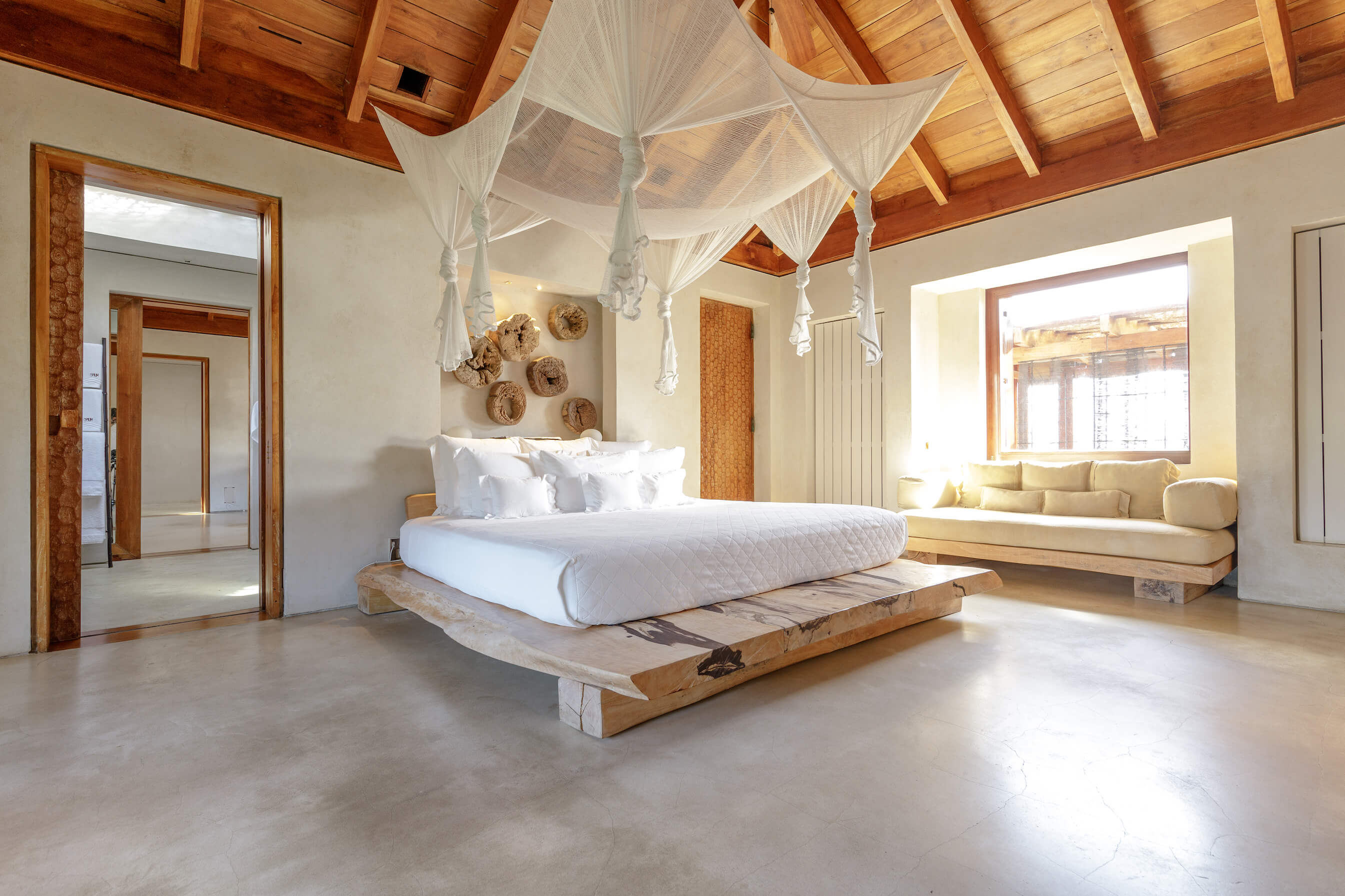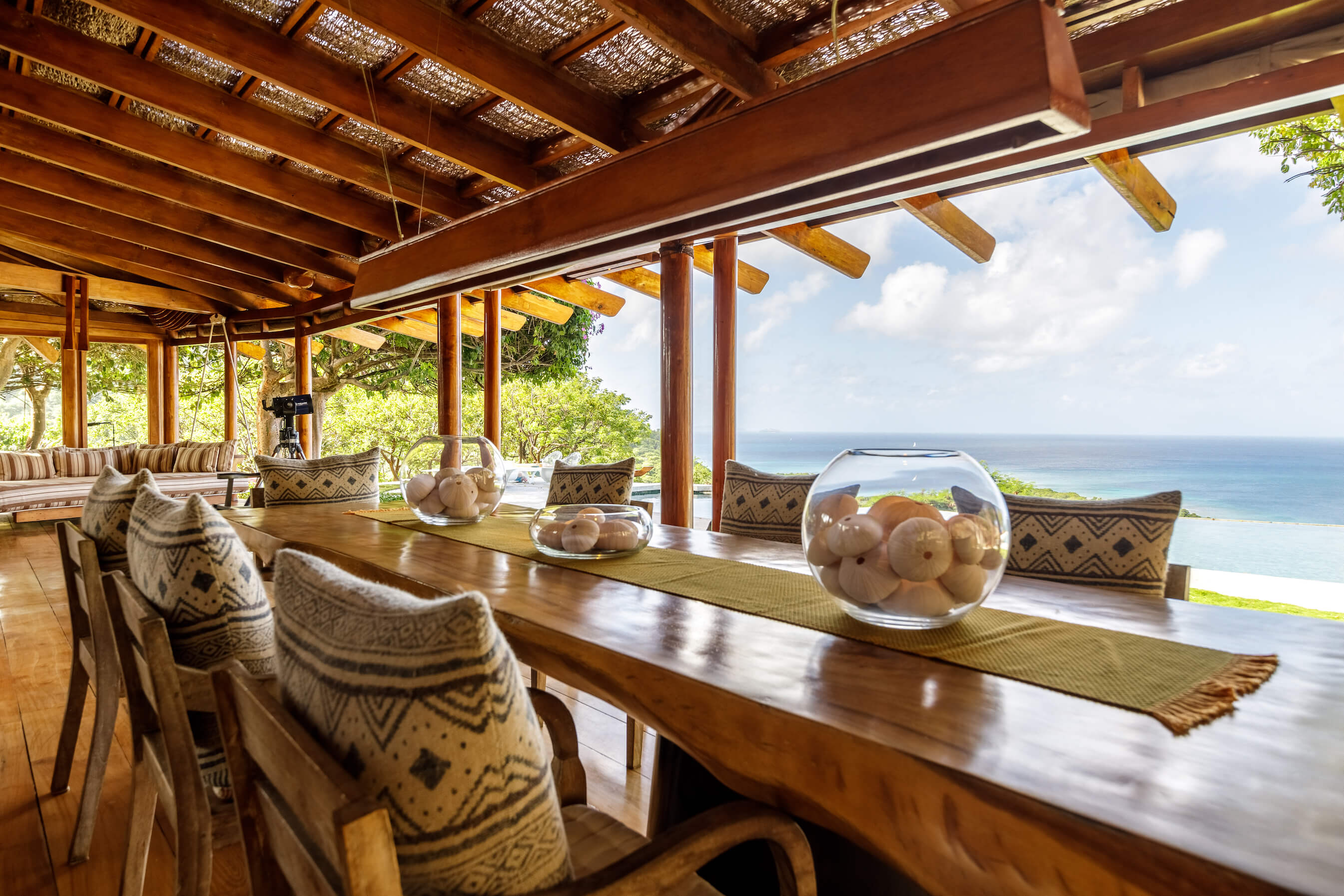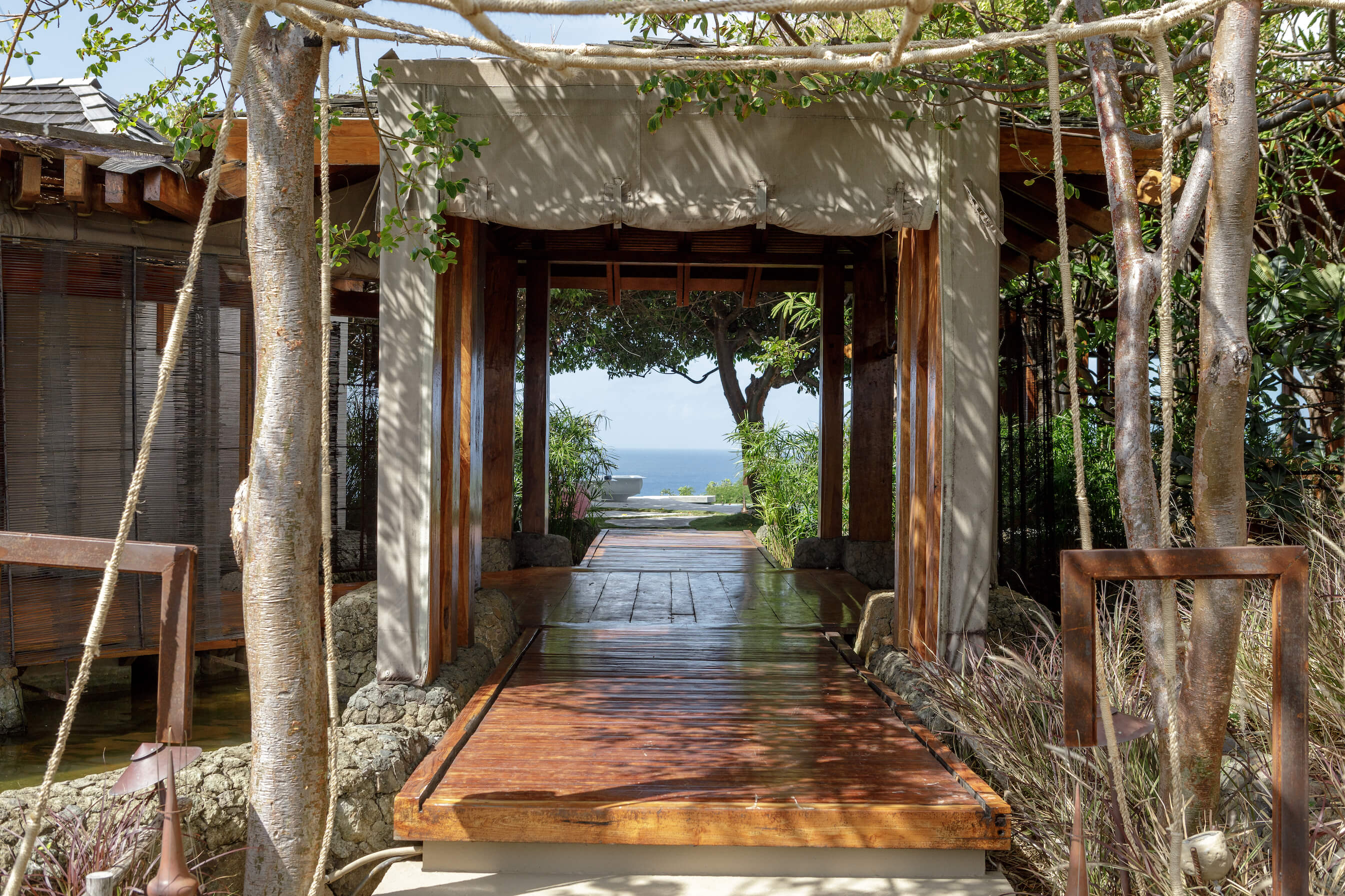 Balinese safari with African and Oriental influences adorn Opium's interior. The main living and dining areas are open-air, sophisticated yet inviting, with dazzling sea views. A pebble-tiled swimming pool is adjacent to informal tented, dining and relaxing areas.