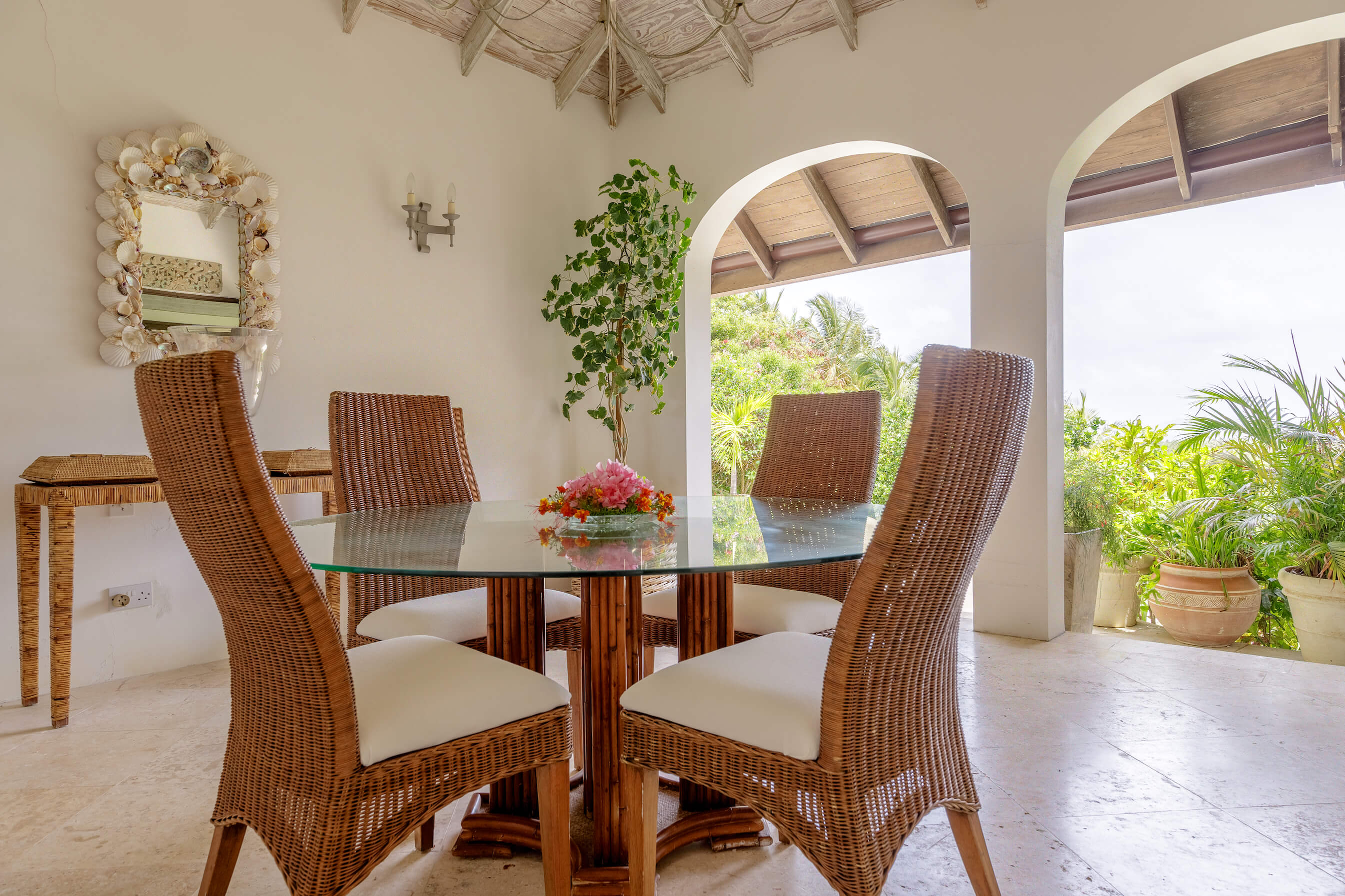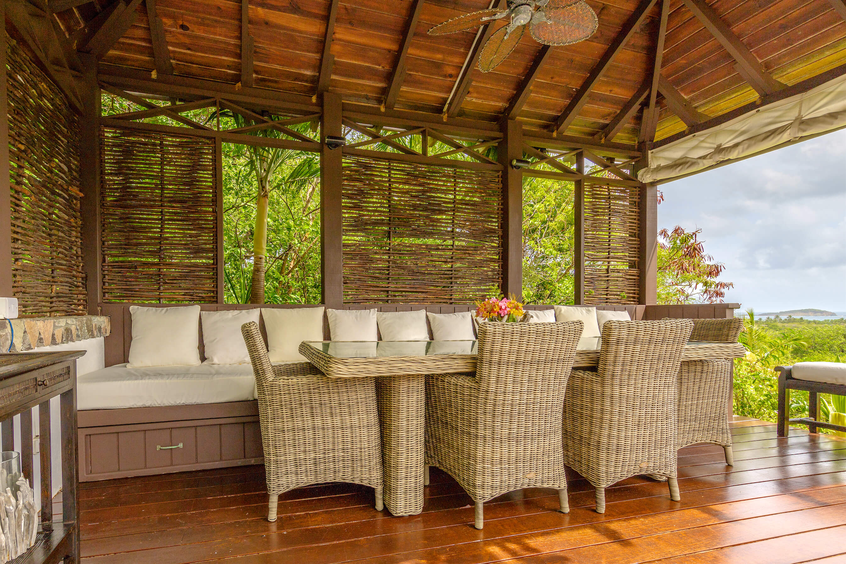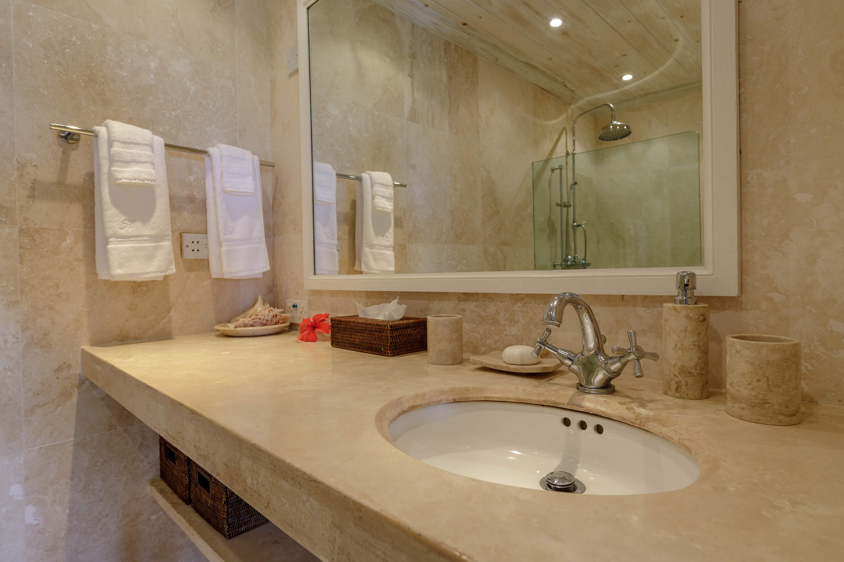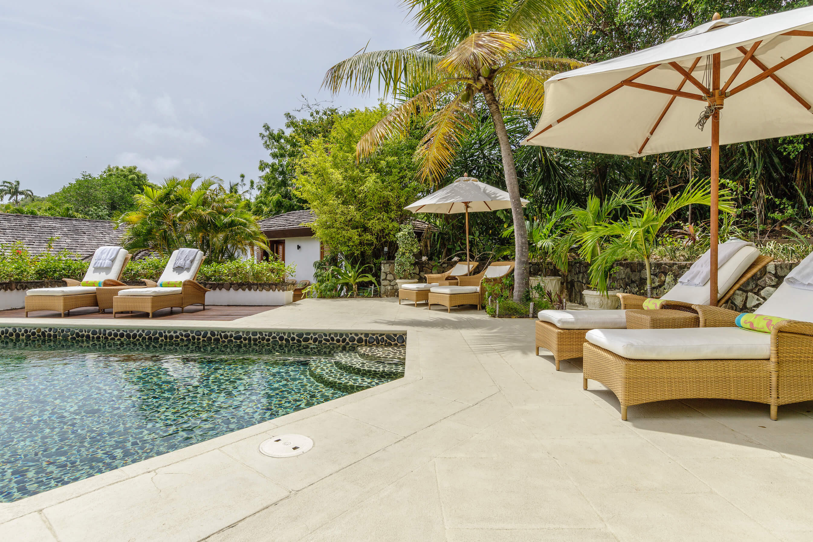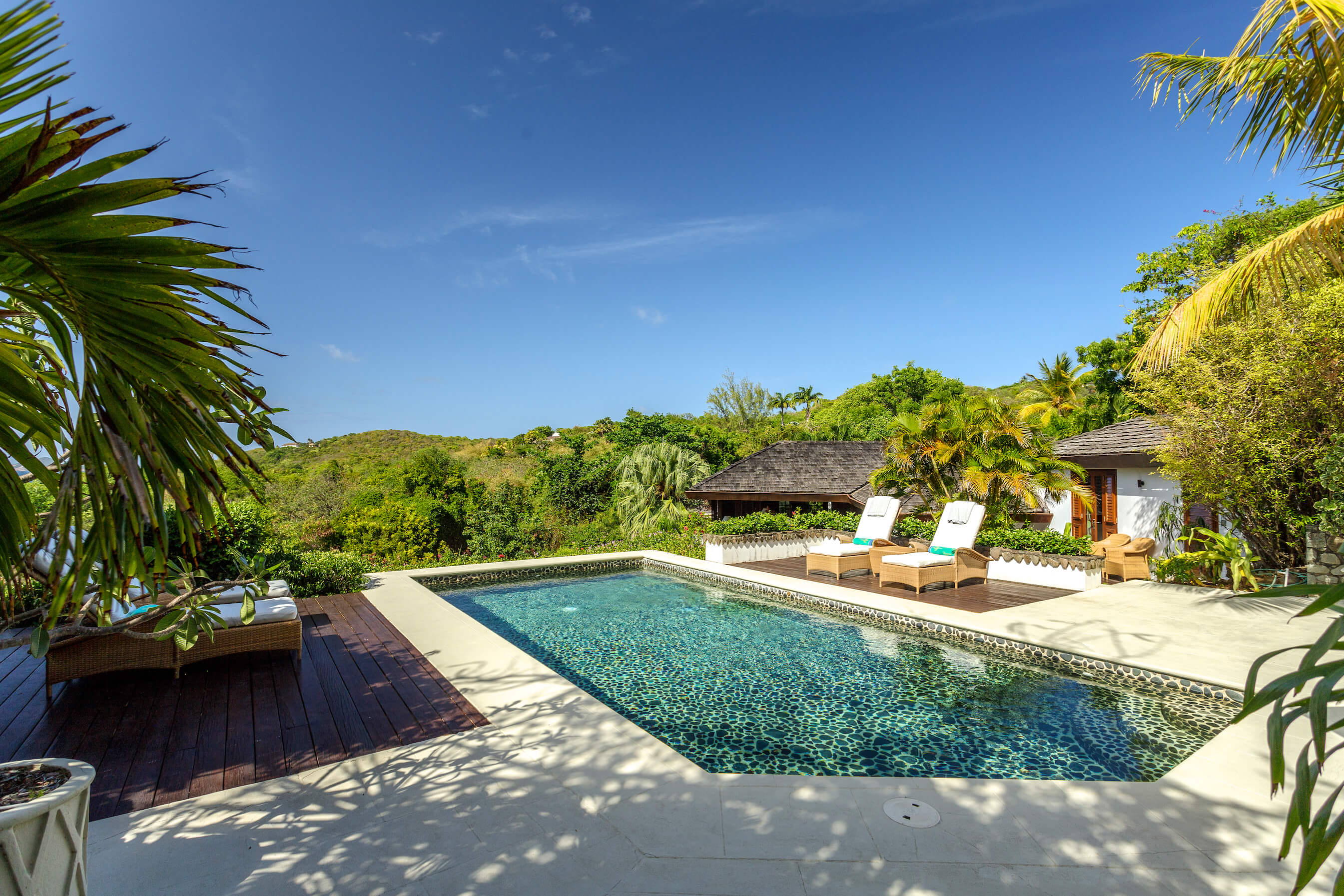 The freshwater stone lined pool is 29' long with sun loungers and a dining gazebo, outdoor showers finished in the same curvaceous pebbles that line the pool. The pool area overlooks the tropical gardens and Caribbean sea beyond - the perfect place to relax or enjoy a meal.