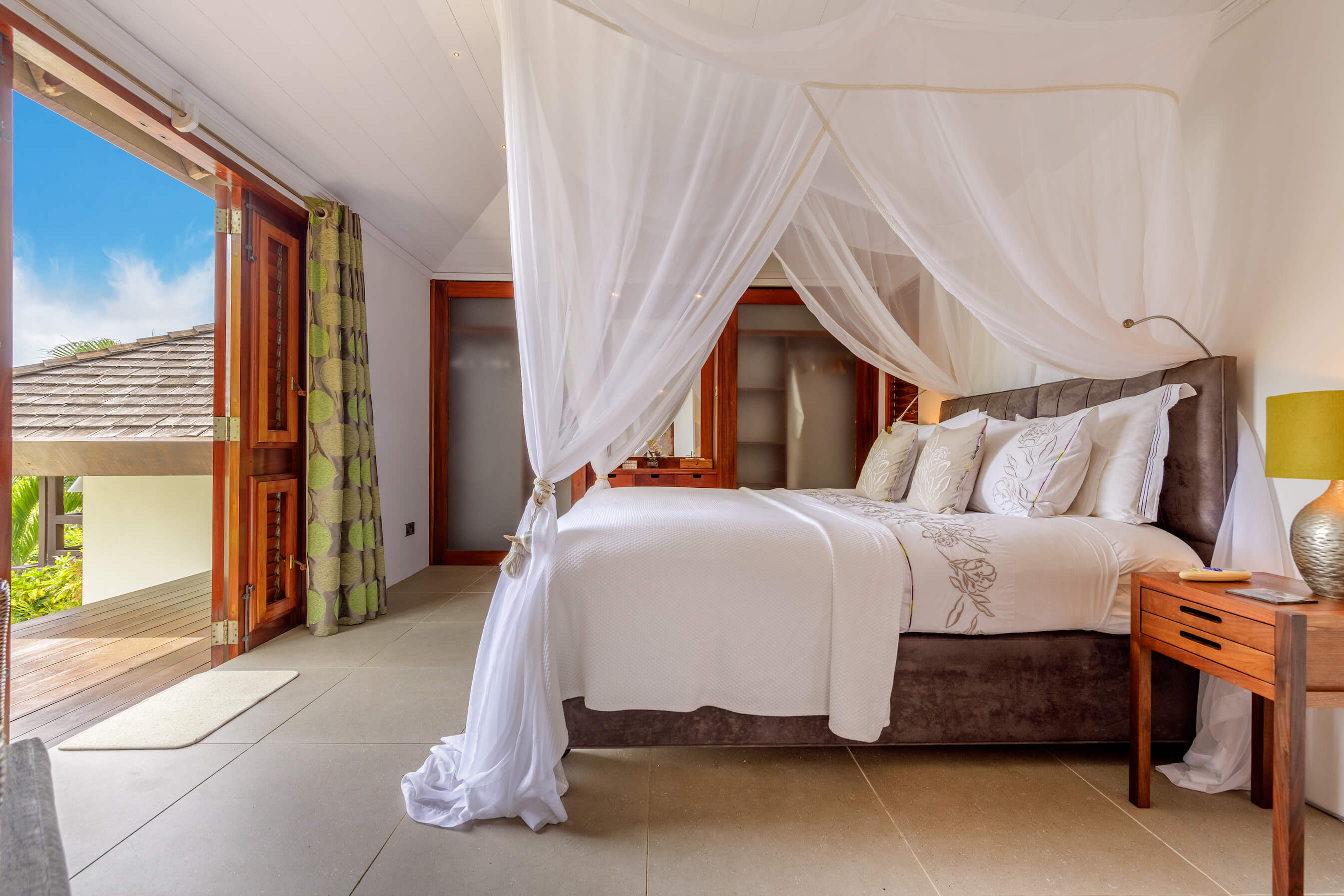 3 bedrooms, 2 twin rooms and a King Size master bedroom all feature modern, sleek, spa style bathrooms, have air conditioning, louvered windows and mosquito nets over the beds.