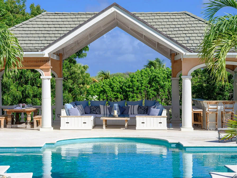 The swimming pool and delightful tropical gardens are well worth a mention here - with beautful garden water feature and lovely dining gazebo - an heavenily place to relax and unwind forgetting the day to day stresses of life. The villa is centered around the beautiful azure pool and gazebo with views accross the island.