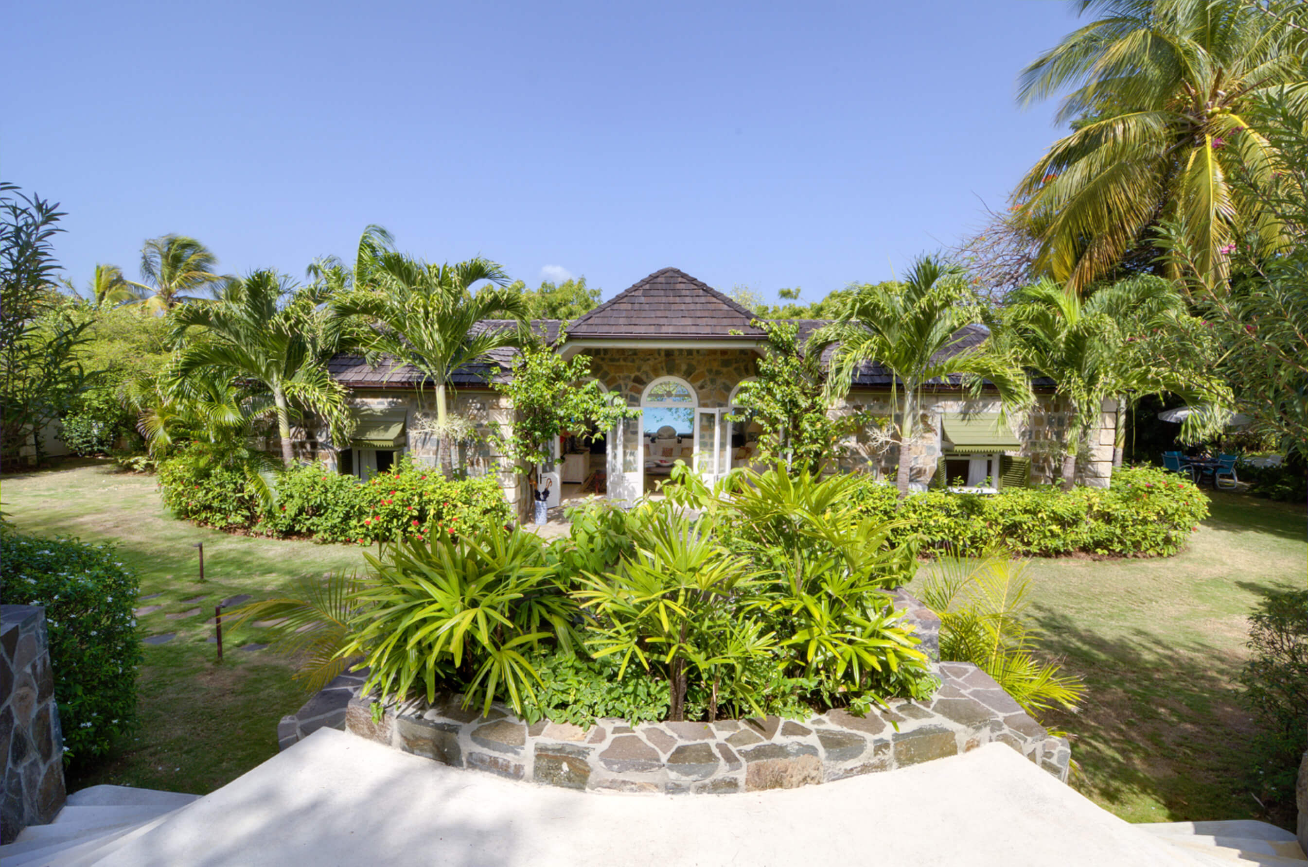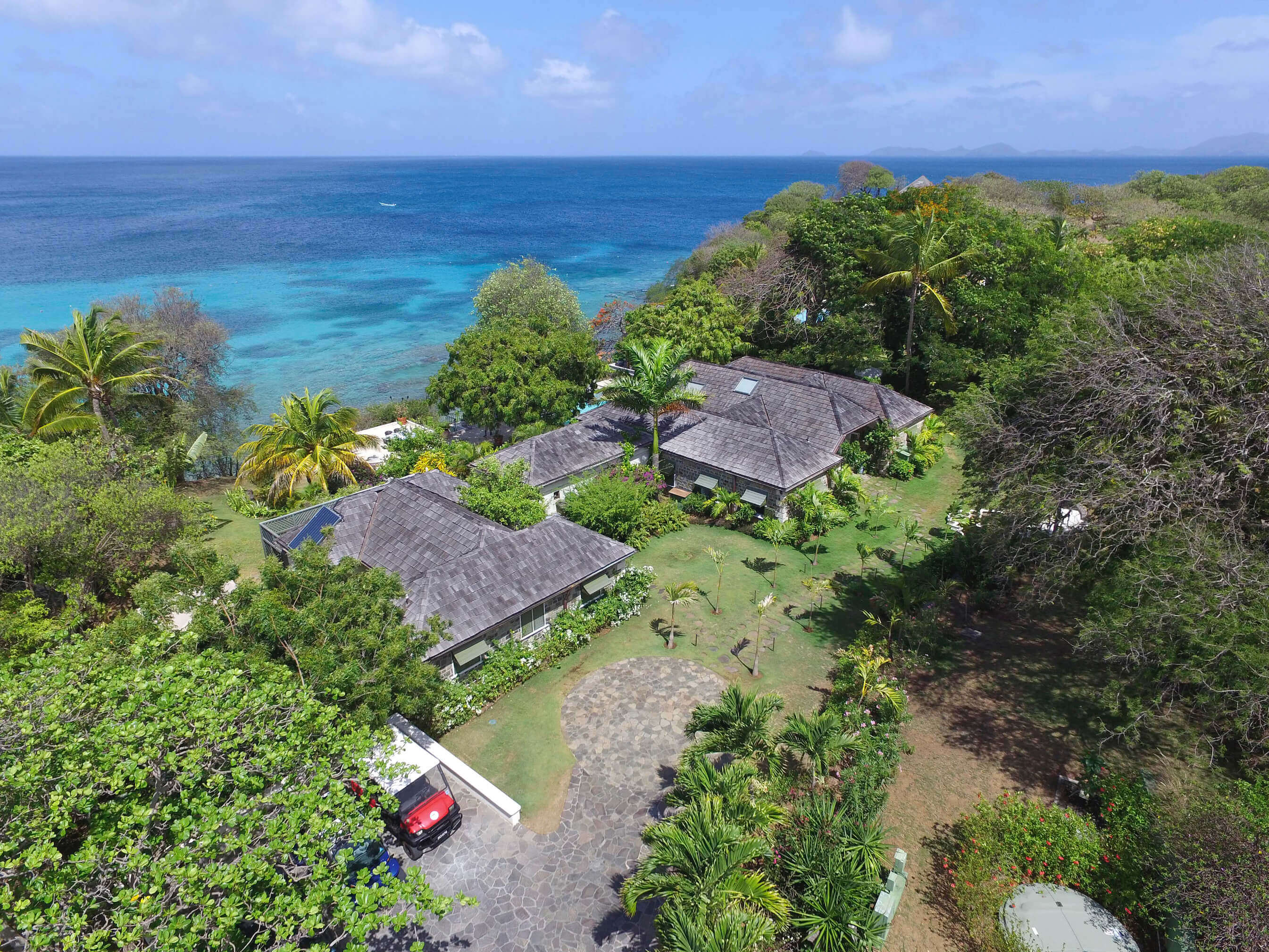 The Isle of Mustique is privately owned and it's constant warm climate and unspoilt landscape makes it unique and extremely desirable. Discreetly maintained by The Mustique Company a maximum of 100 residential properties may exist although there are currently only around 90 in existence. Of the few roads on the island, little signage exists and all the telephone and power cables are underground. In essence Mustique has been developed in reverse, the properties are sophisticated whilst the landscape is unspoilt and serene.
