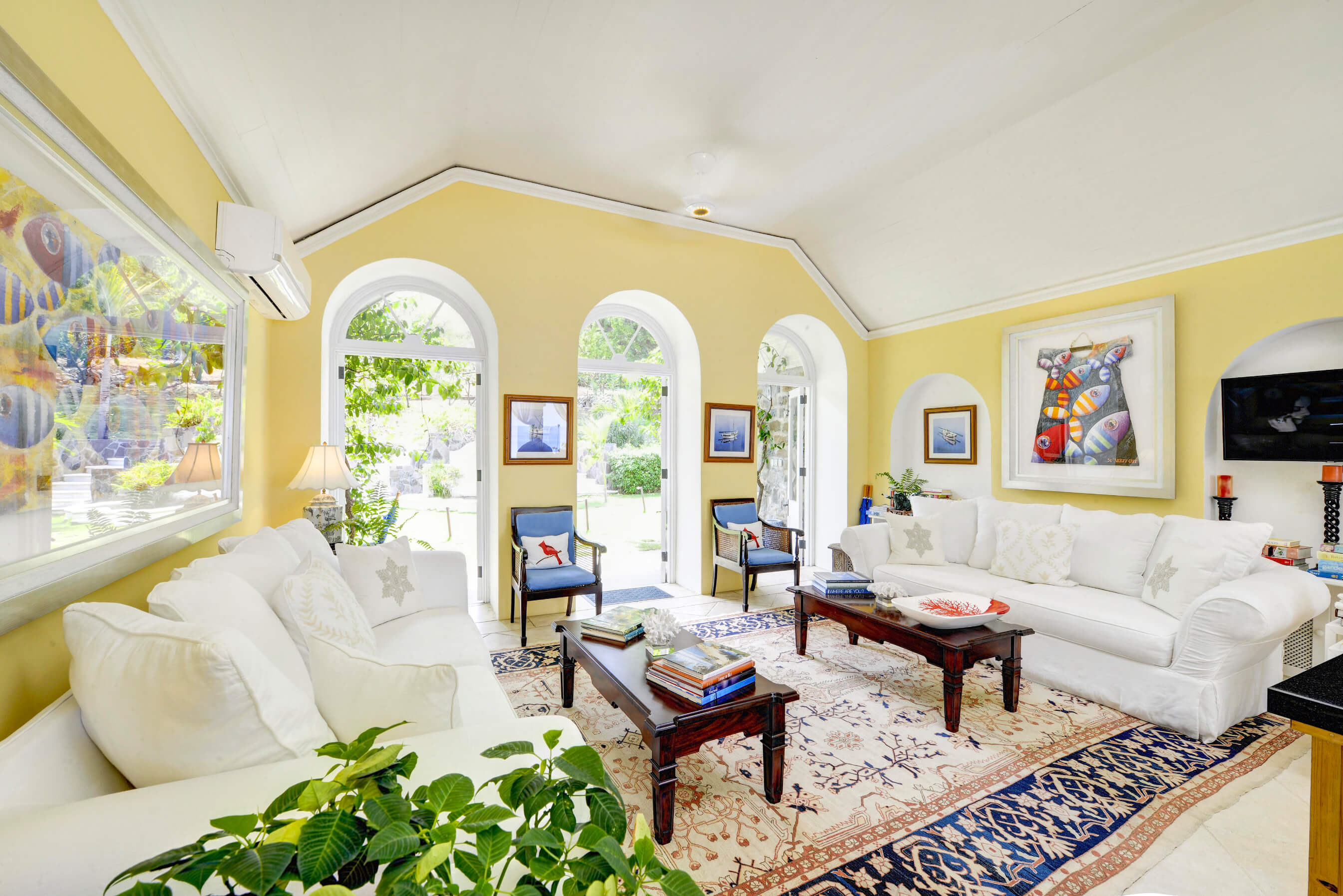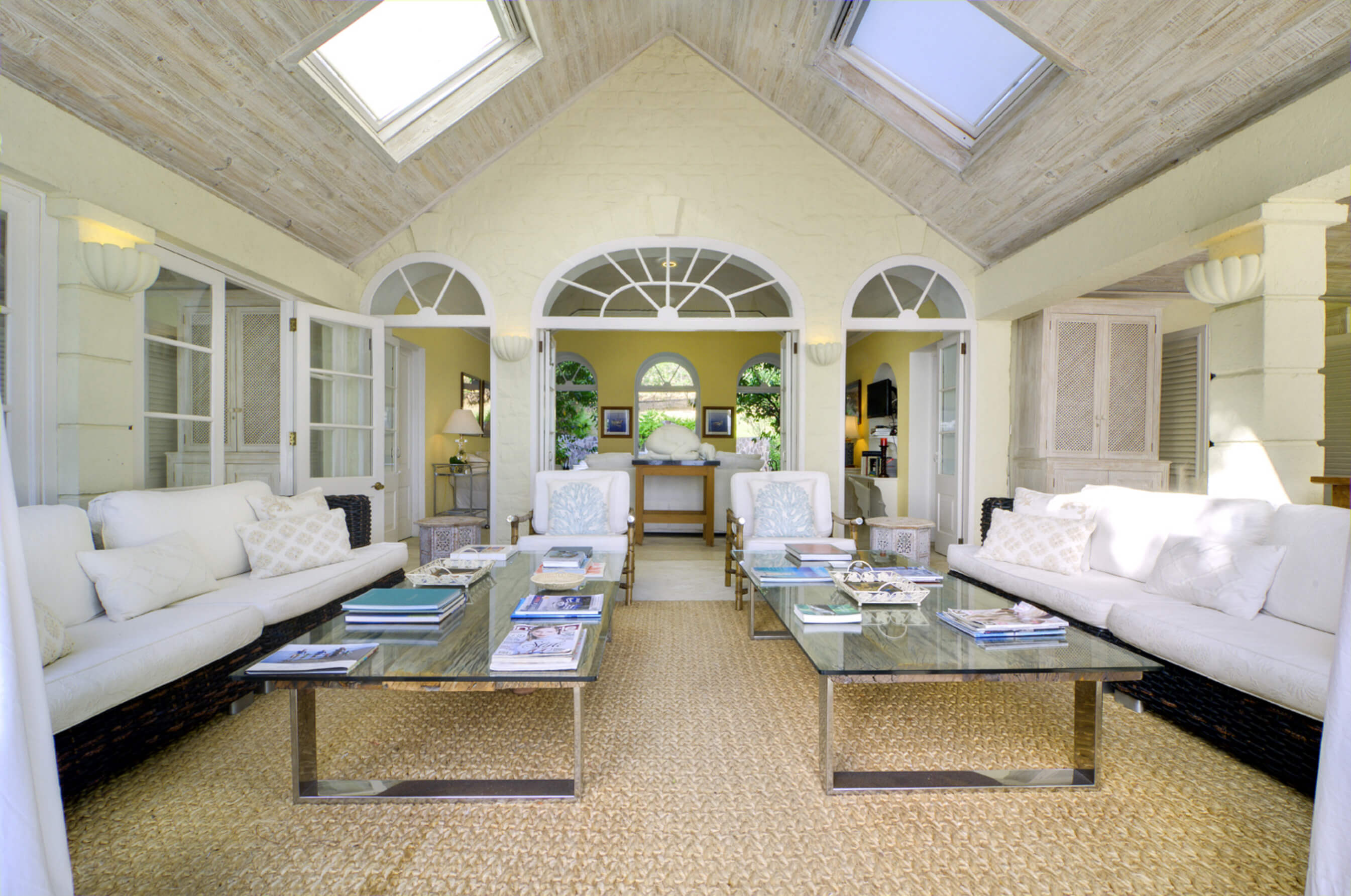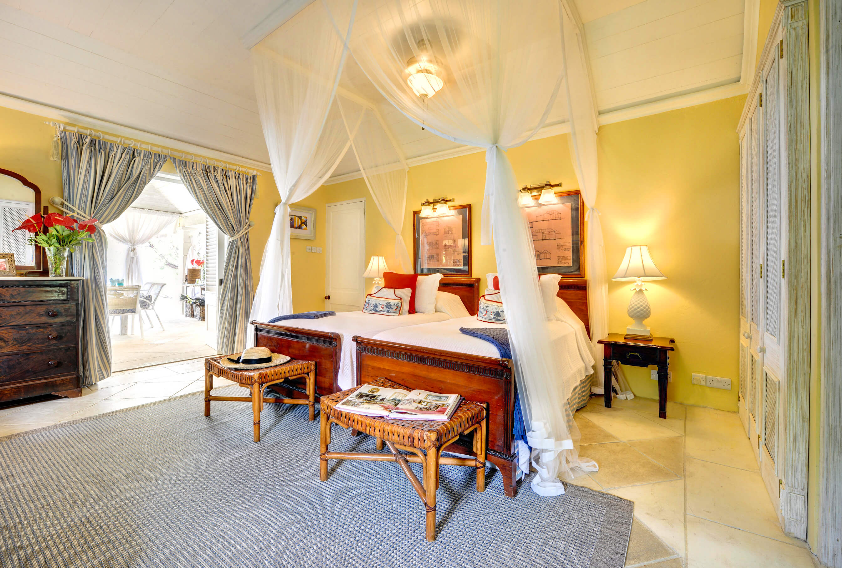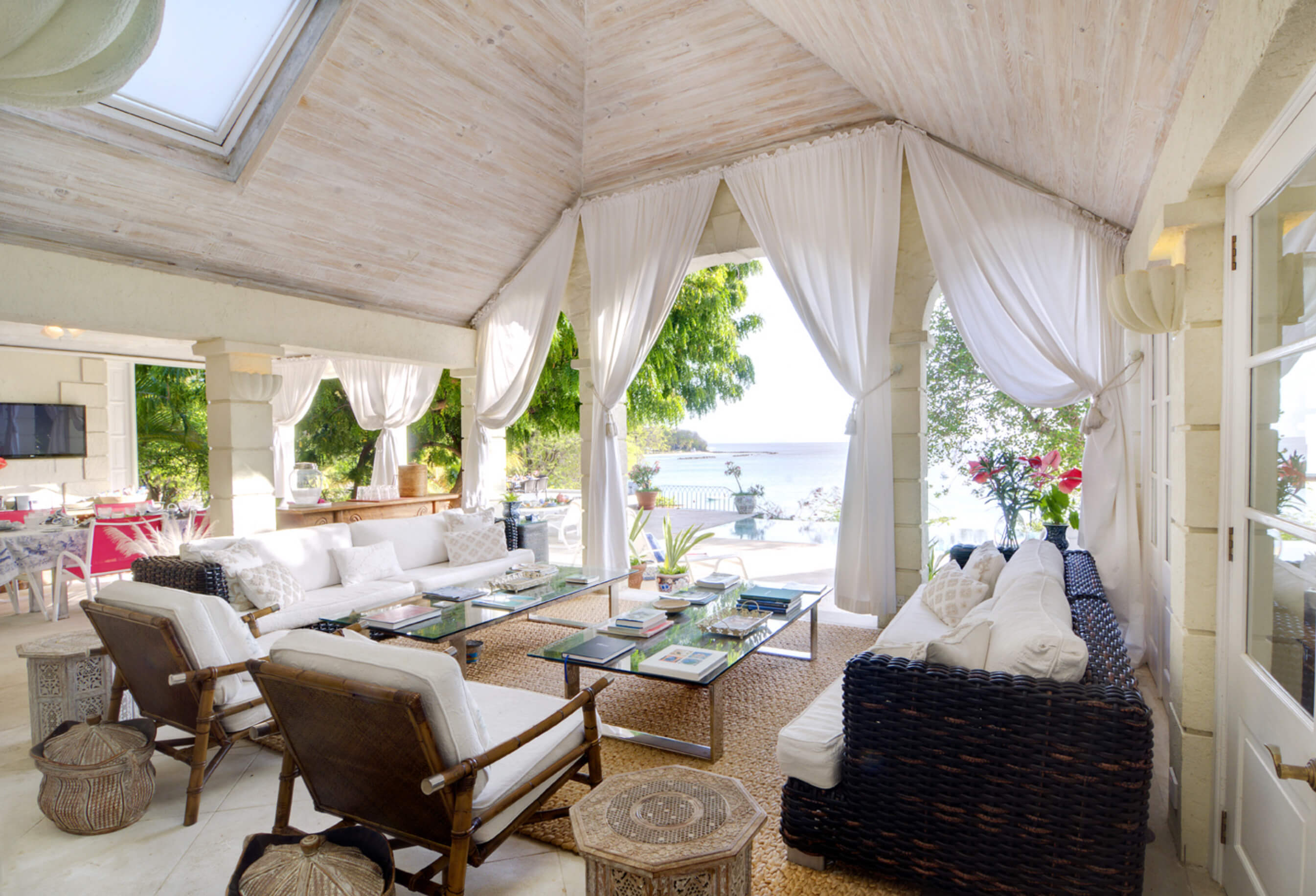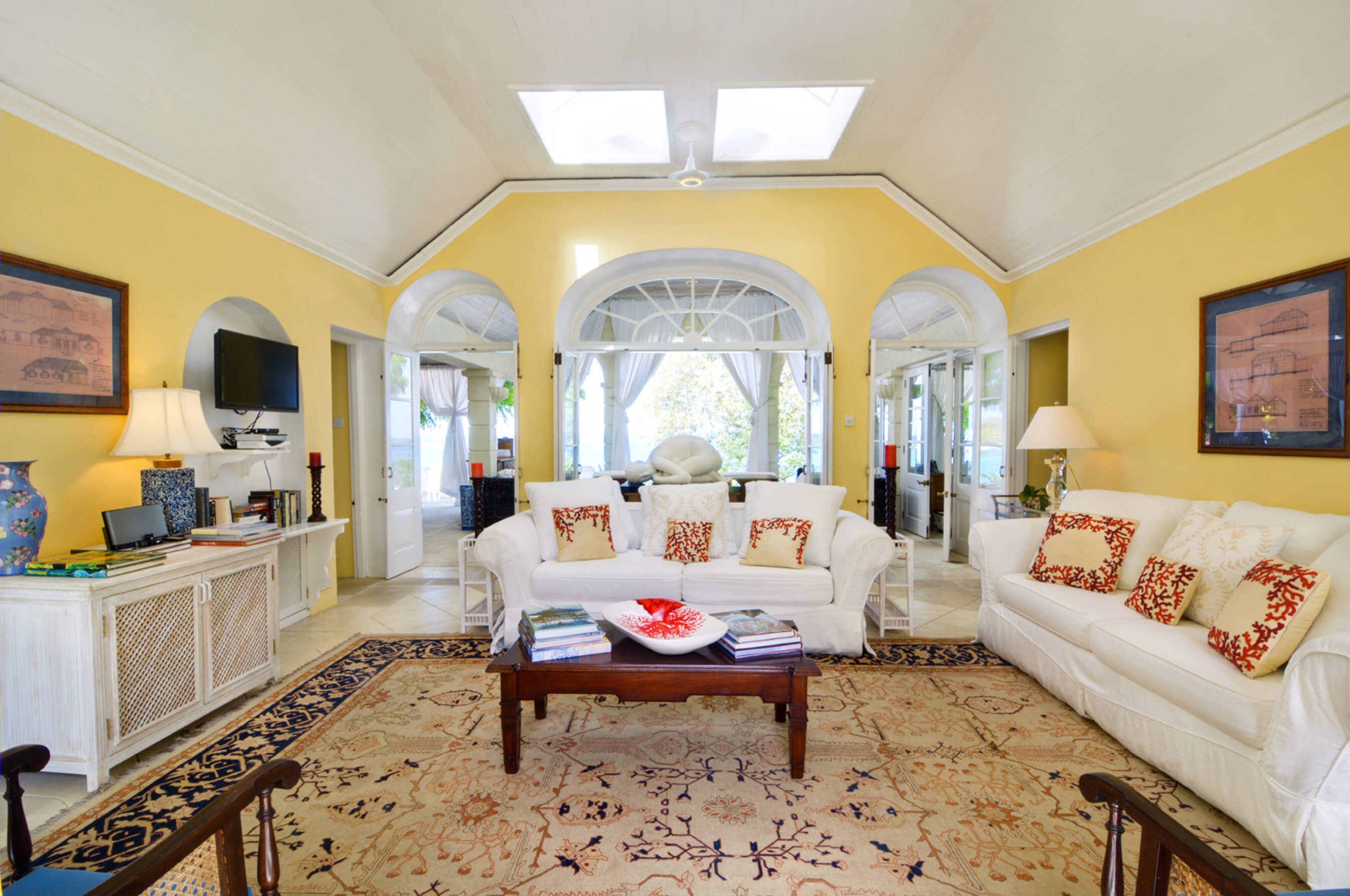 The stylish living room is located at the centre of the property, with impressive arched doors at either end leading onto an open verandah with both a family room and dining area, perfect areas to enjoy the expansive views in comfort. The central living space is flanked by two classically styled en suite bedrooms, furnished & tastefully decorated tastefully. The newer, seaside bedrooms, have simply wonderful views and the soothing rhythm of the Caribbean sea to enjoy.