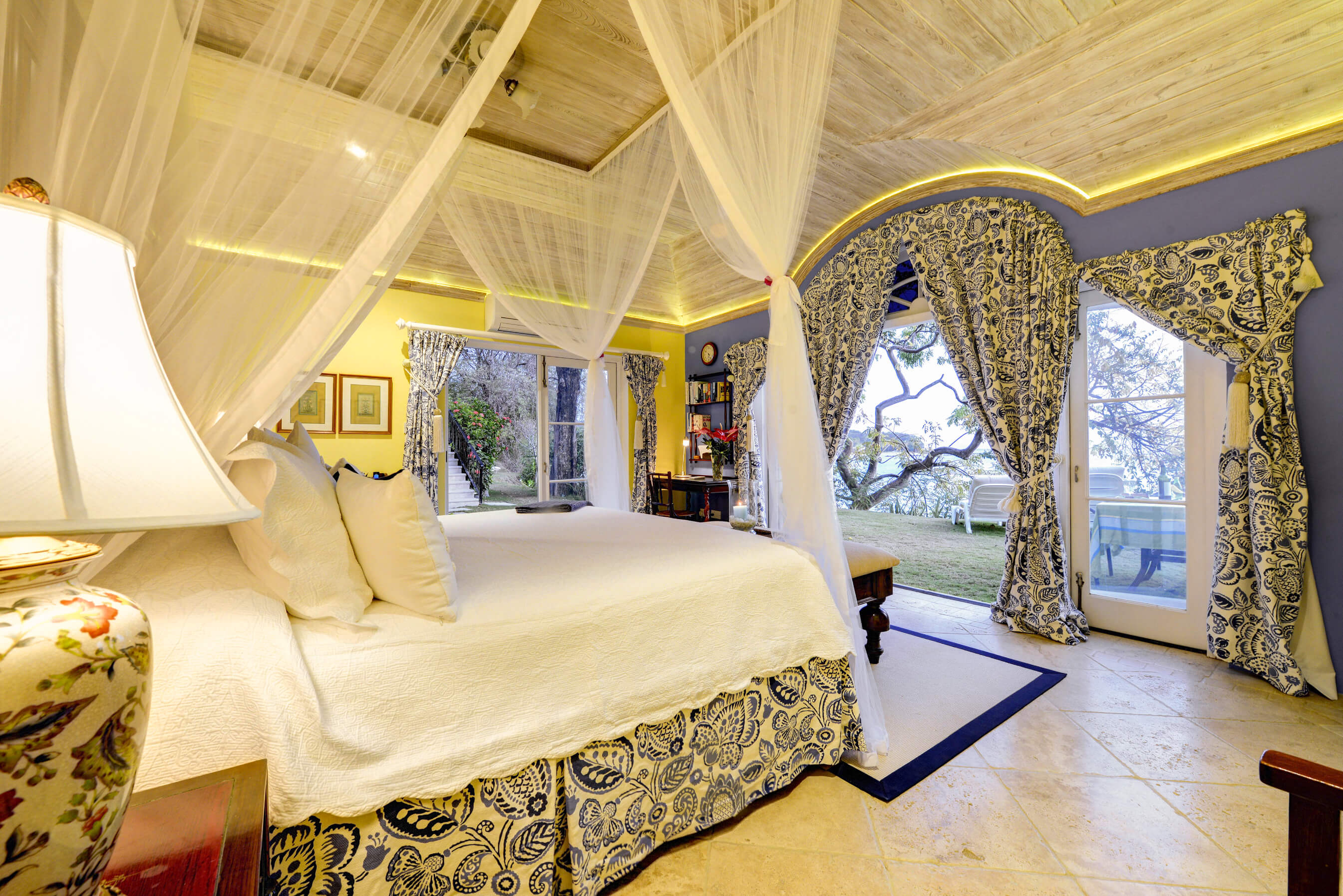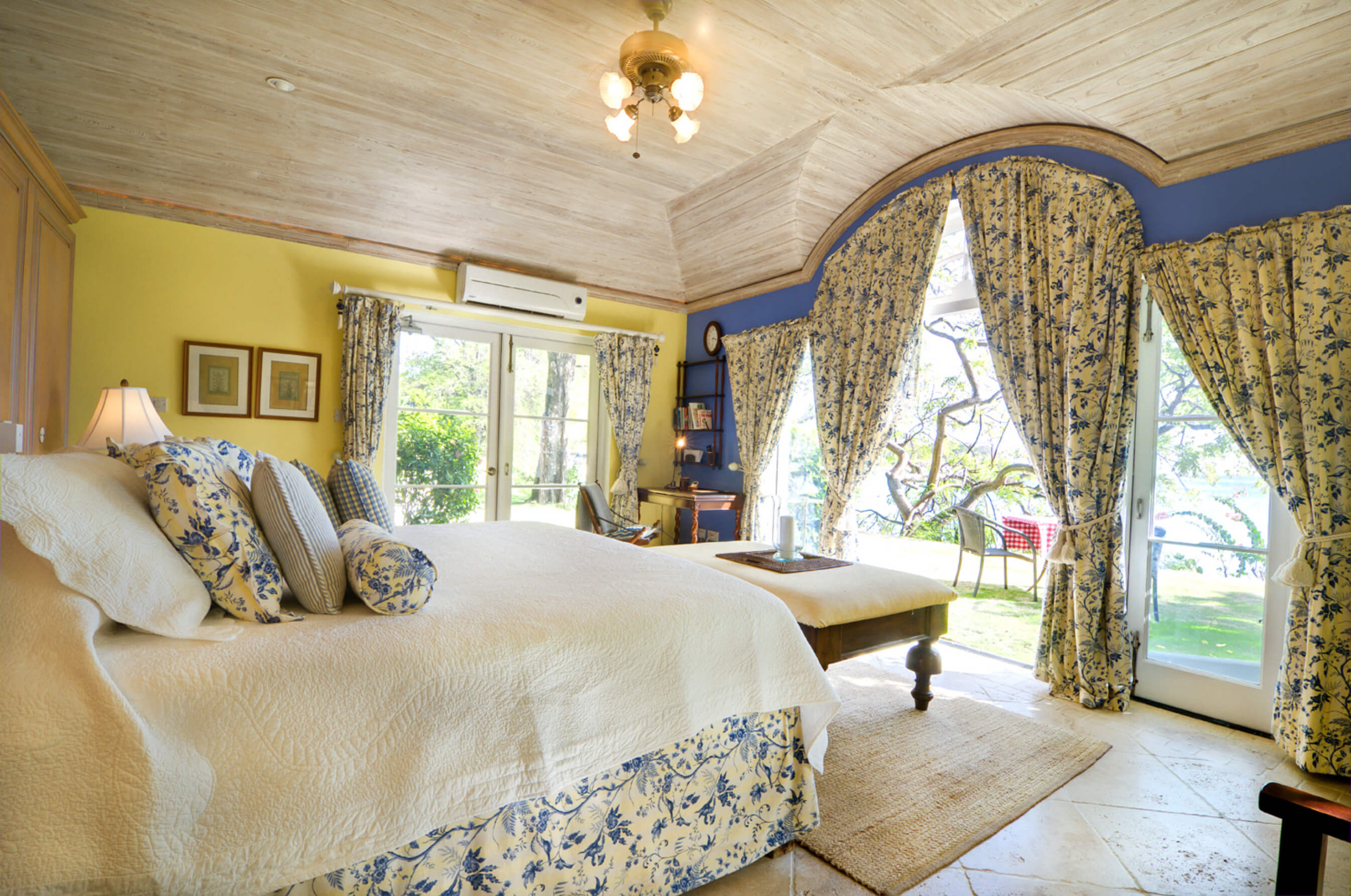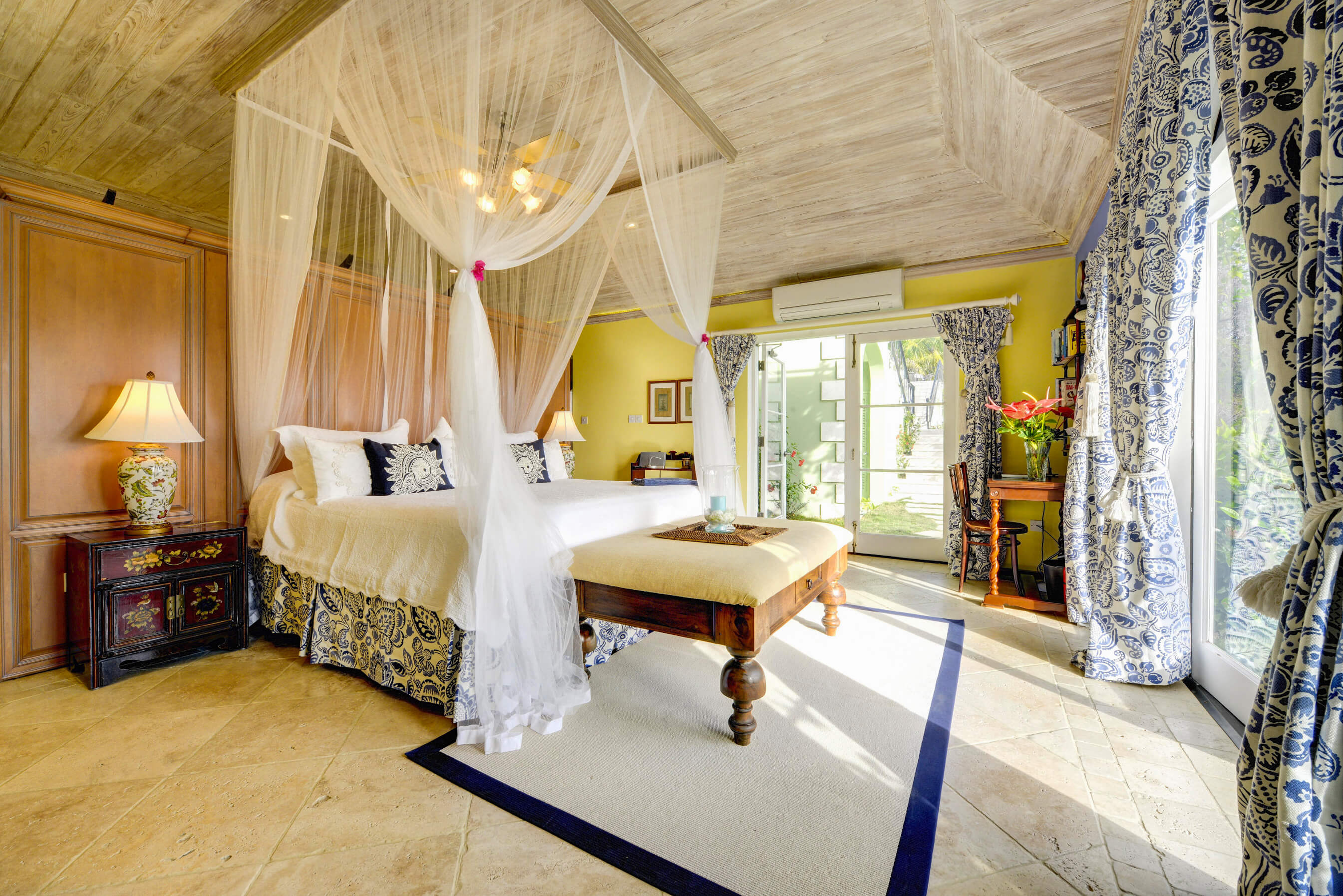 This fabulous Oliver Messel designed luxury villa sits slightly elevated on a gentle slope on Mustiques North Western coast right behind Endeavour Bay, adjacent to The Cotton House. Set amongst mature tropical gardens and tastefully furnished with a light and airy decor of creams and pale blue chintz, the villa has a classic, relaxed aura.