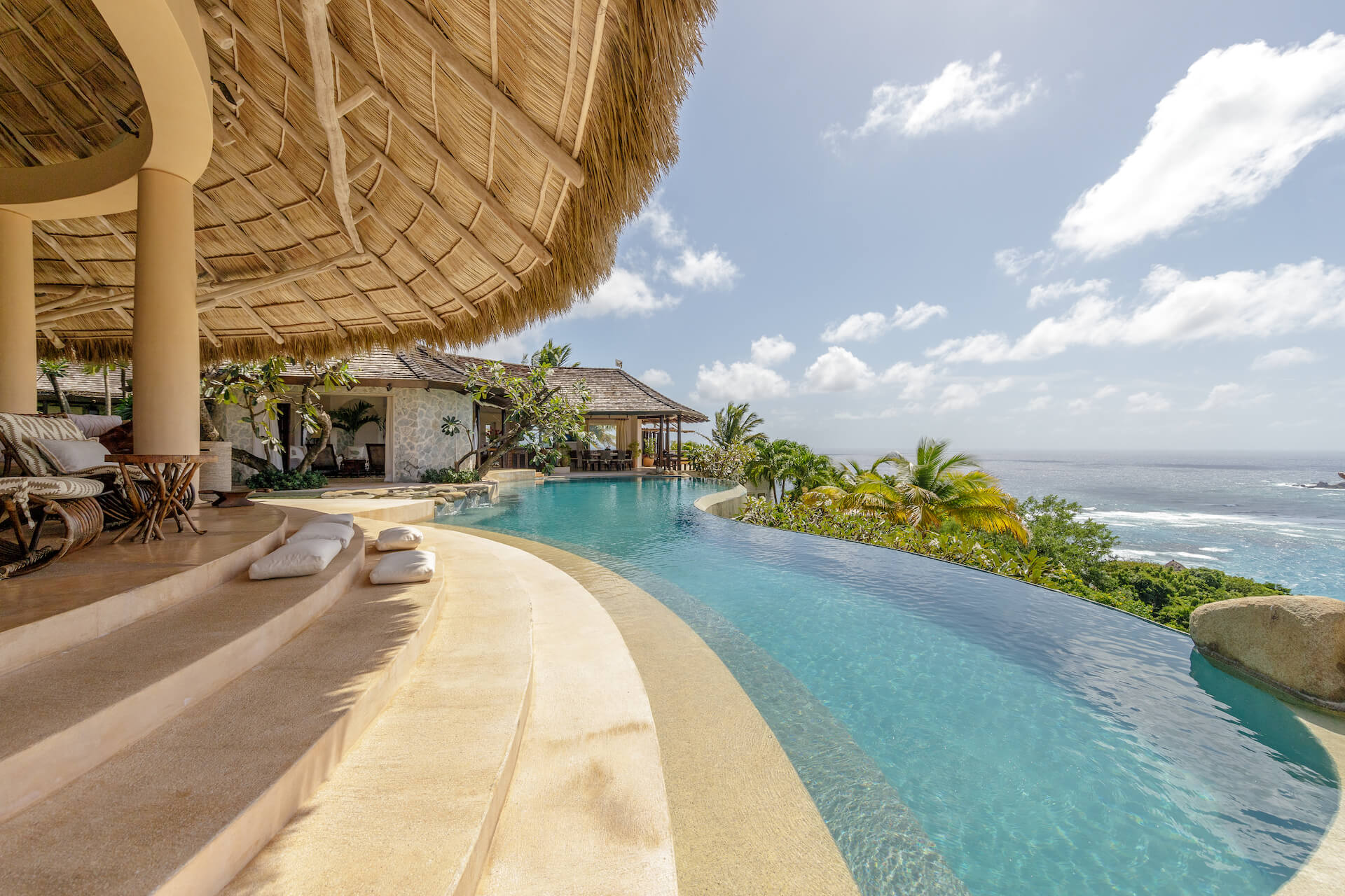 A sophisticated residence with multiple levels and secluded hideaways, located 300 ft. above the sea on 7 lush acres of mature gardens. This stunning villa was designed by renowned Mexican architect Manolo Mestre who creates curvaceous, escapist residences. With 19,000 sq foot of space to relax in surrounded by gardens and a beautiful freeform infinity pool, Yemanja (Goddess of the sea to Brazilians) offers a serene and secluded paradise as ideal for island entertaining as it is for a family holiday.