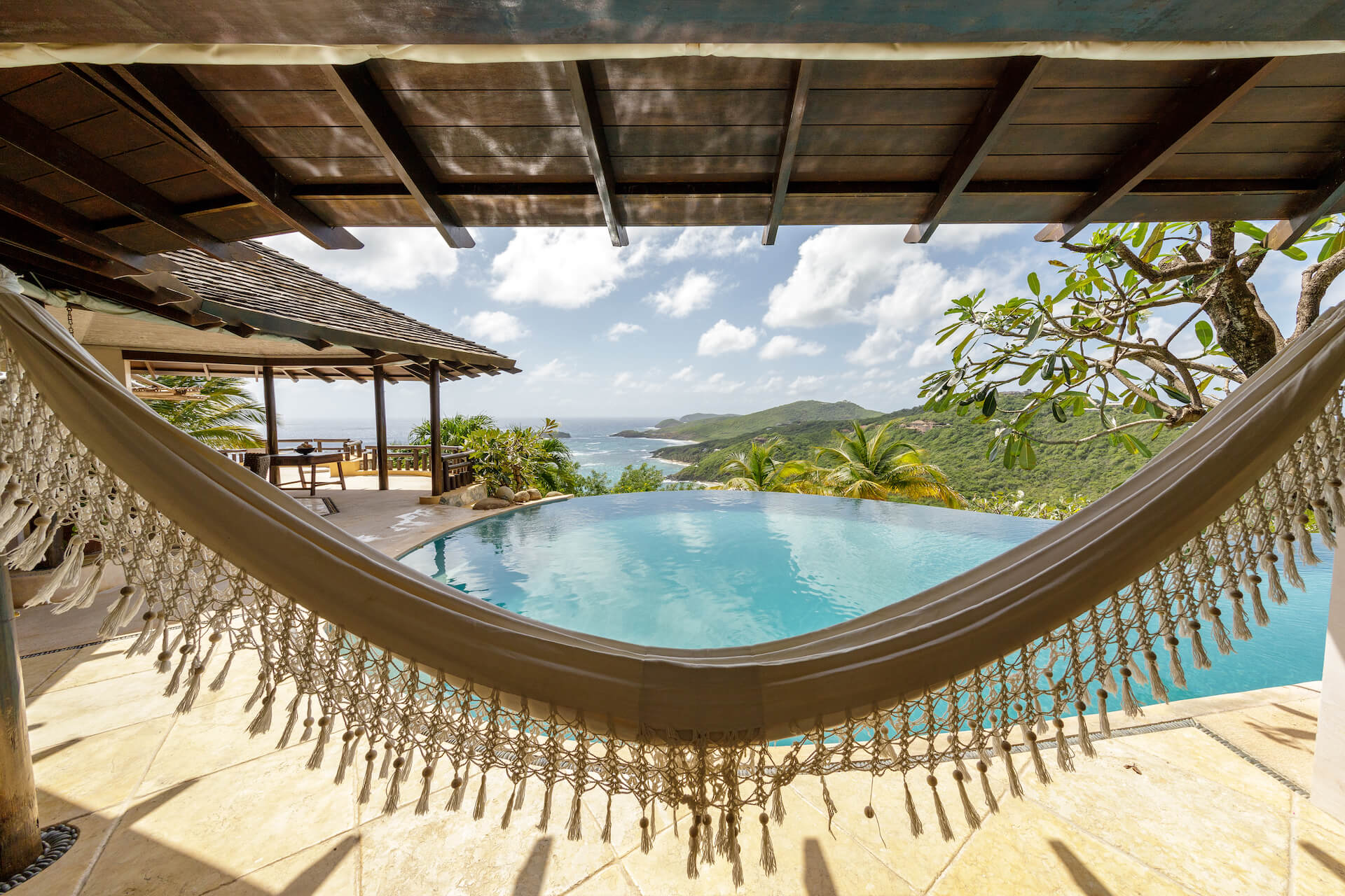 Positioned as it is 300 ft above the sea on 7 lush areas of tropical landscaped gardens overlooking Macaroni Bay, Yemanja offers outstanding panoramic views over the Atlantic Ocean and Caribbean Sea, Macaroni Beach, Simplicity, and Pasture Bay.
