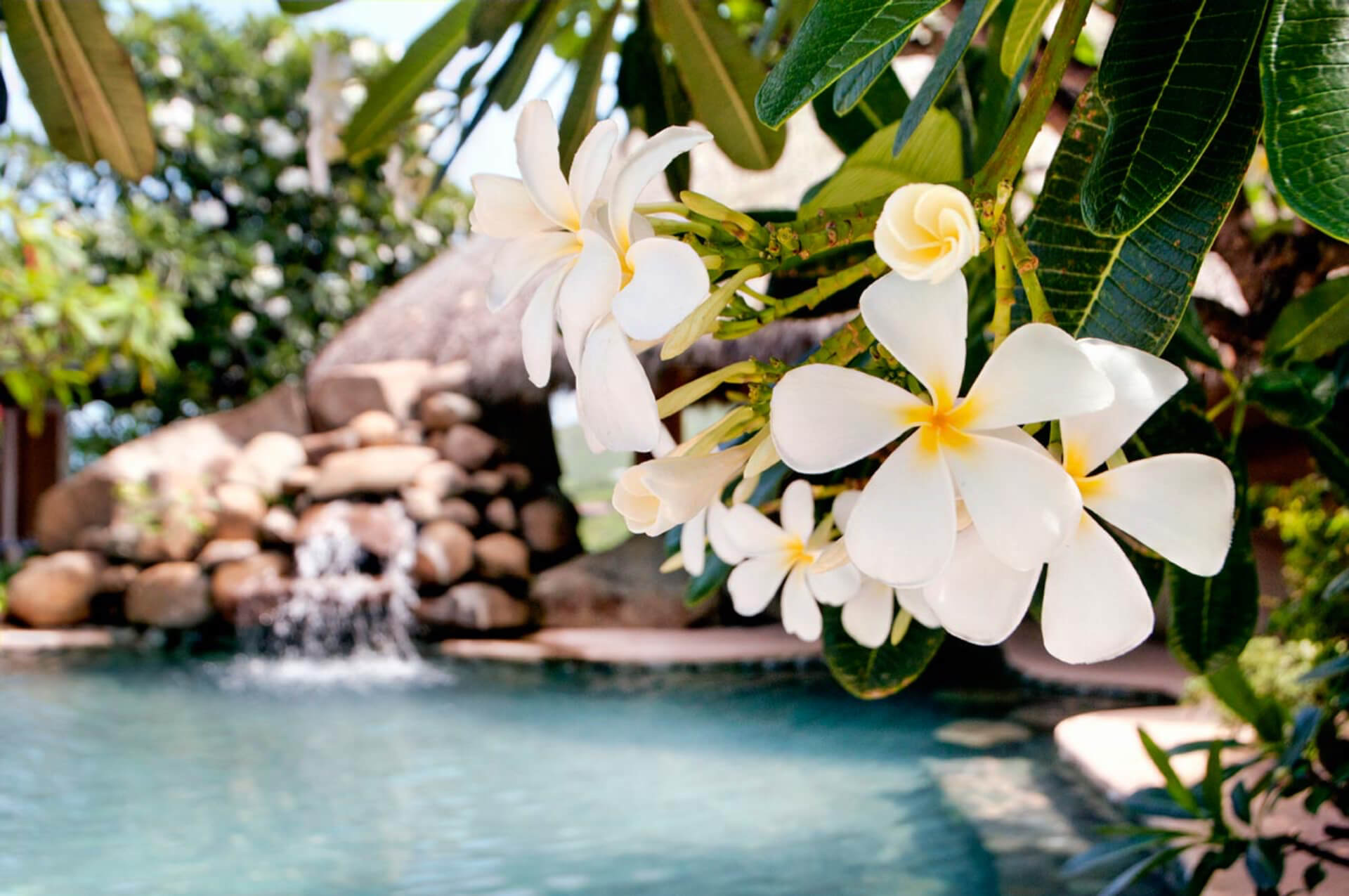 The main house with 5 bedrooms and air conditioned media room revolves around the mexican inspired "palapa" and huge main pool which has a frangipani shaded and shallow childrens pool for all to enjoy.