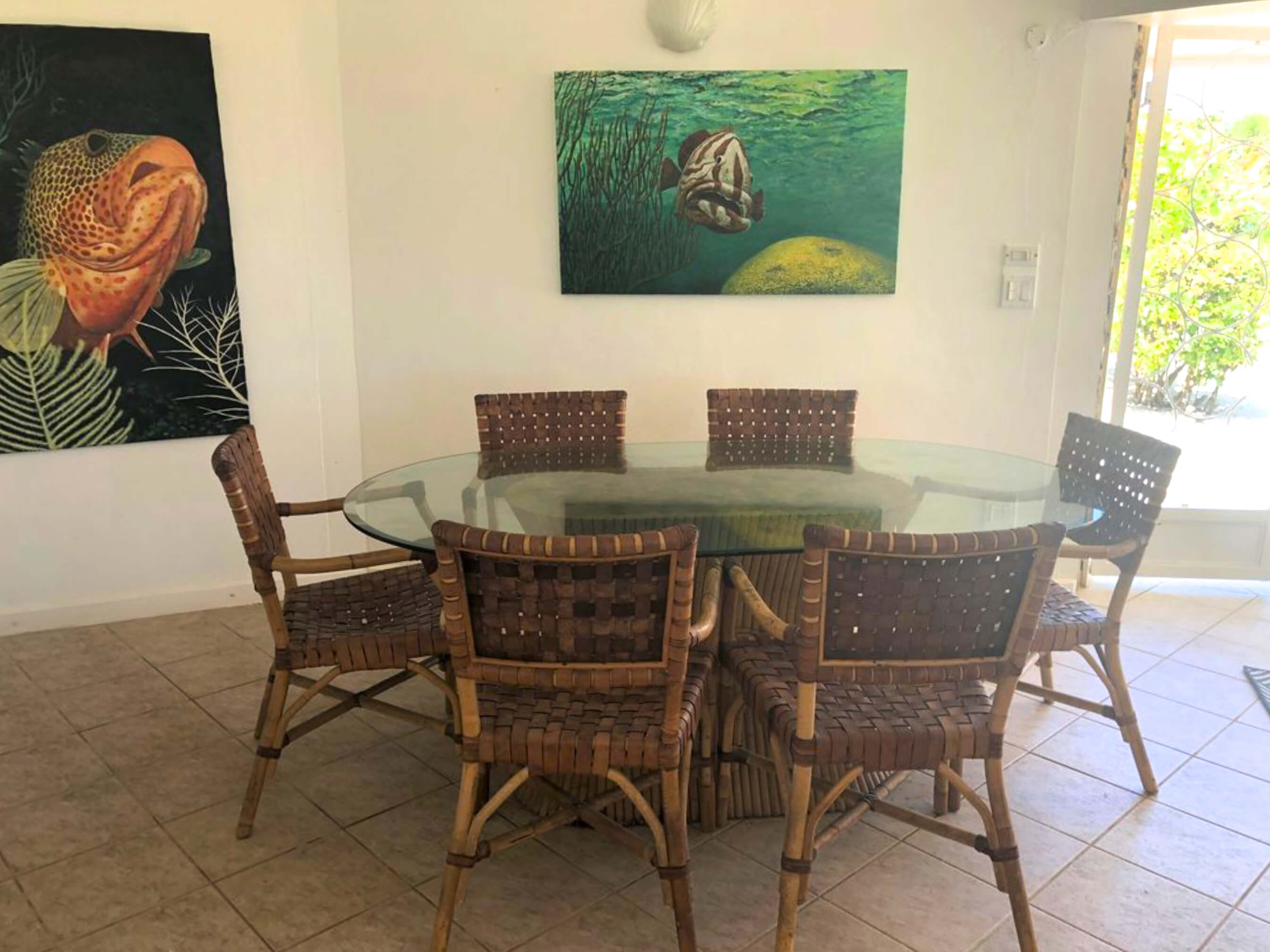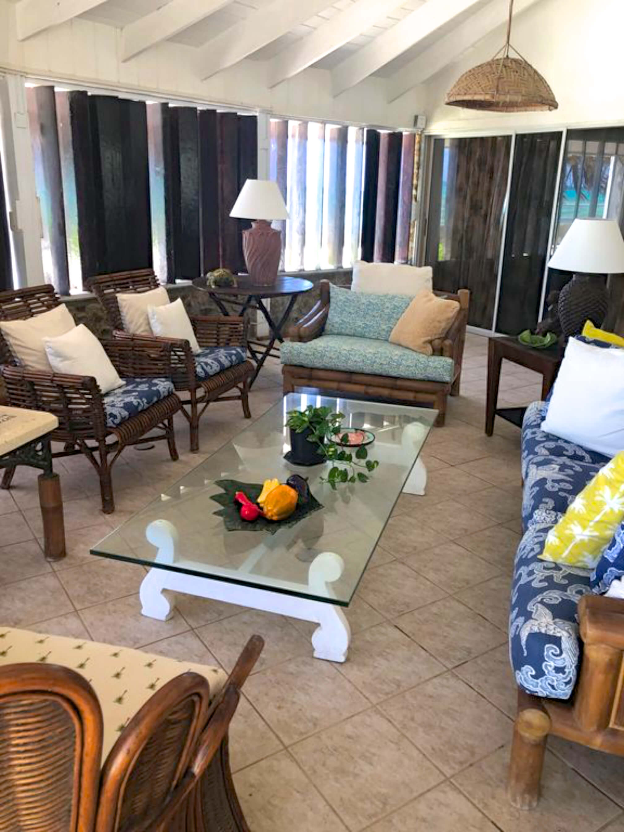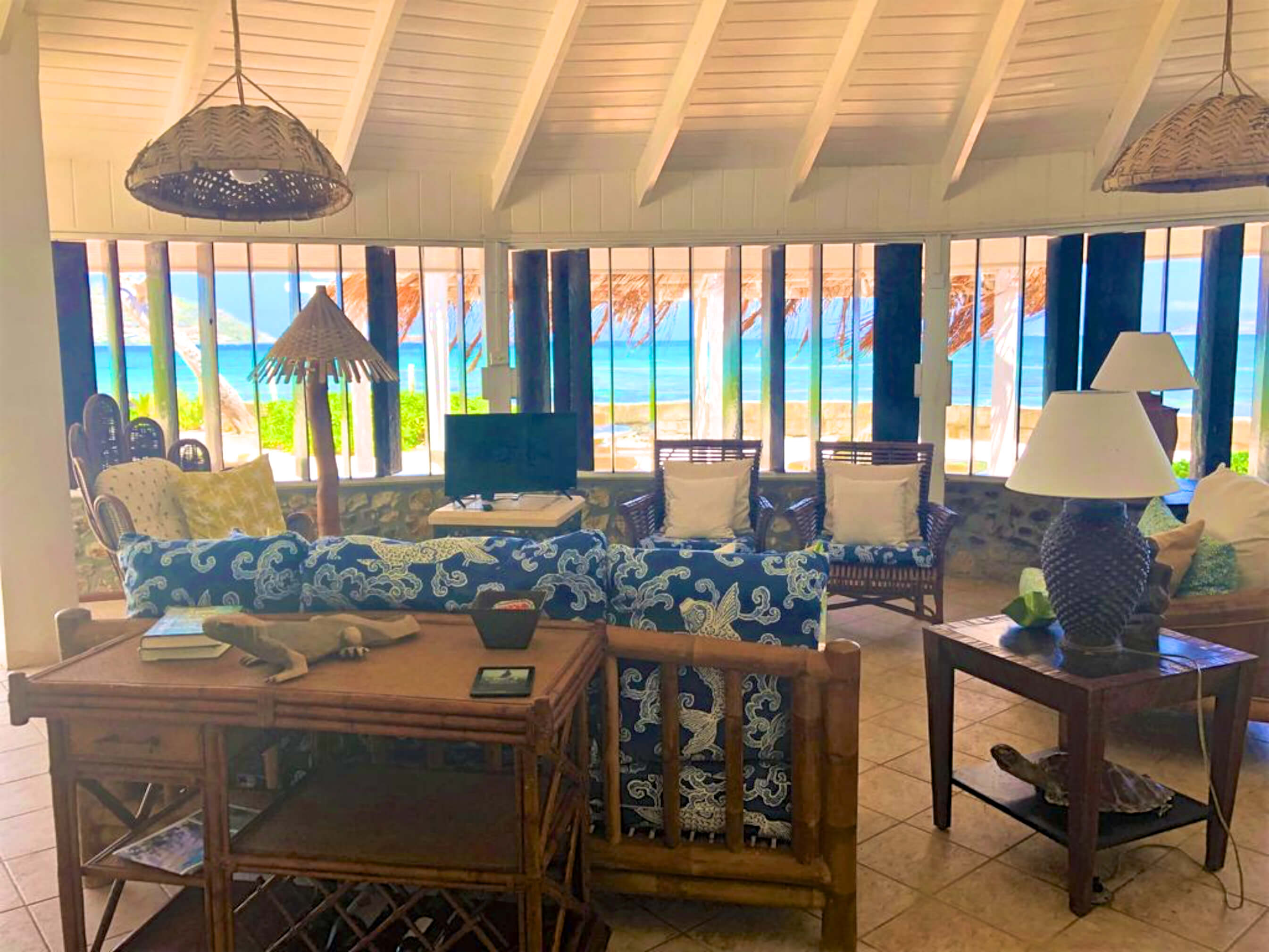The villa is just footsteps from the water and simply decorated in a comfortable beach style incorporating natural driftwood, shells and marine based art.