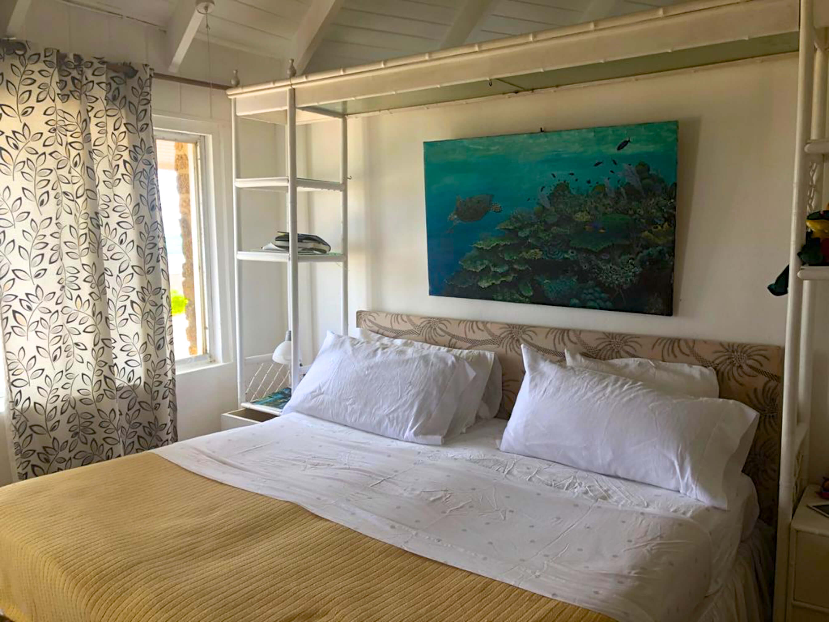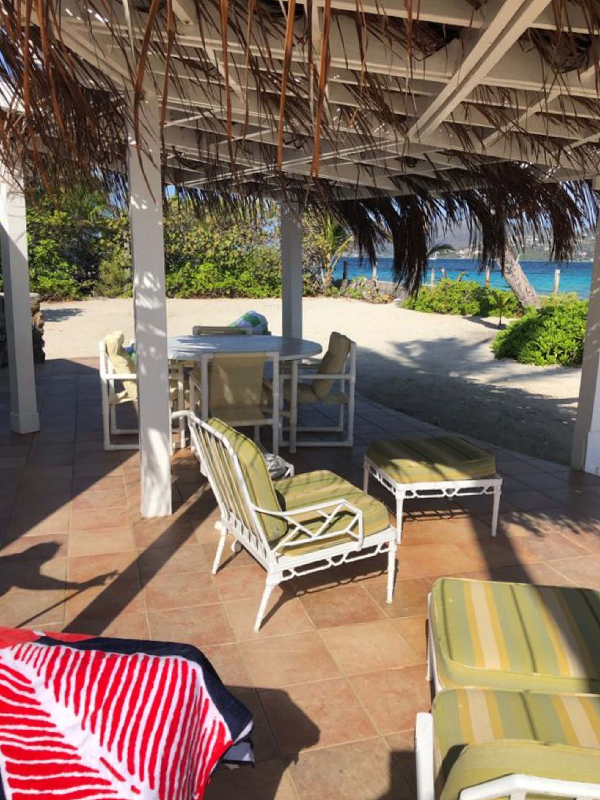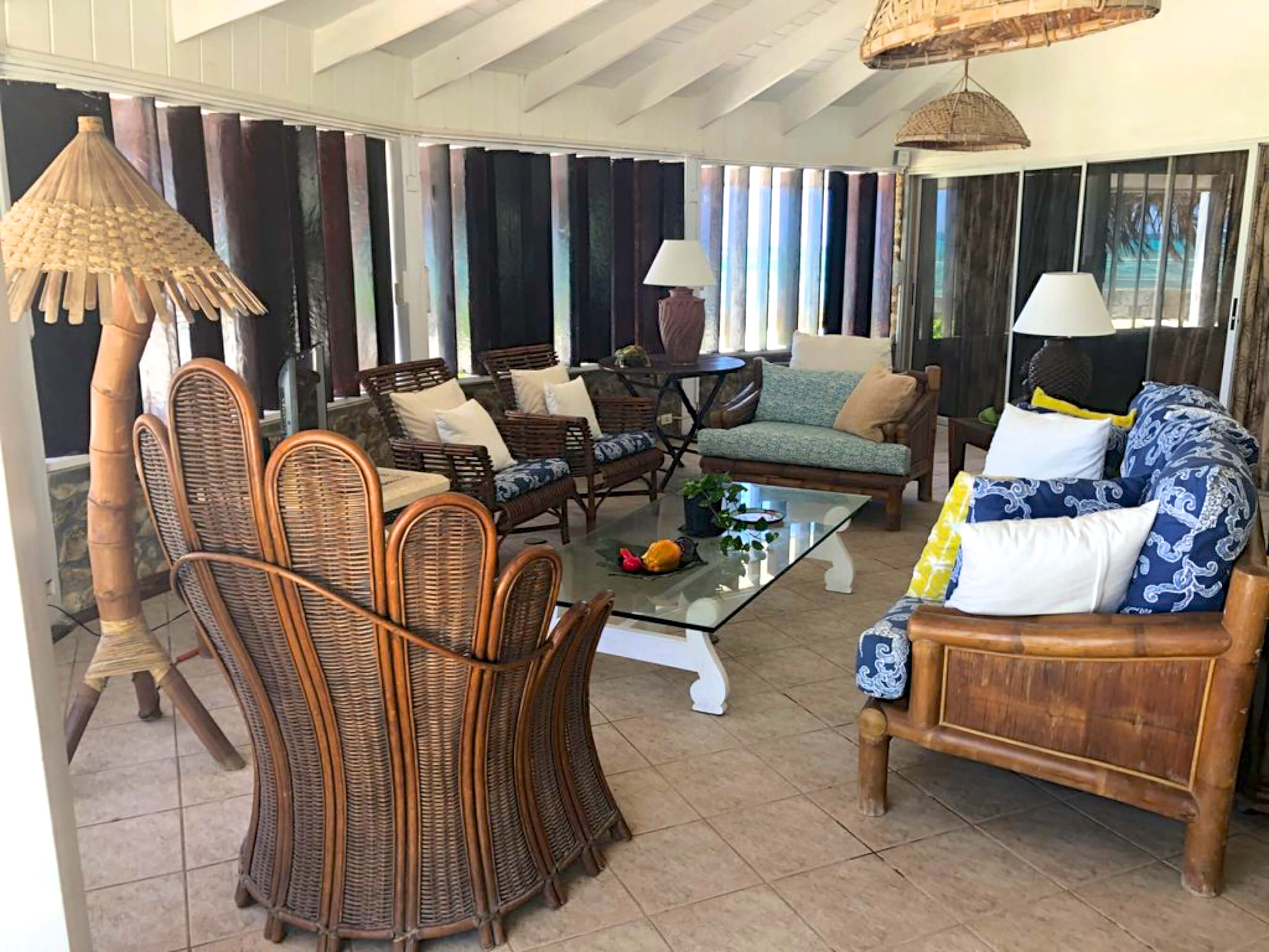 The villa is just footsteps from the water and simply decorated in a comfortable beach style incorporating natural driftwood, shells and marine based art.