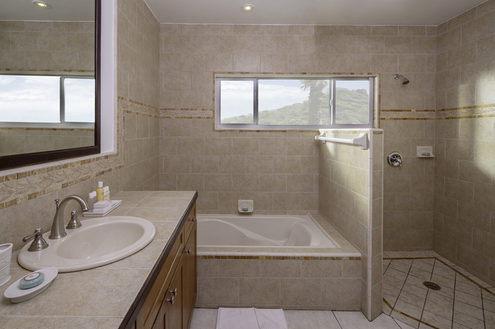 The 3 bedroom suites have private bathrooms and have been finished in marble. The spacious living and dining areas are decorated in cool, tropical fabrics and feature local artwork and artefacts from around the island.
