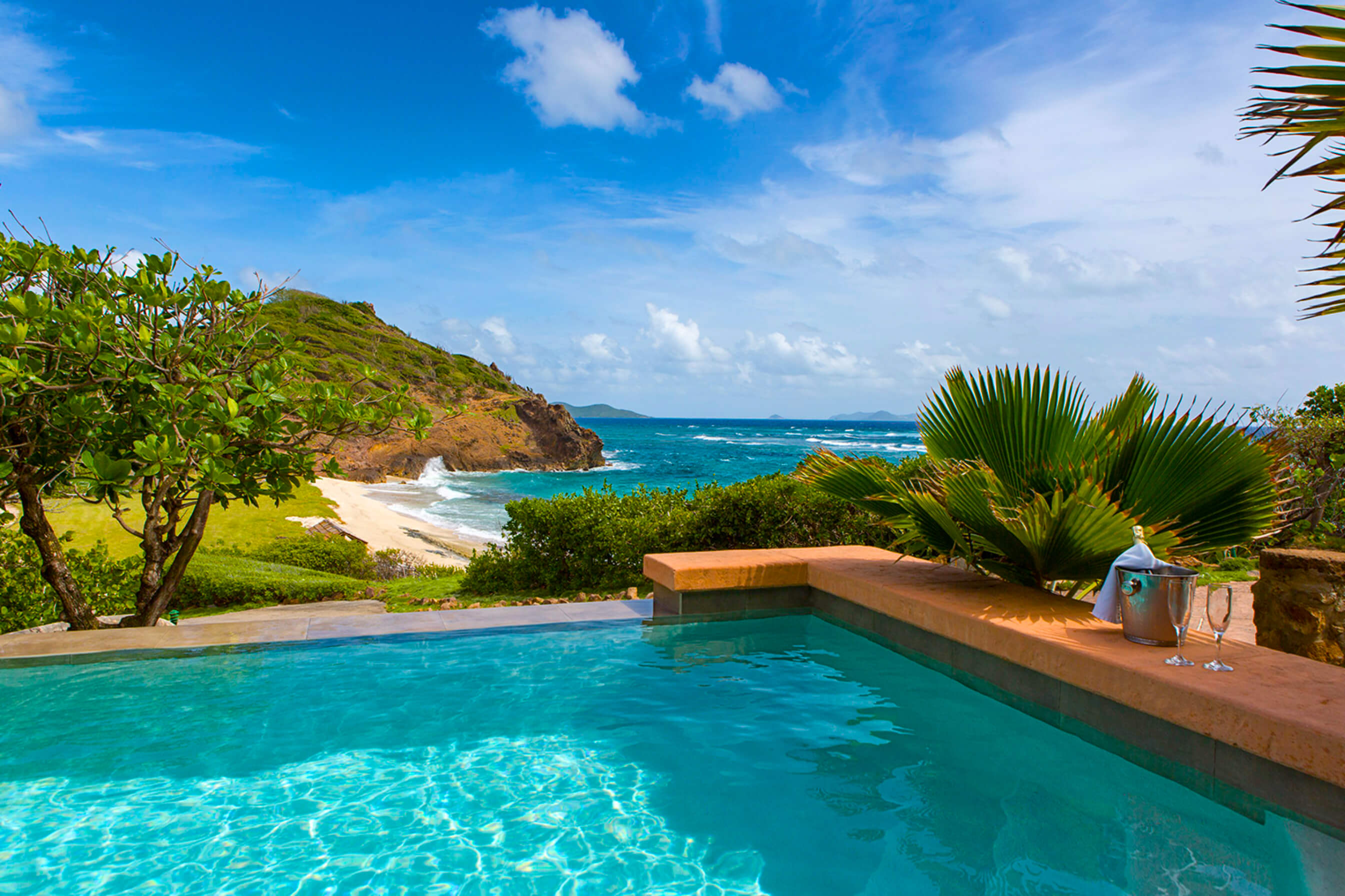 Described as providing the "quintessential fantasy island hideaway", this 2 bedroom villa offers an unforgettable experience on Palm Island. Located up in the cliffs offering stunning ocean and beach views across the island and cooled by the trade winds, Southern Cross has 4 stunning timber decks and a private infinity pool.